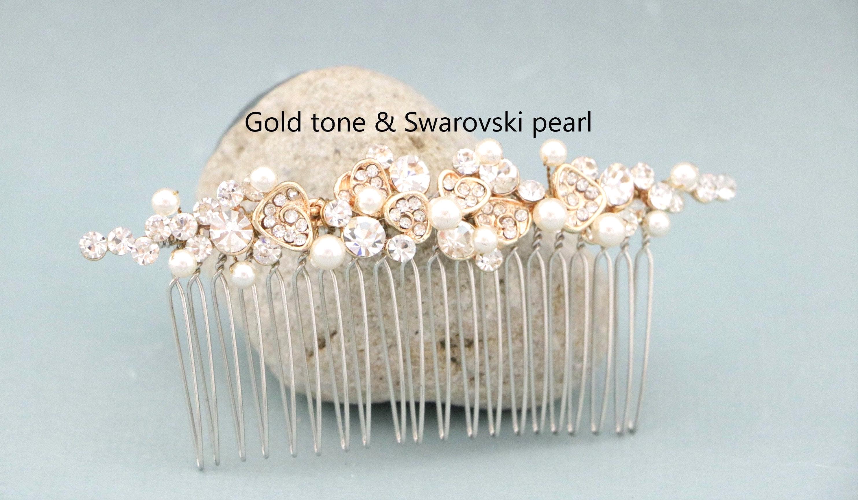 This sparkle rhinestone hair comb features a very beautiful vintage style rhinestone piece and swarovski ivory pearls.