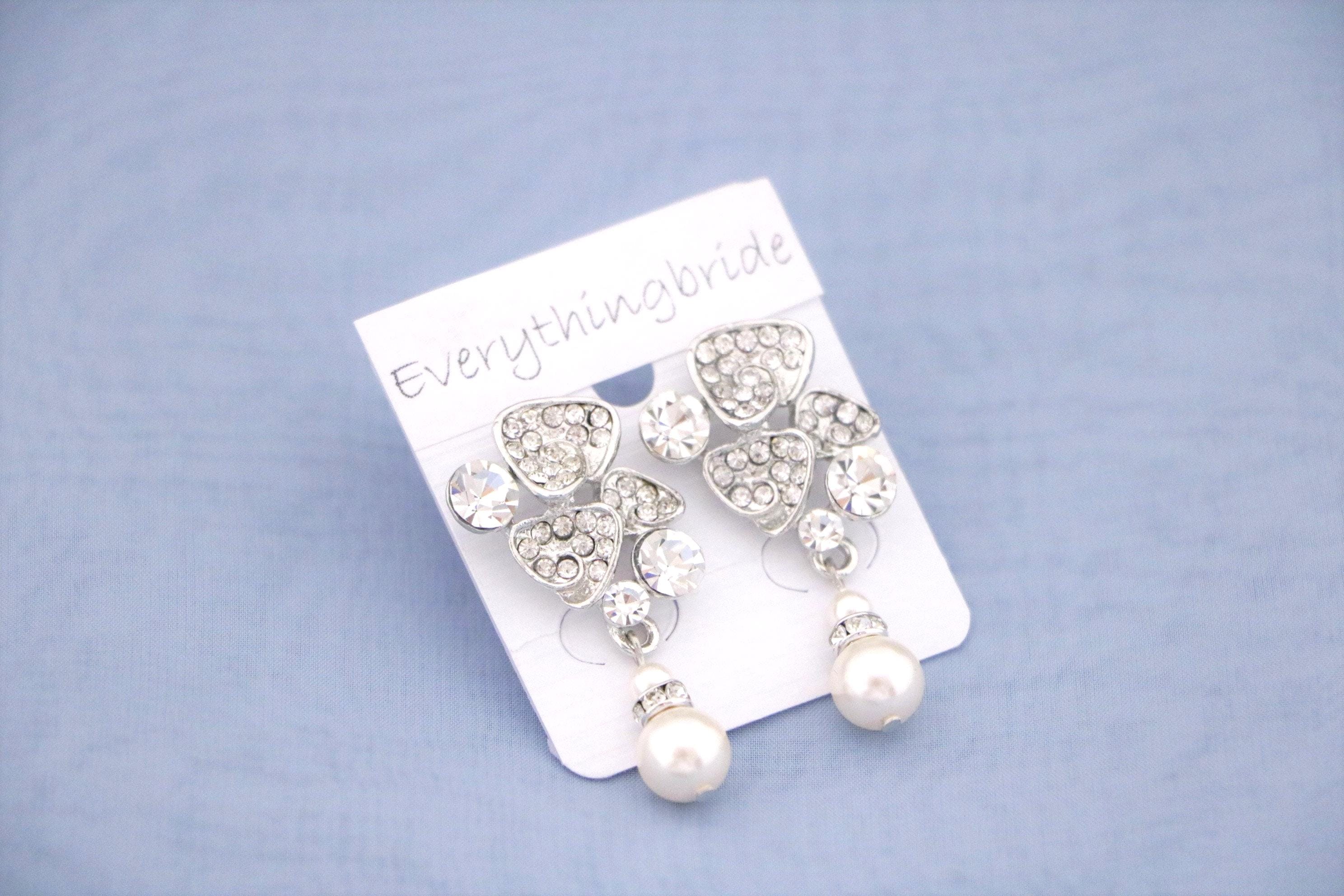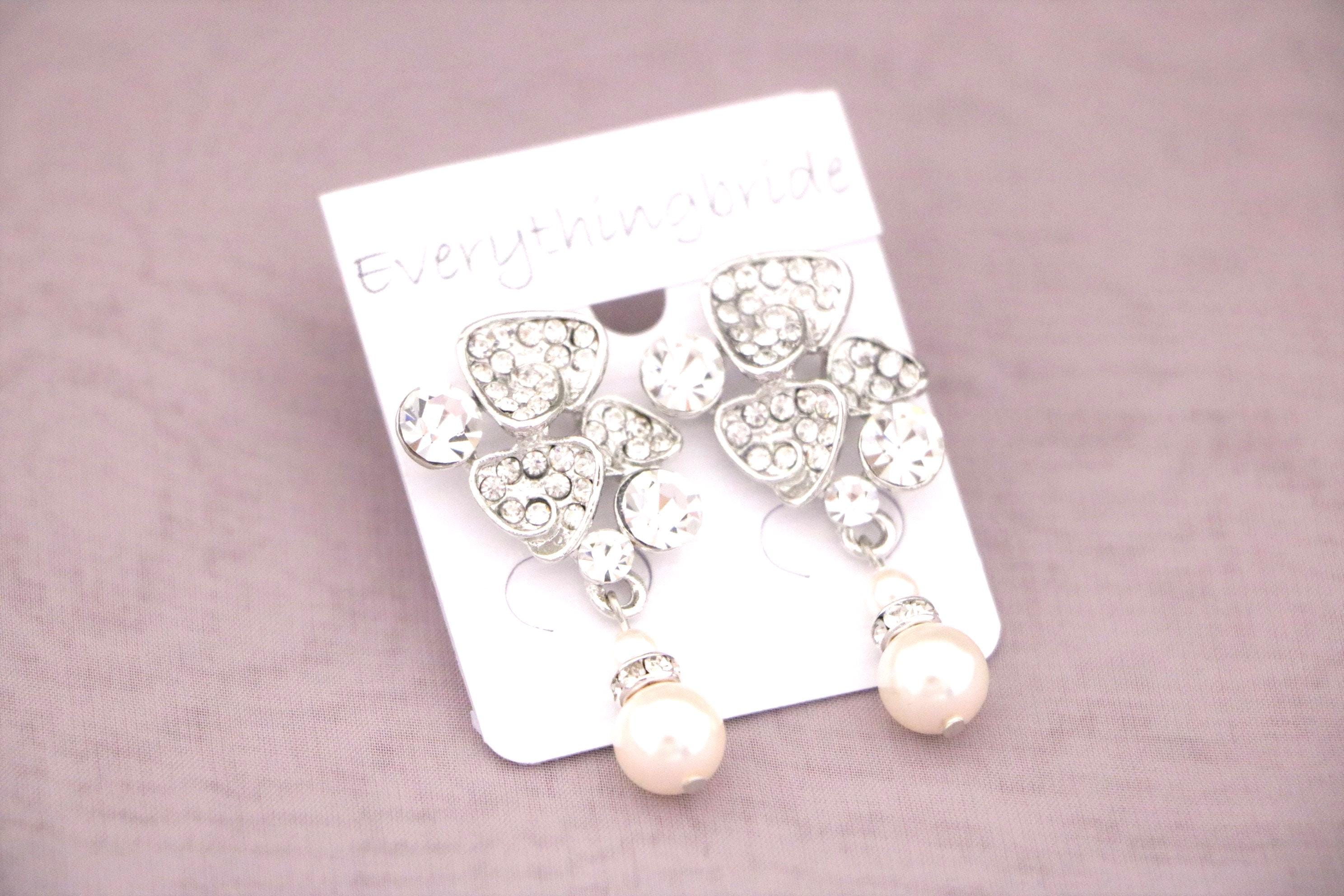 This vintage inspired stunning Pearl and Rhinestone earring is beautiful addition to your wedding day.