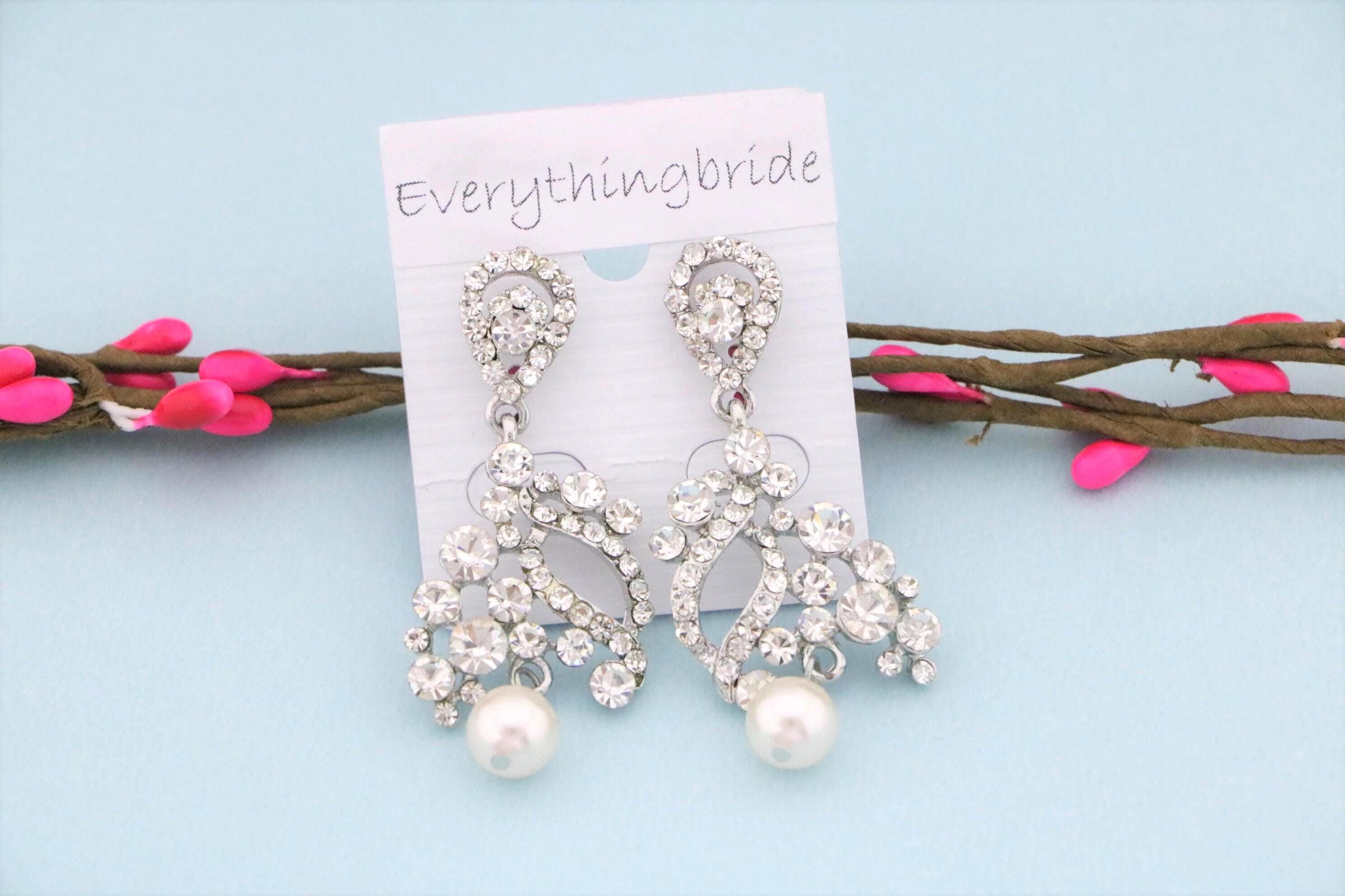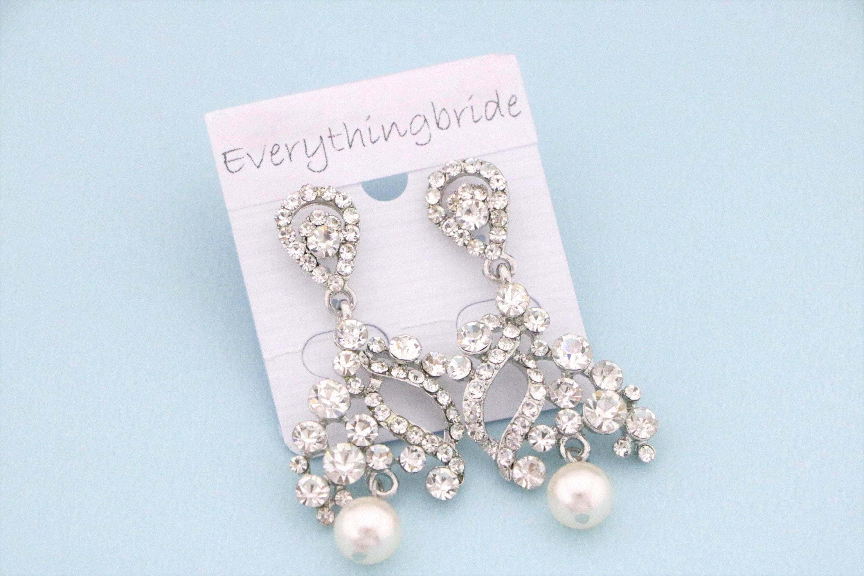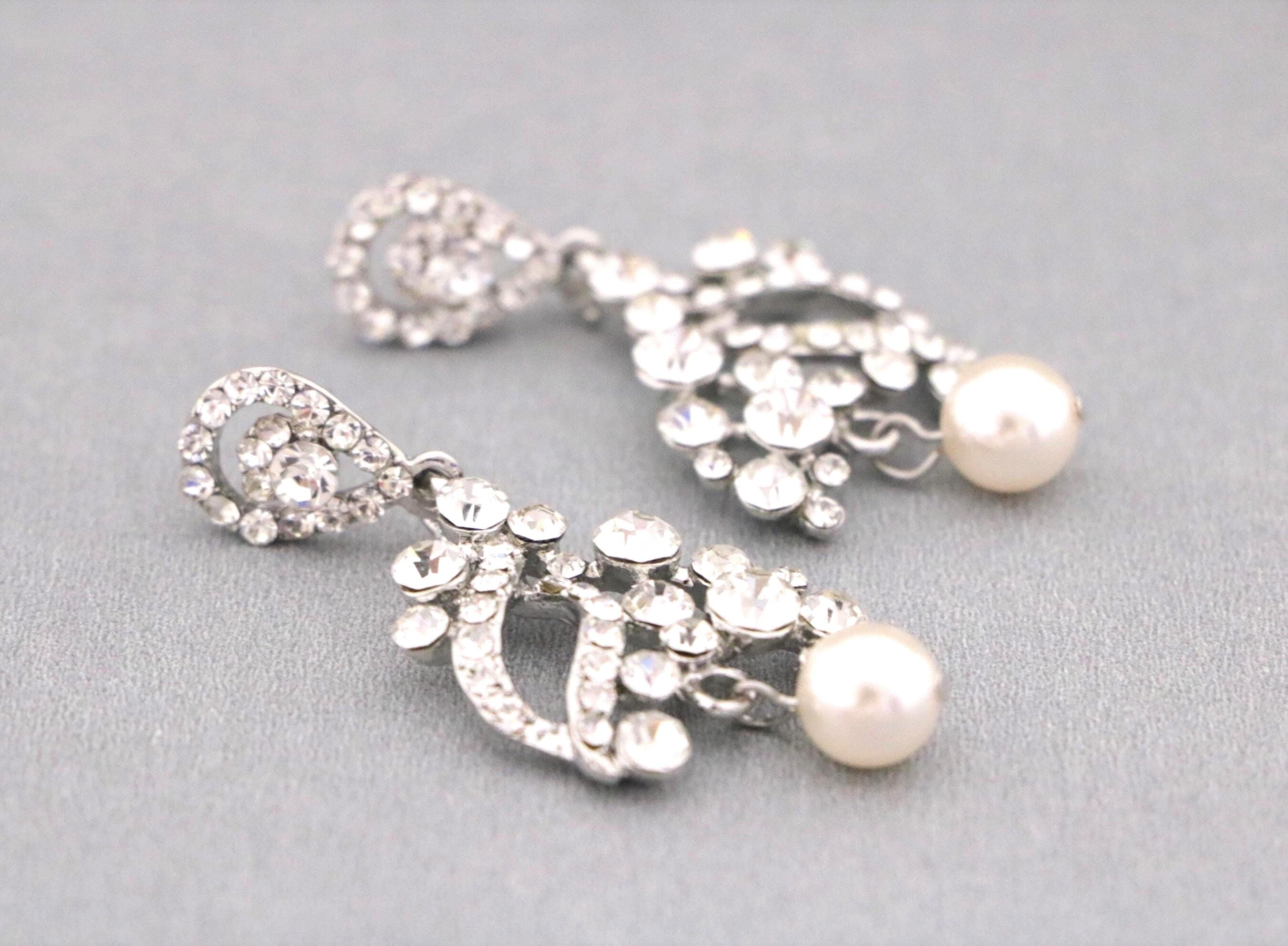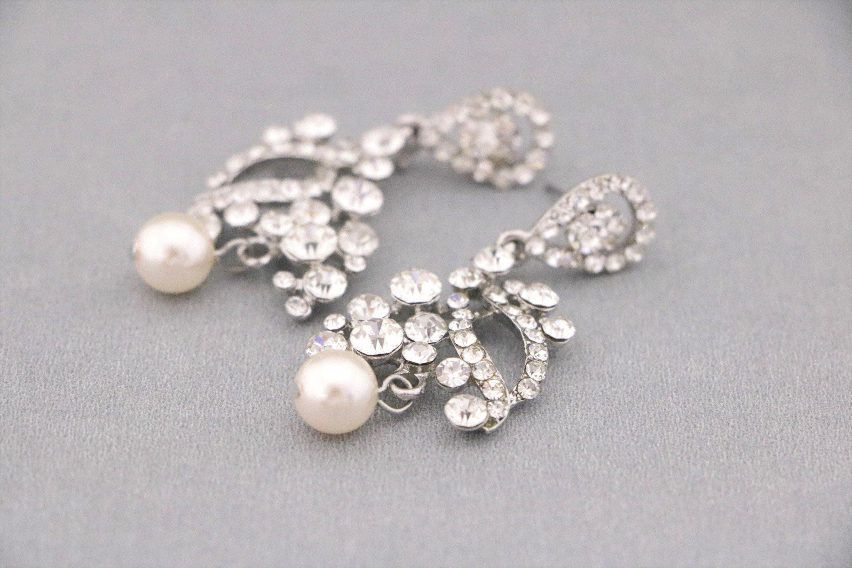This vintage inspired stunning Pearl and Rhinestone earring is beautiful addition to your wedding day.