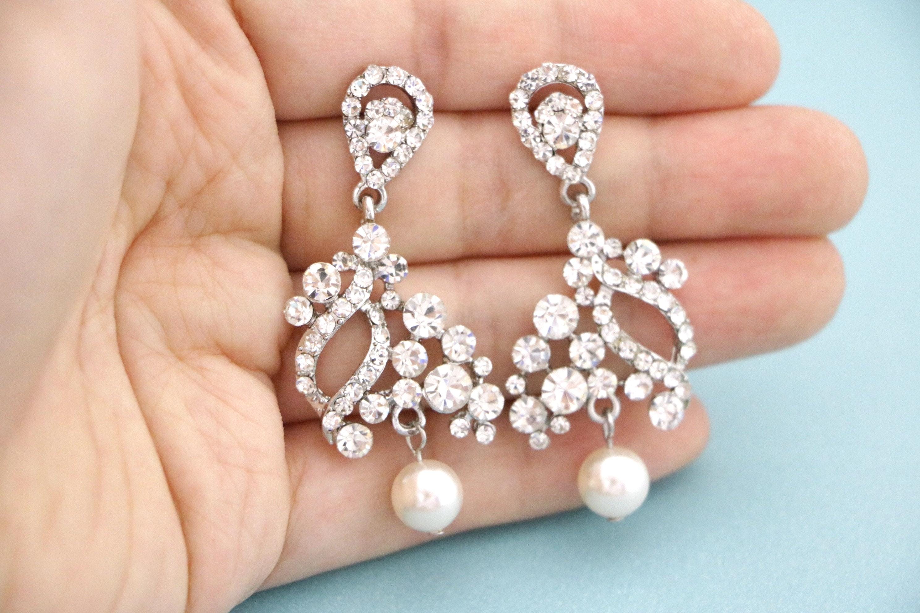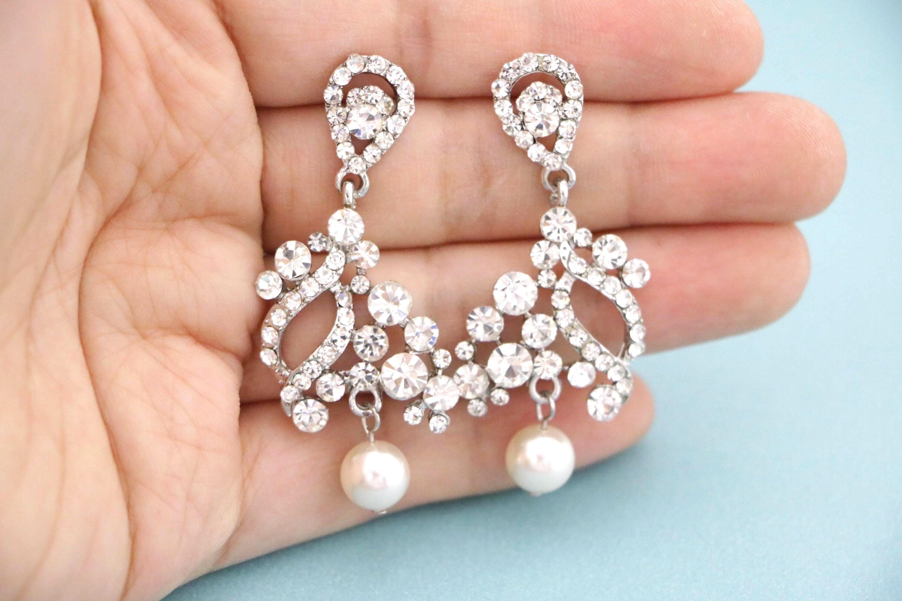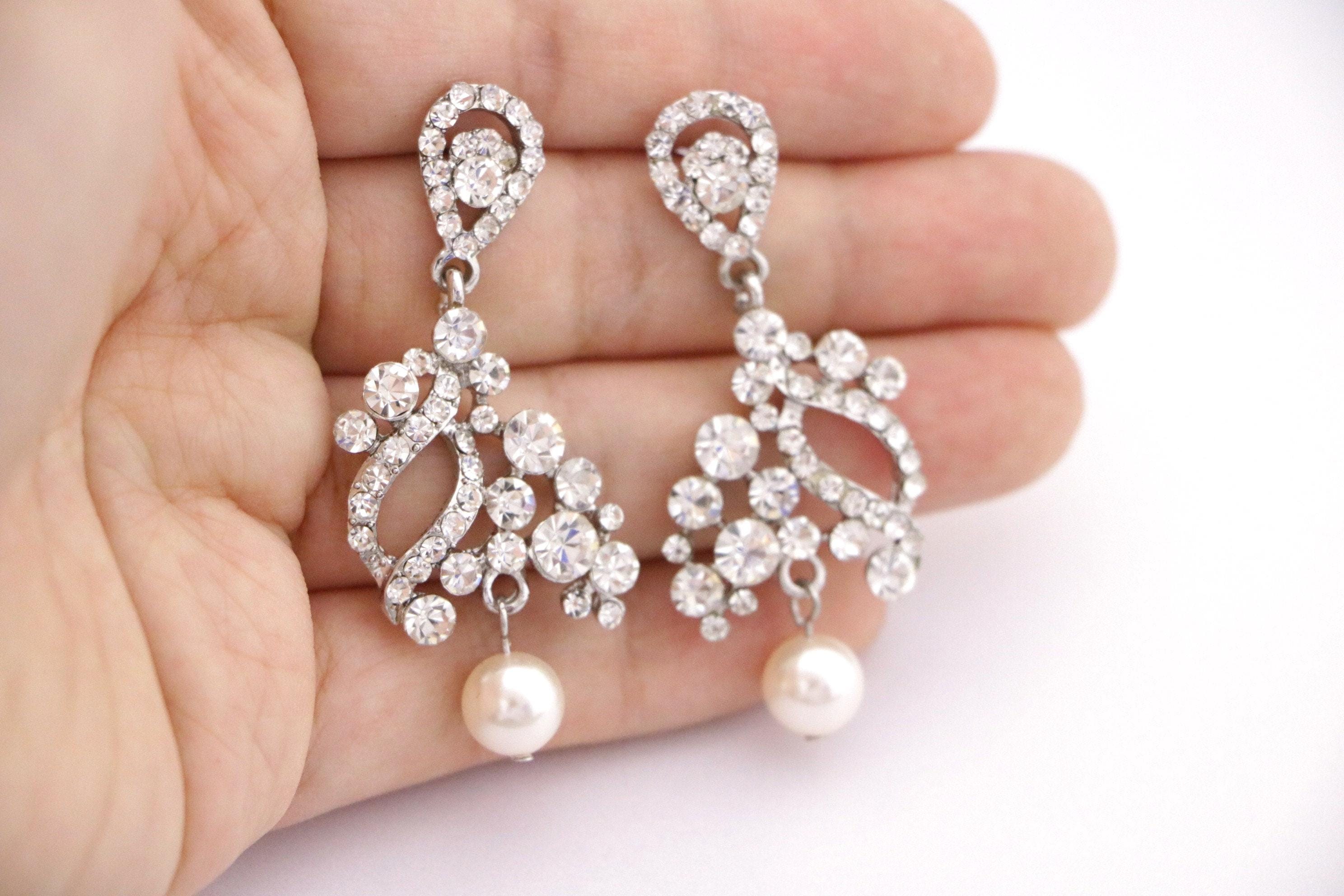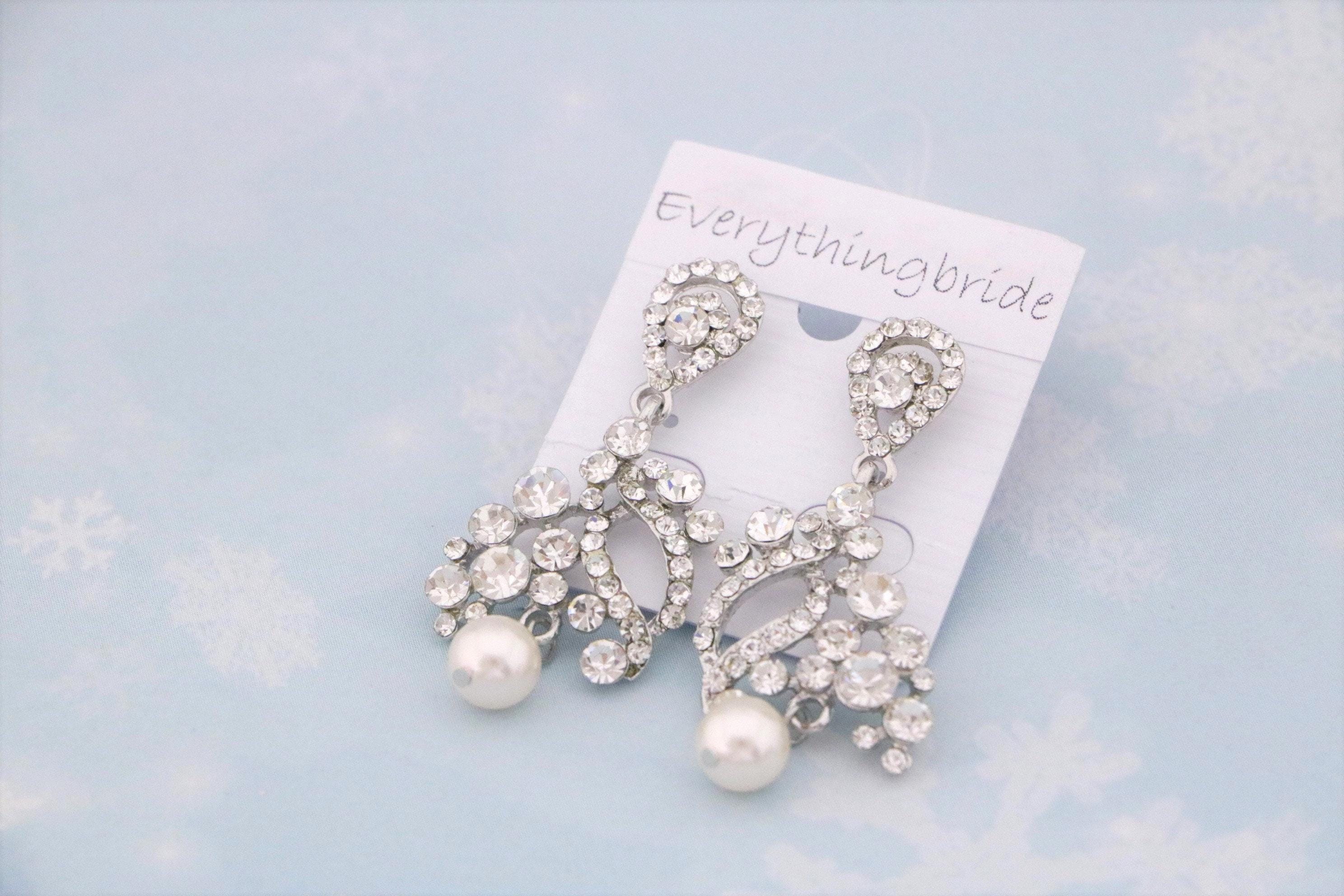 This vintage inspired stunning Pearl and Rhinestone earring is beautiful addition to your wedding day.