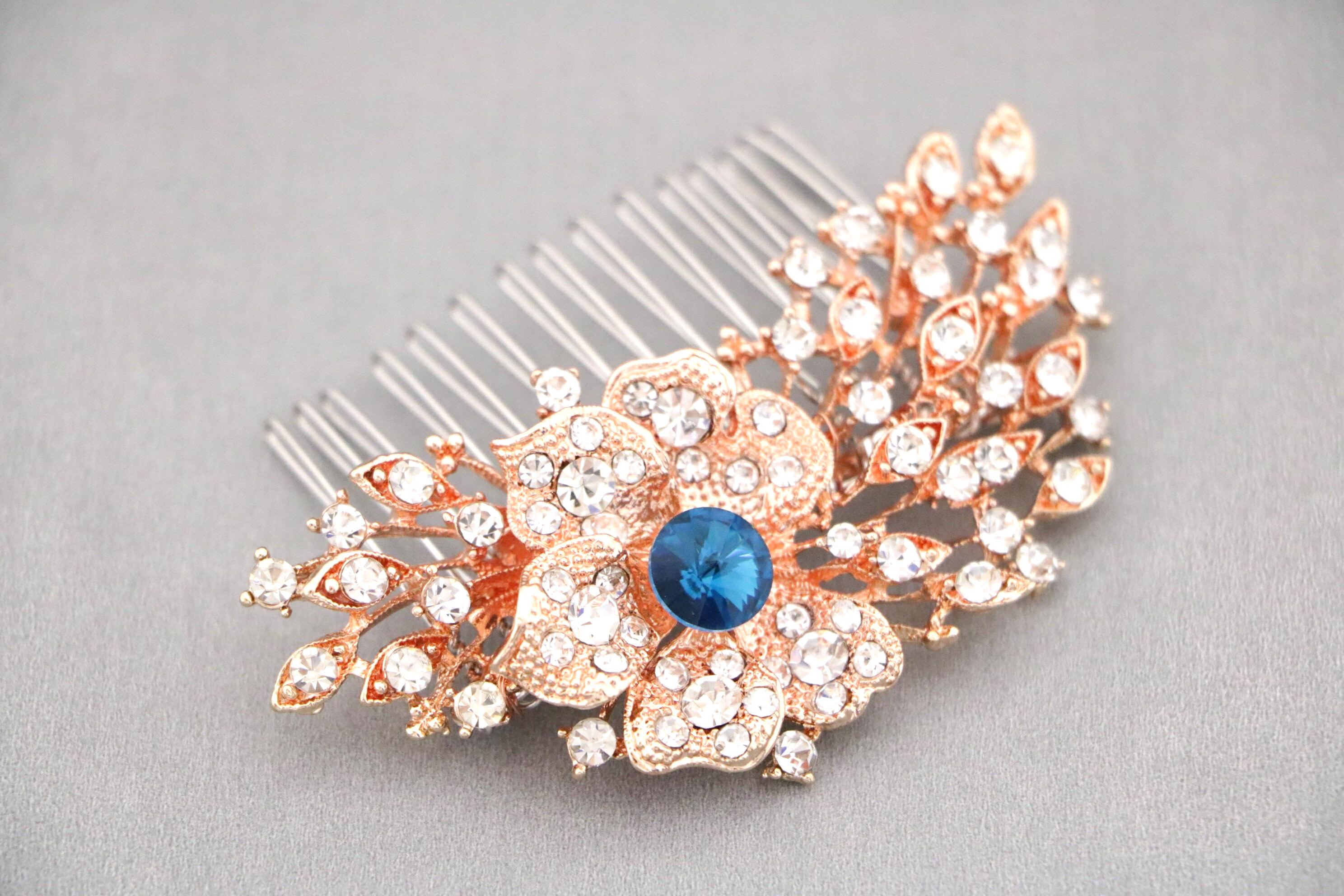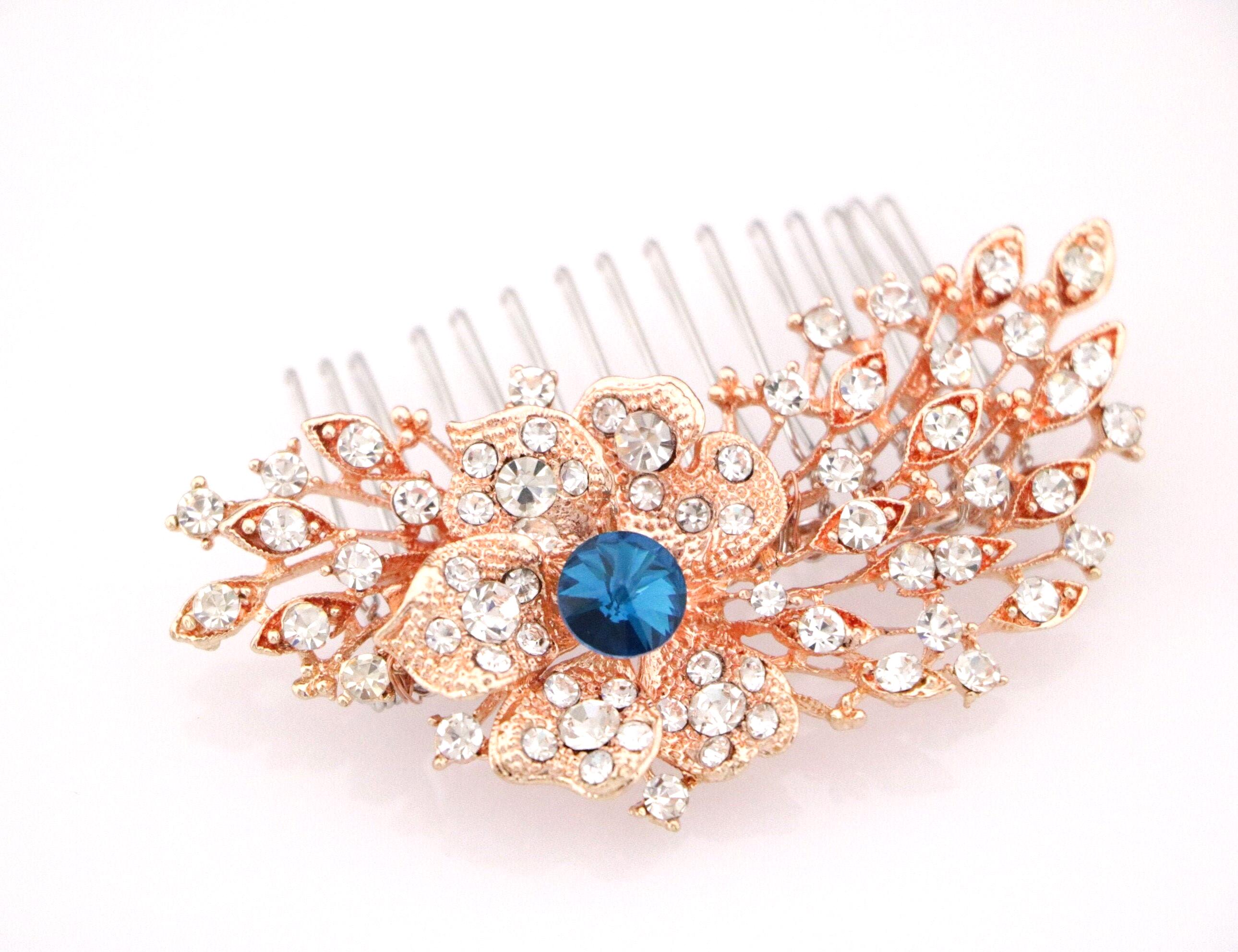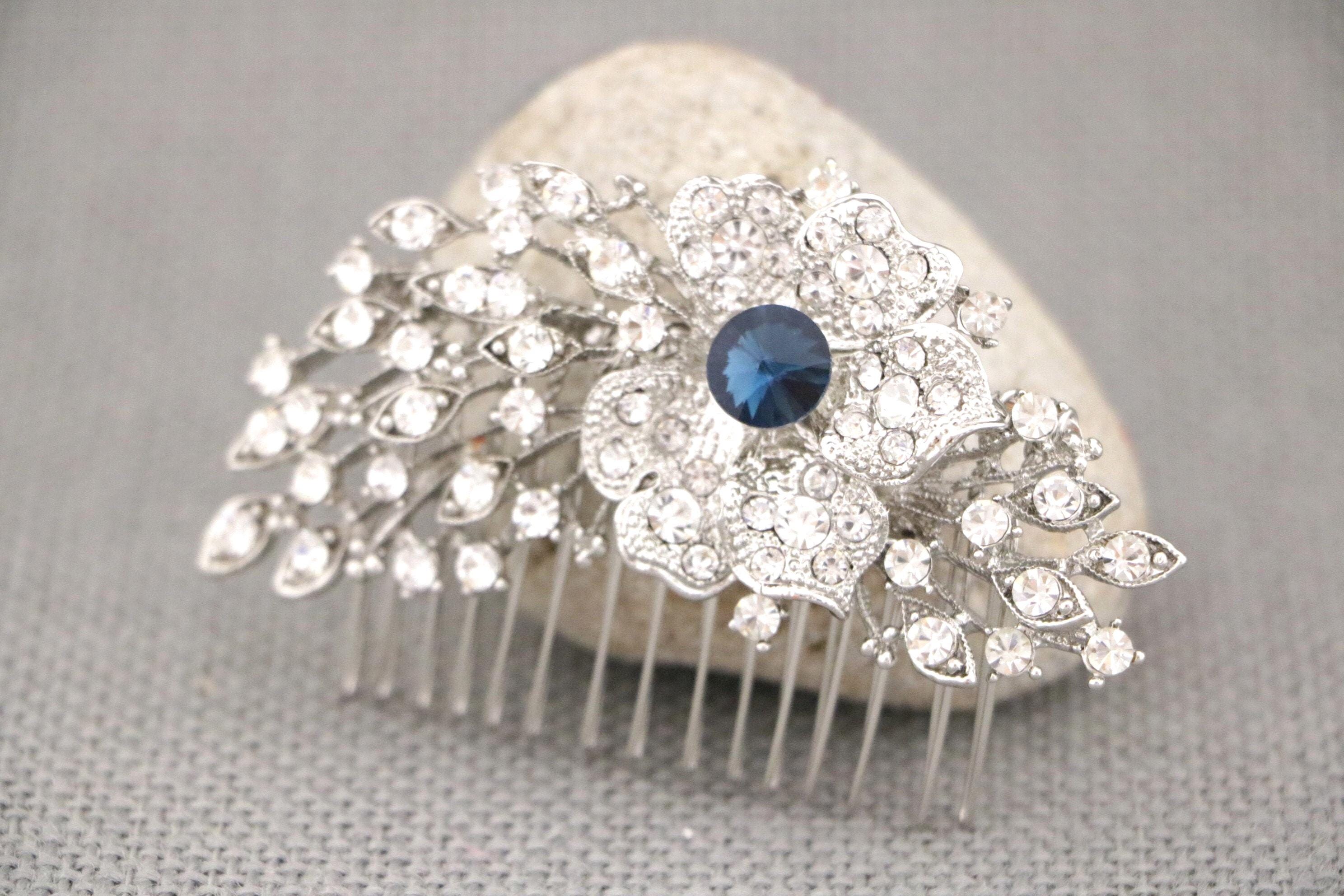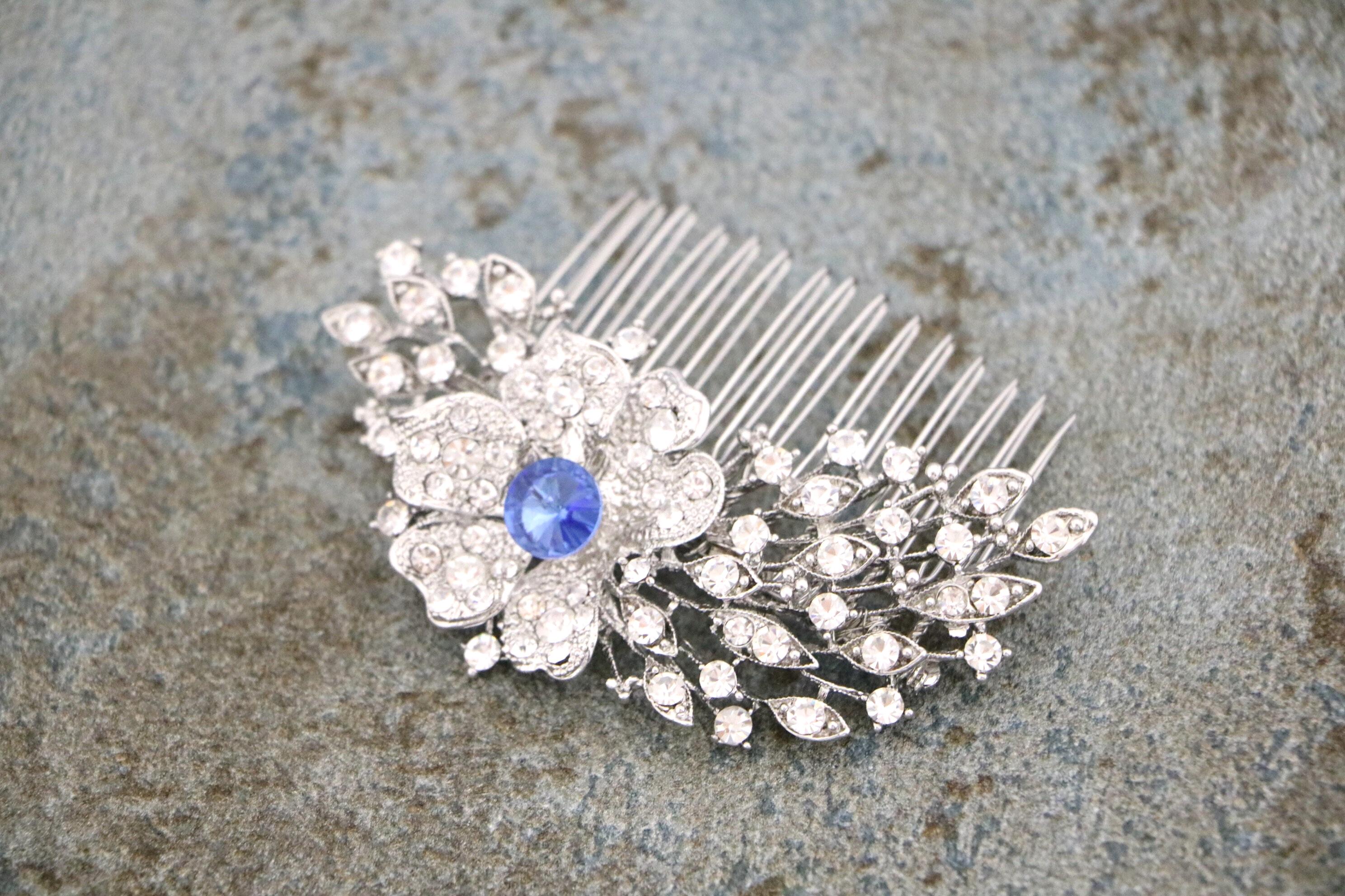 Wedding Headpiece Bohemian Wedding Headpiece Silver Bridal Hair Comb Bridal Hair Comb Blue Bridal Flower Comb Bridal Comb Hairpiece
