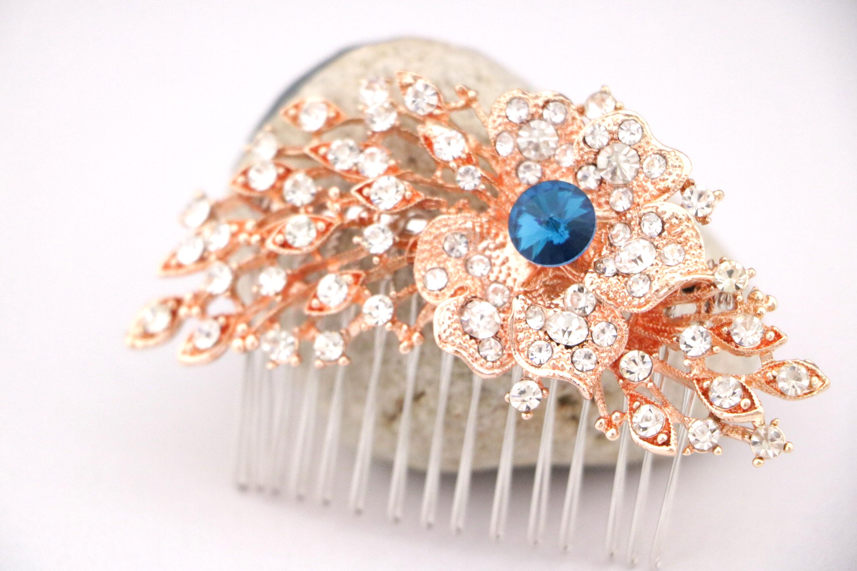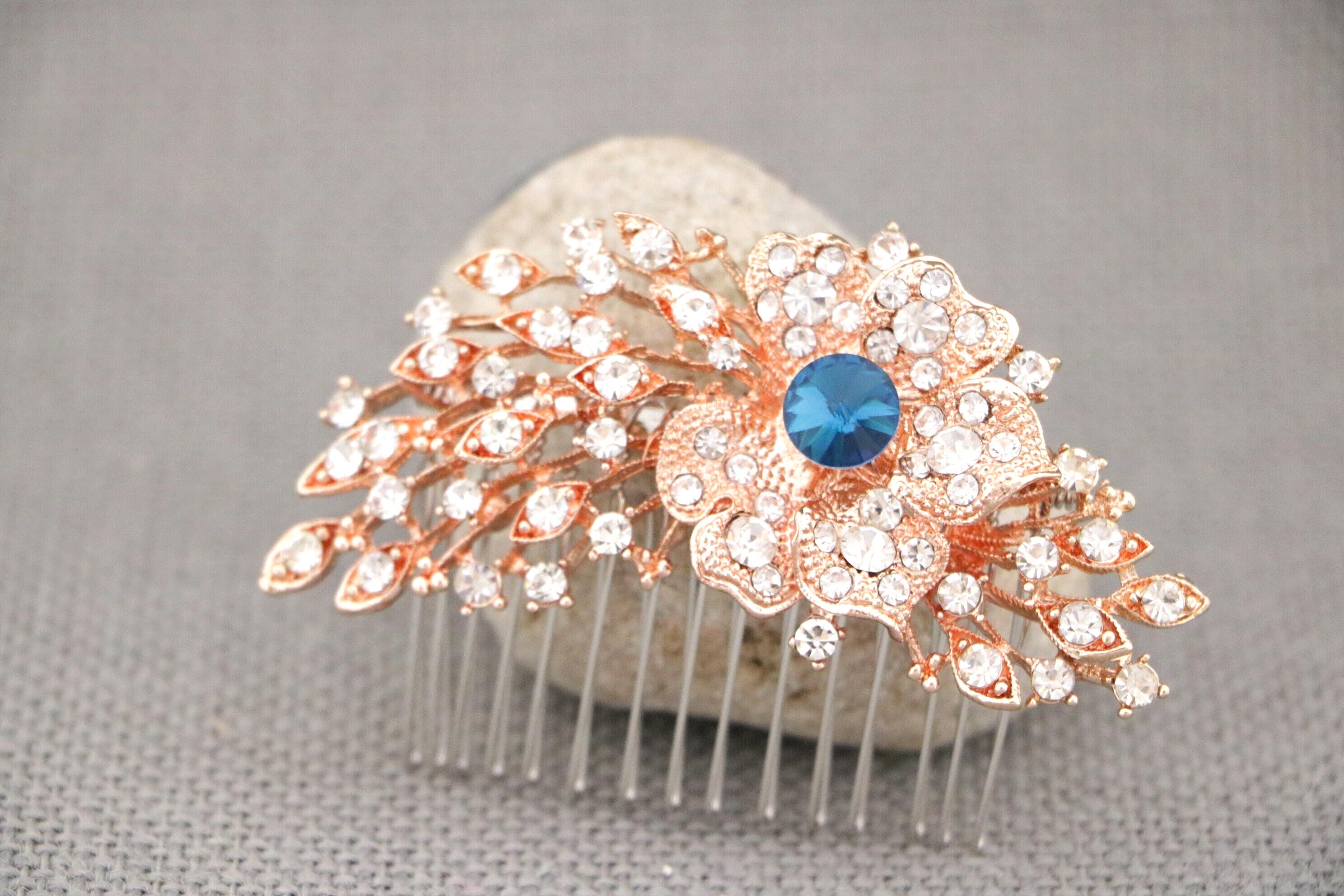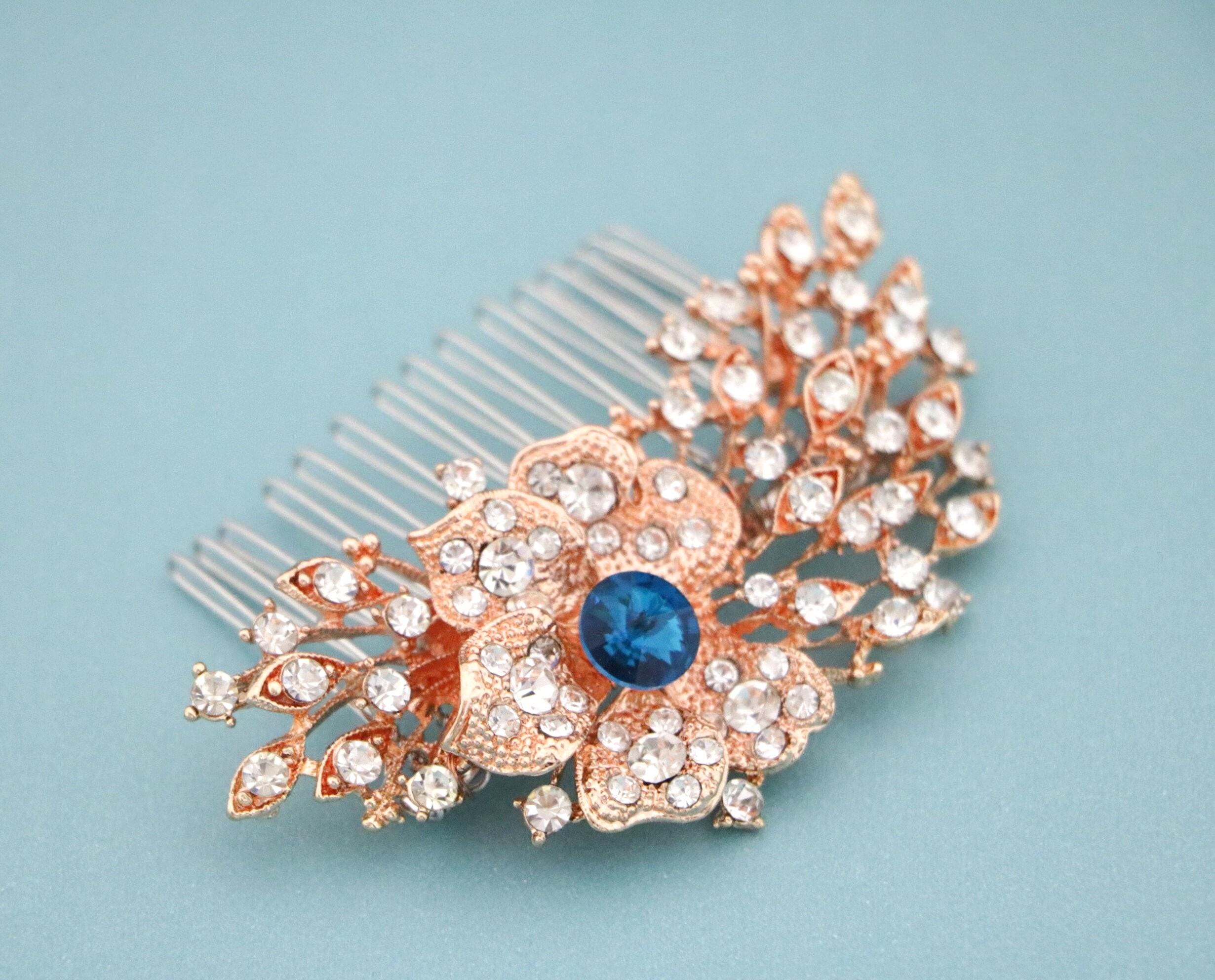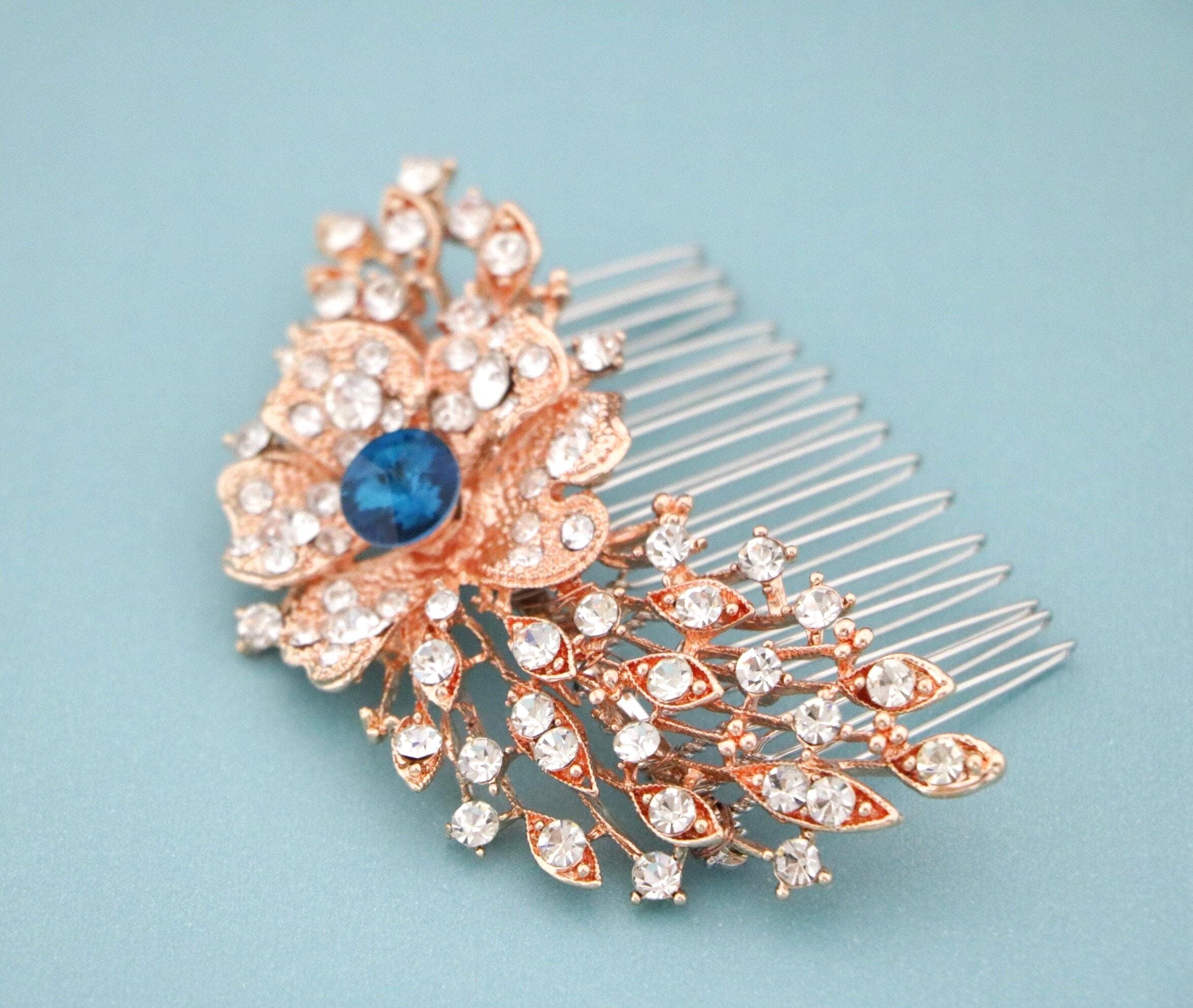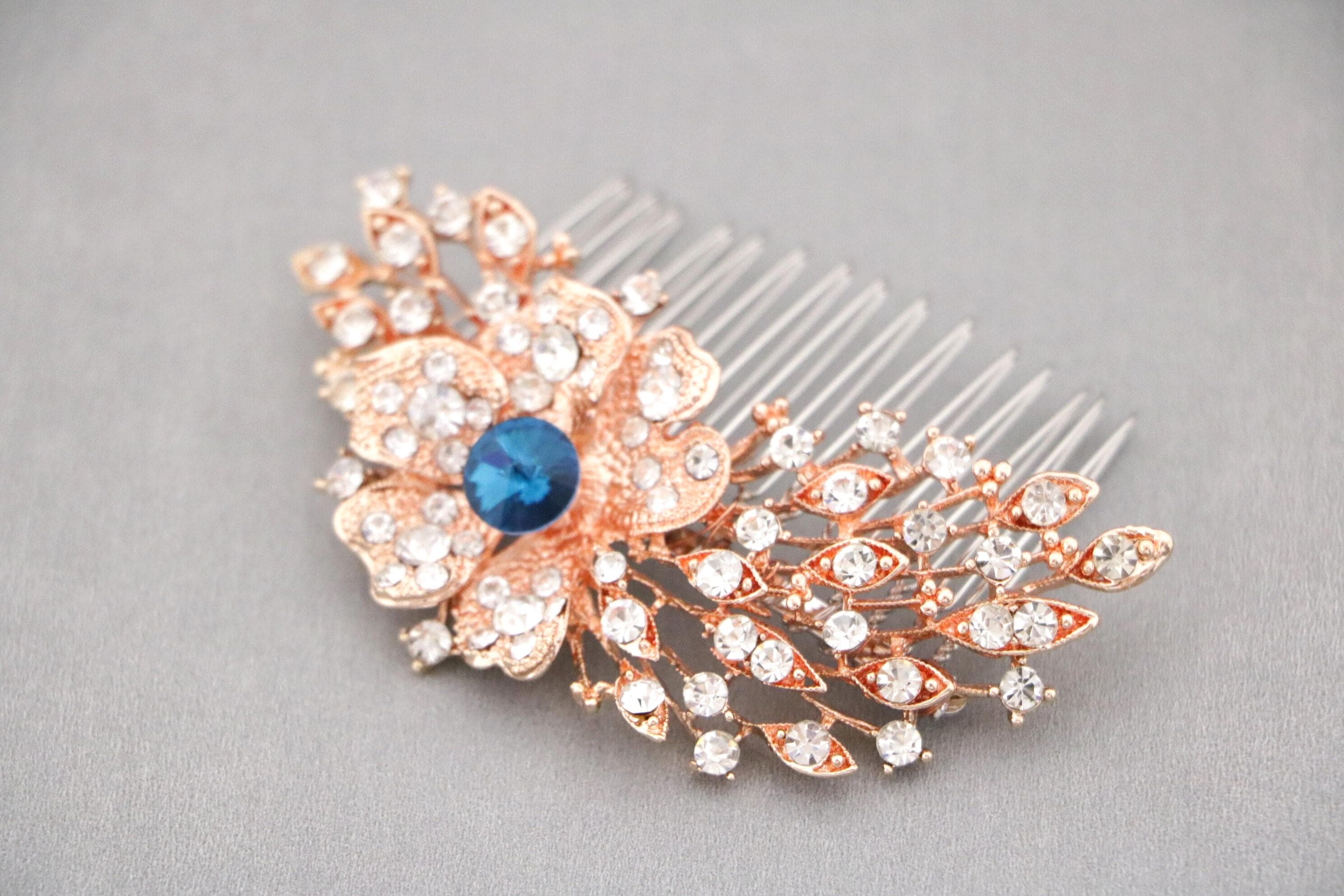 Wedding Headpiece Bohemian Wedding Headpiece Silver Bridal Hair Comb Bridal Hair Comb Blue Bridal Flower Comb Bridal Comb Hairpiece