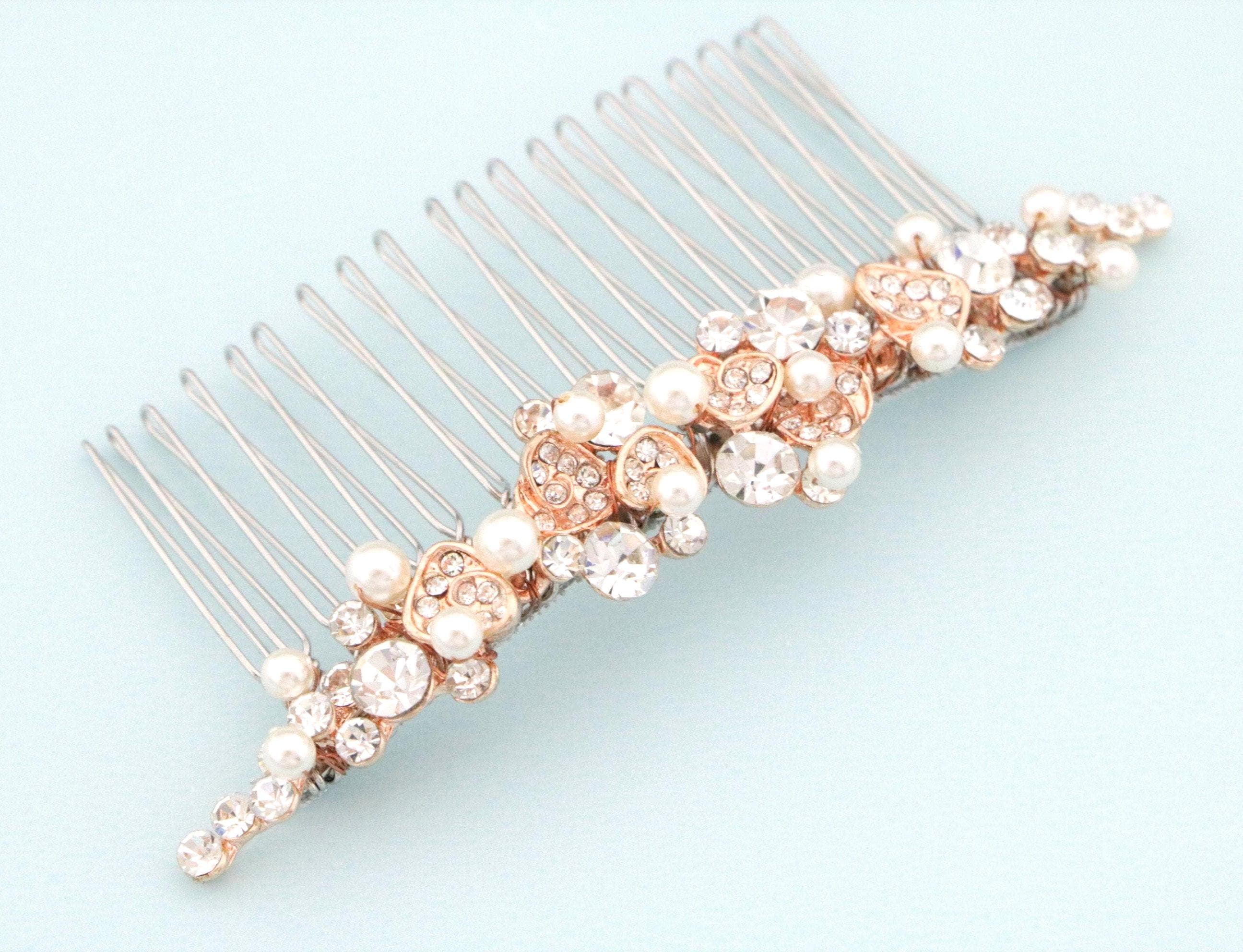 Bridal Jewelry Set, Rose Gold Wedding Jewelry Set, Rose Gold Bridal Earrings, Hair Accessory, Bridesmaid Gift Set, Crystal Bridal Hair Piece