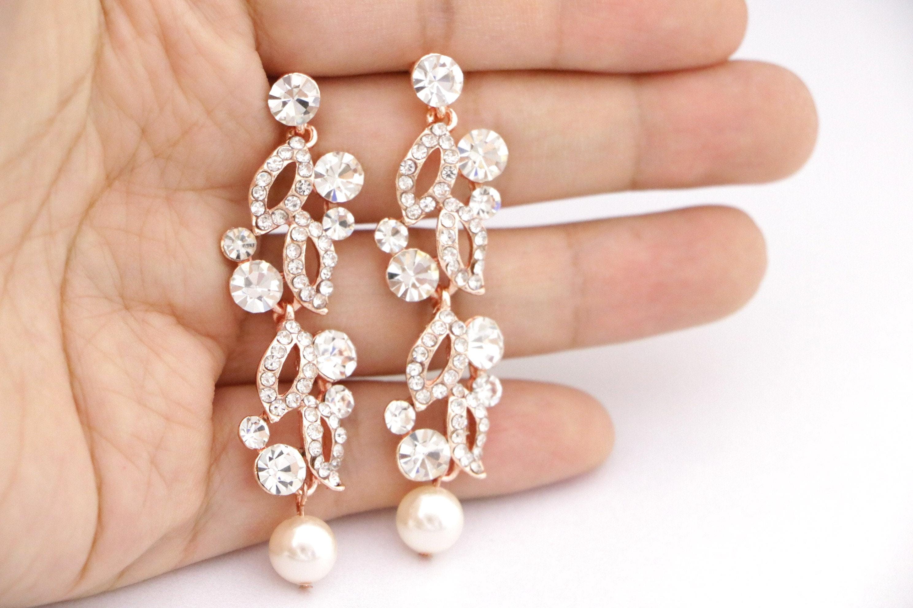 Rose Gold Earring Bridesmaid Chandelier Earrings Bridesmaid Gift Bridal Drop Earrings Bridesmaid Earrings Wedding Earrings