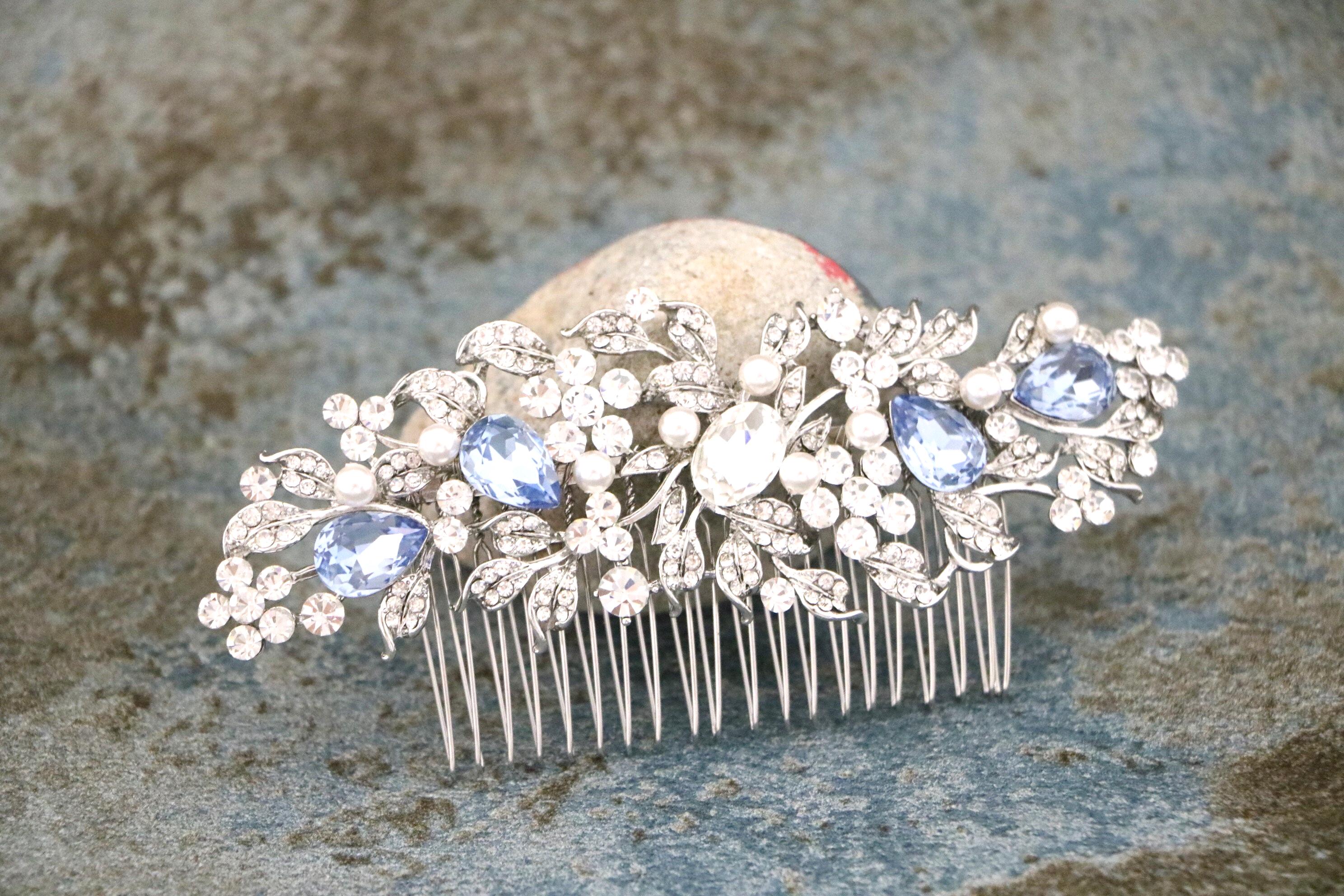 Large Wedding Bridal Clip, Crystal Hair Clip, Wedding Hair Accessories, Hair Vine Side Clip,Navy Blue Wedding hair piece Wedding hair comb Blue Wedding comb
