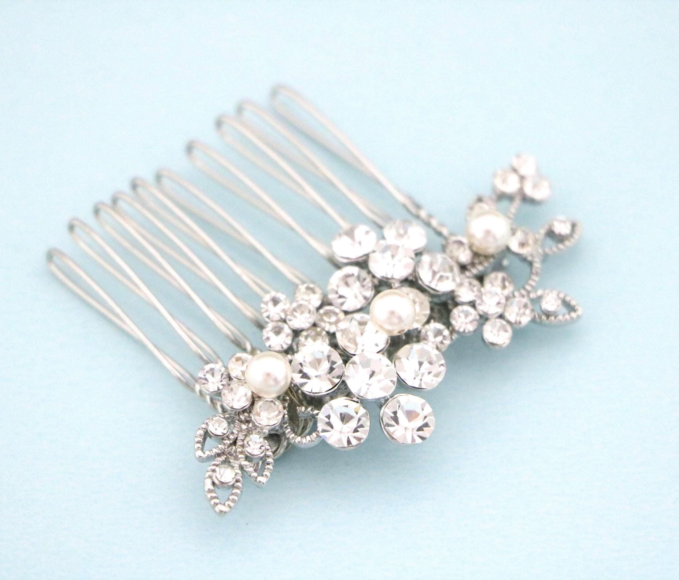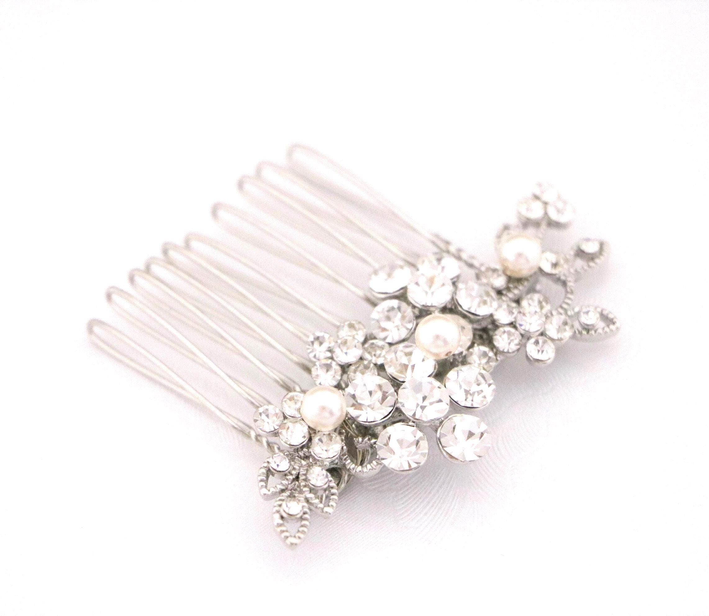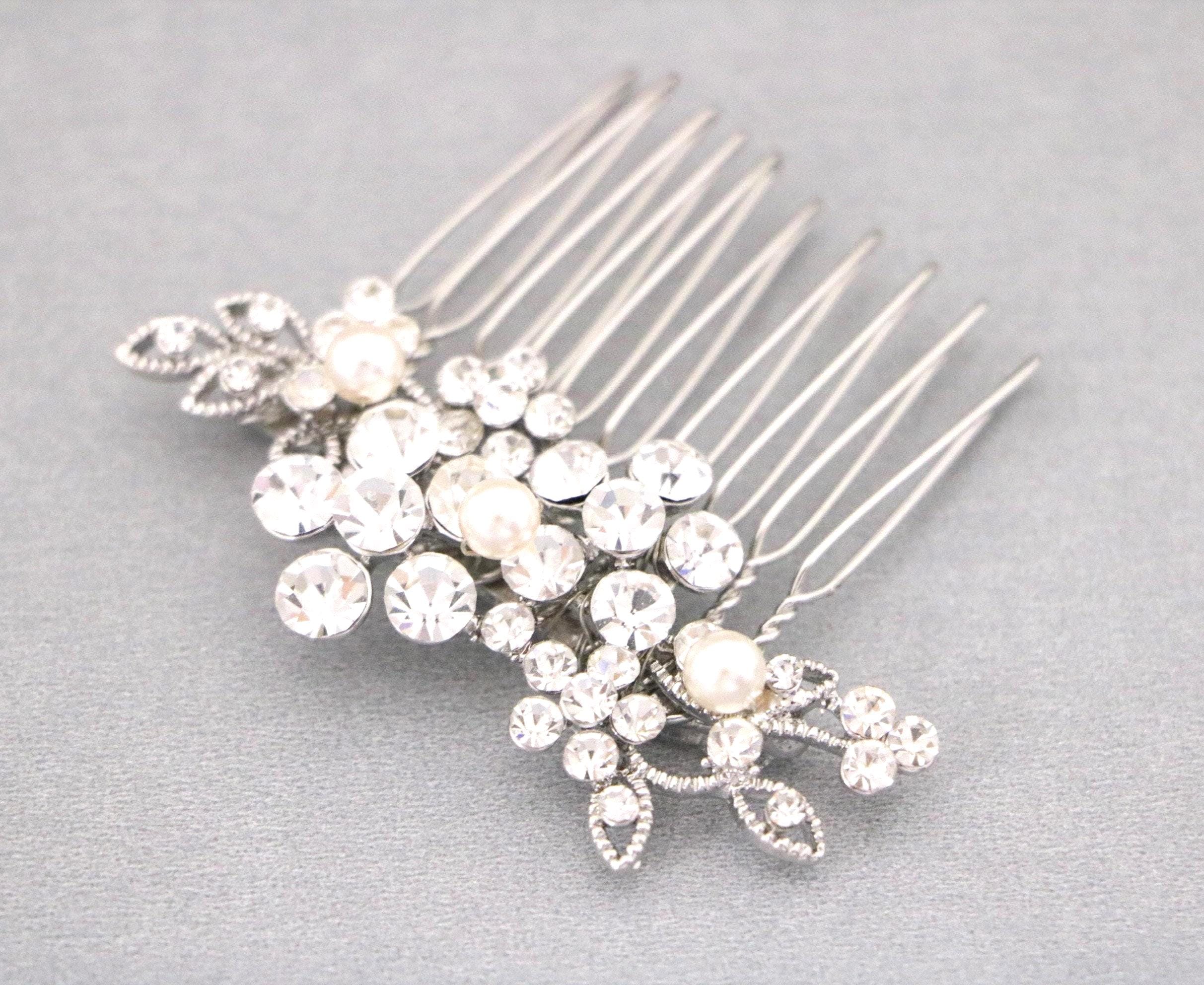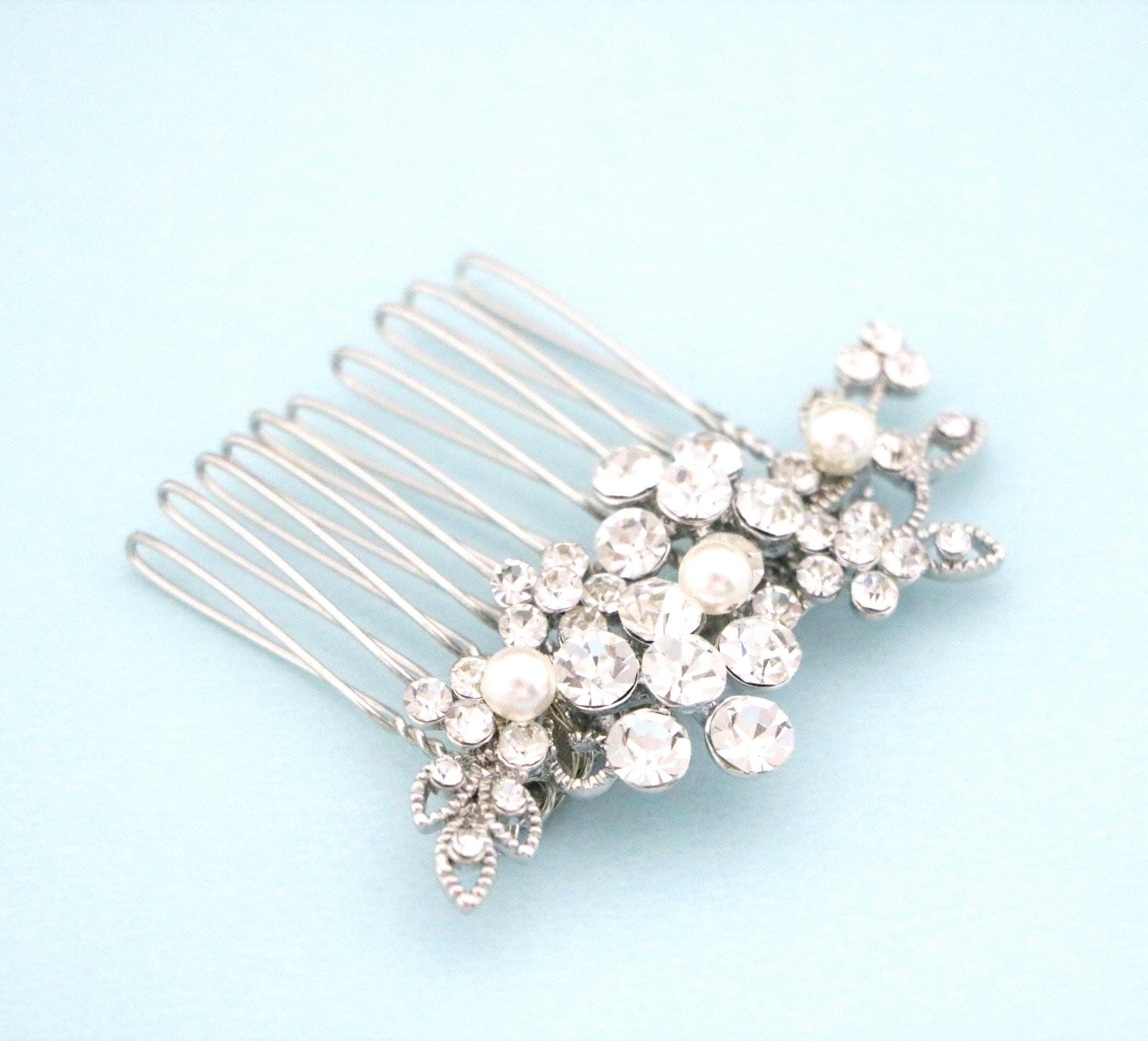 Small Silver Wedding Hair Comb, Pearl Hair Jewellery for Wedding, Bridal Hair Clip for Bun, Bride Hair Comb, Silver Hair Jewelry, Hair Comb