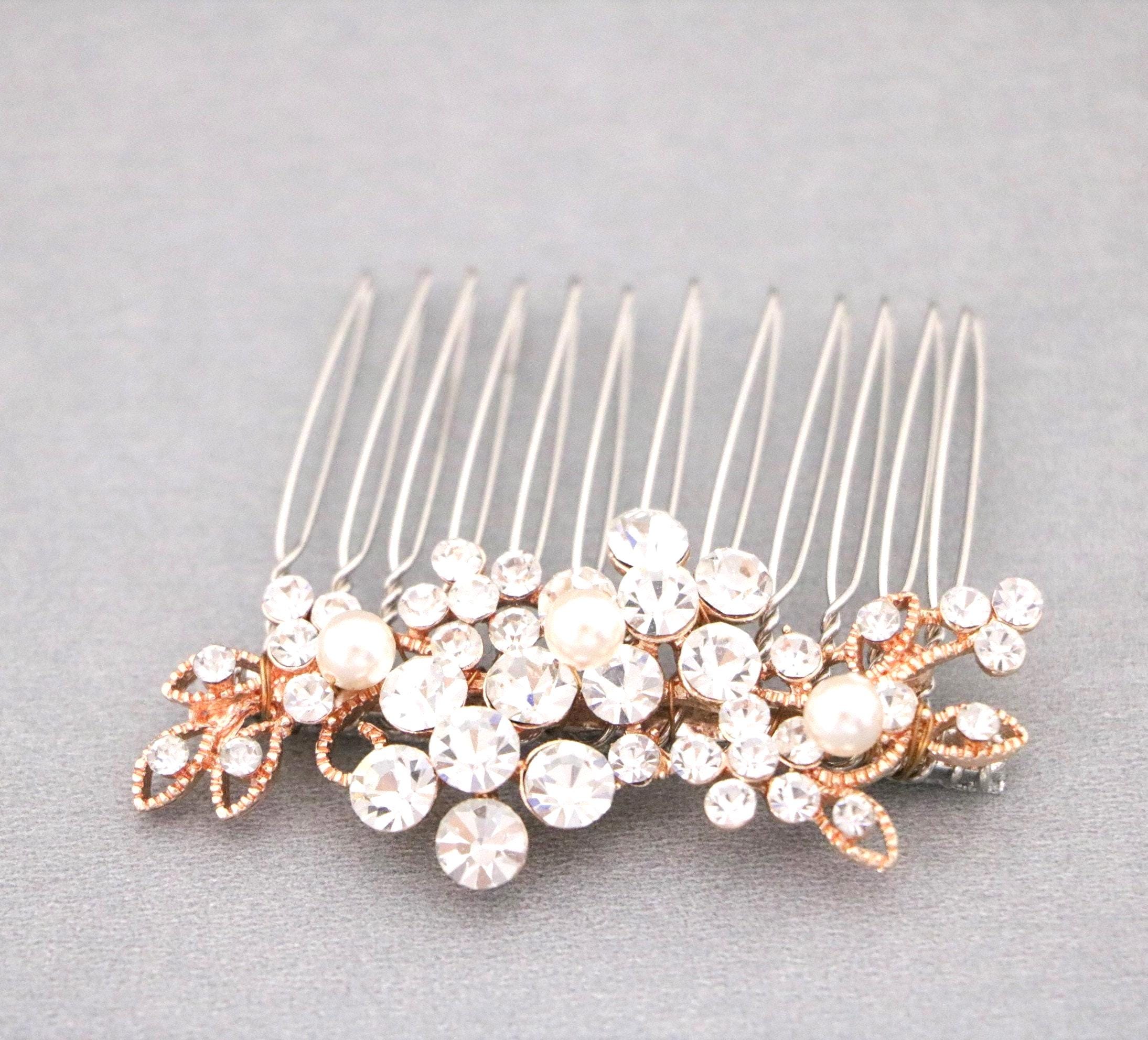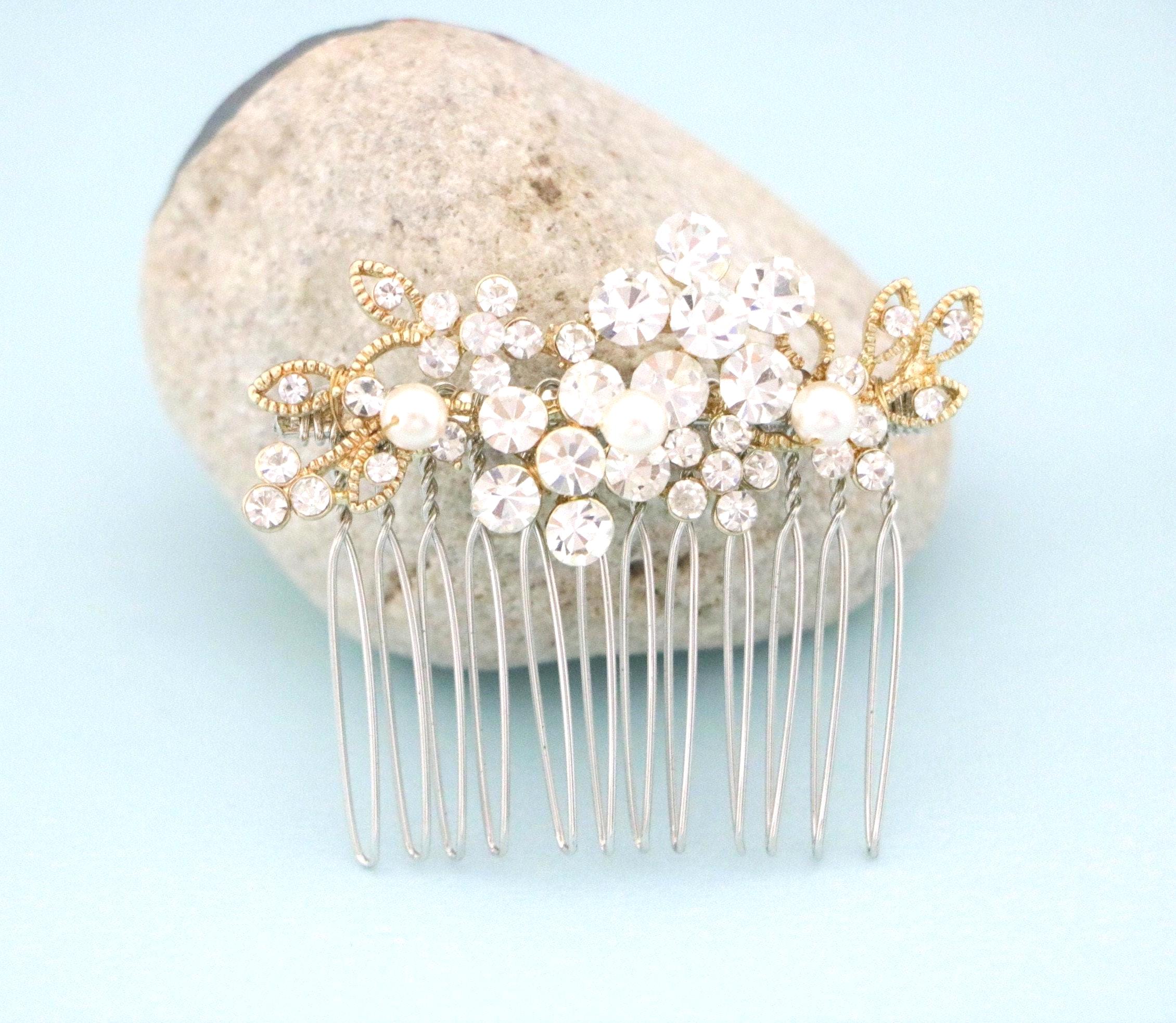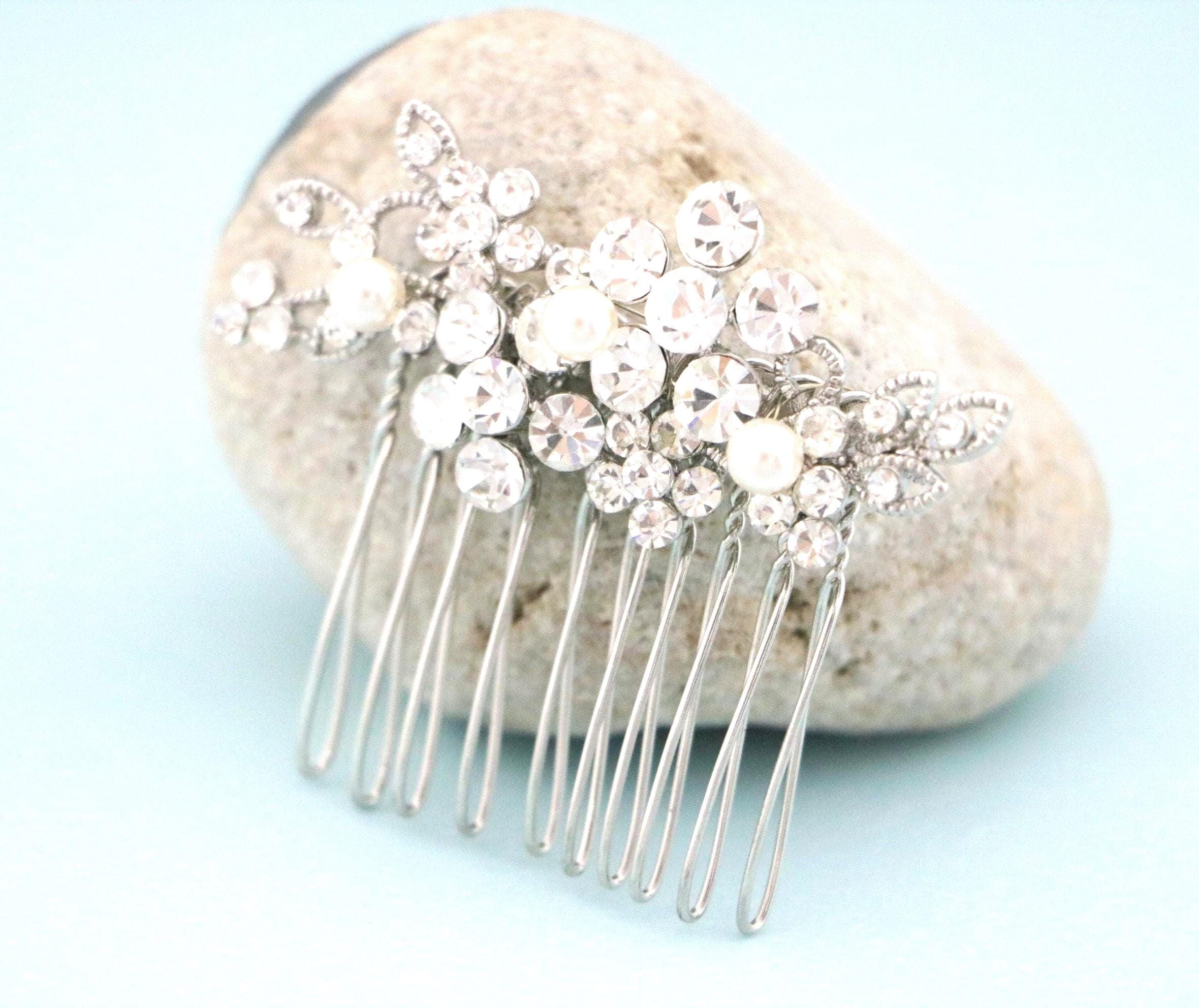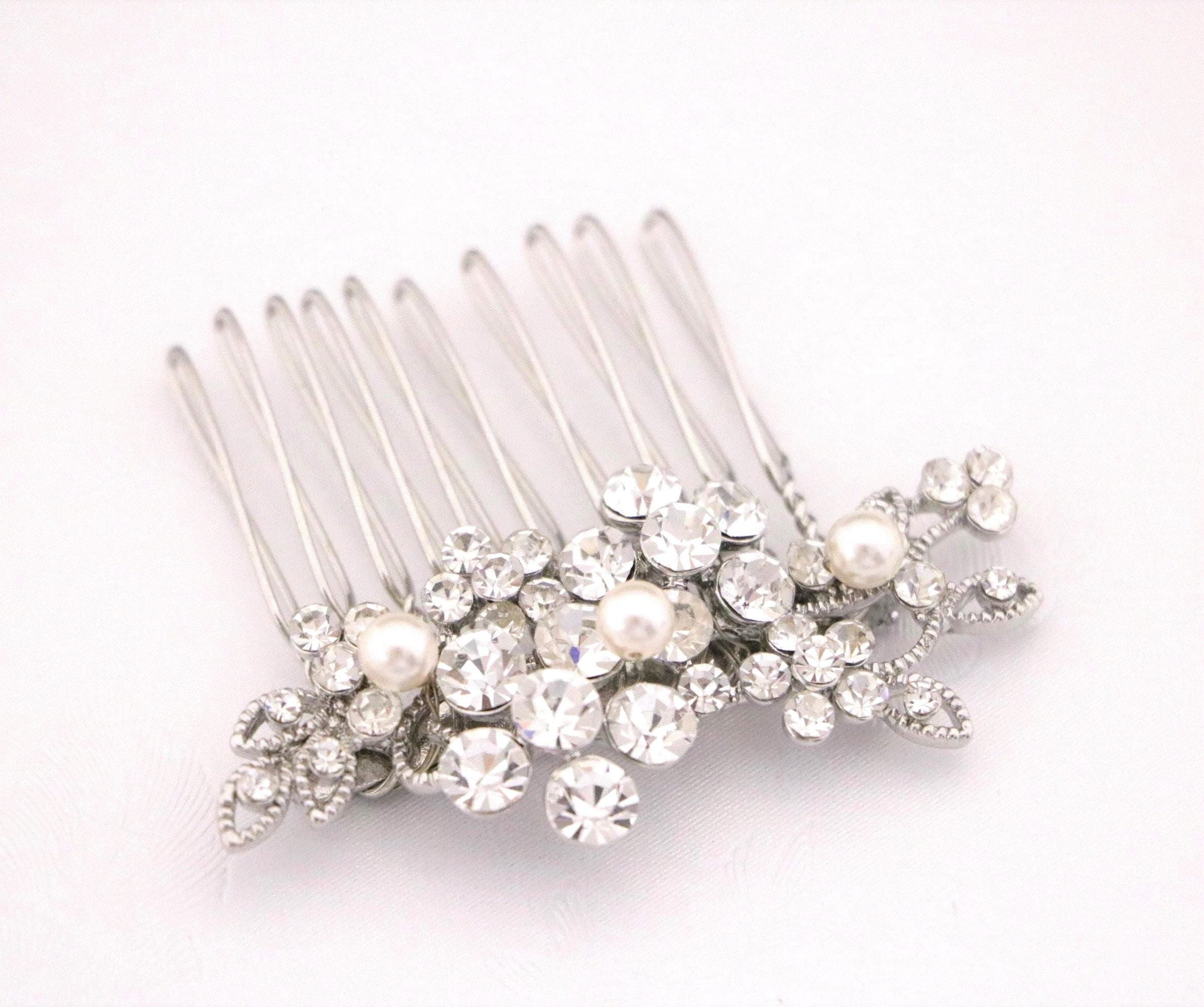 Small Silver Wedding Hair Comb, Pearl Hair Jewellery for Wedding, Bridal Hair Clip for Bun, Bride Hair Comb, Silver Hair Jewelry, Hair Comb