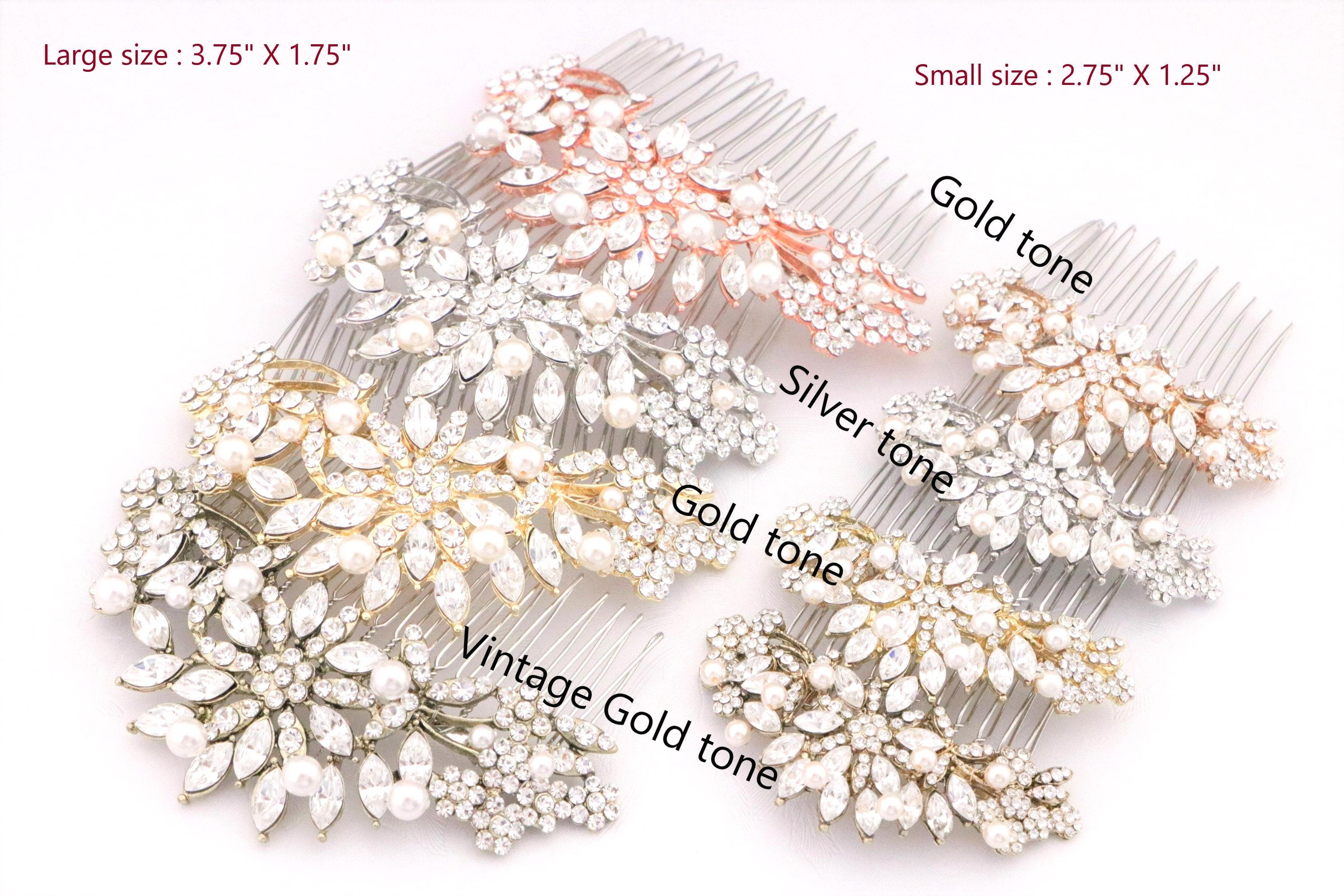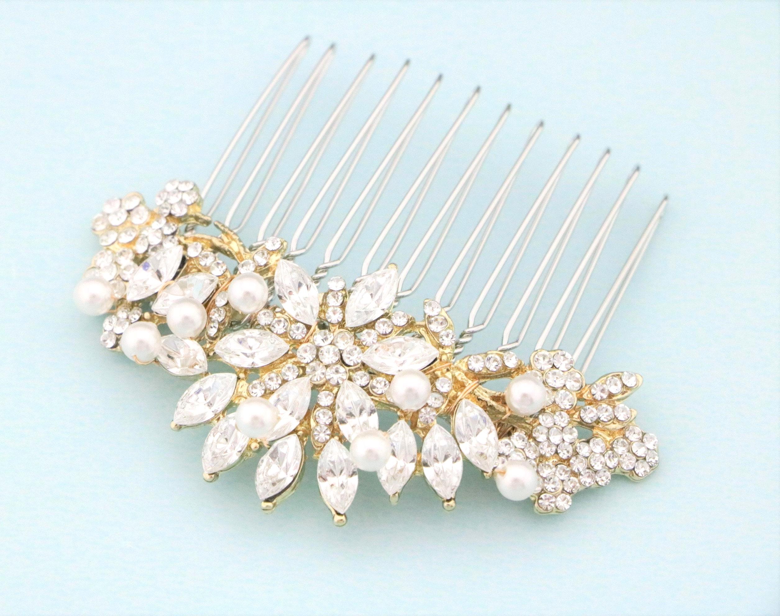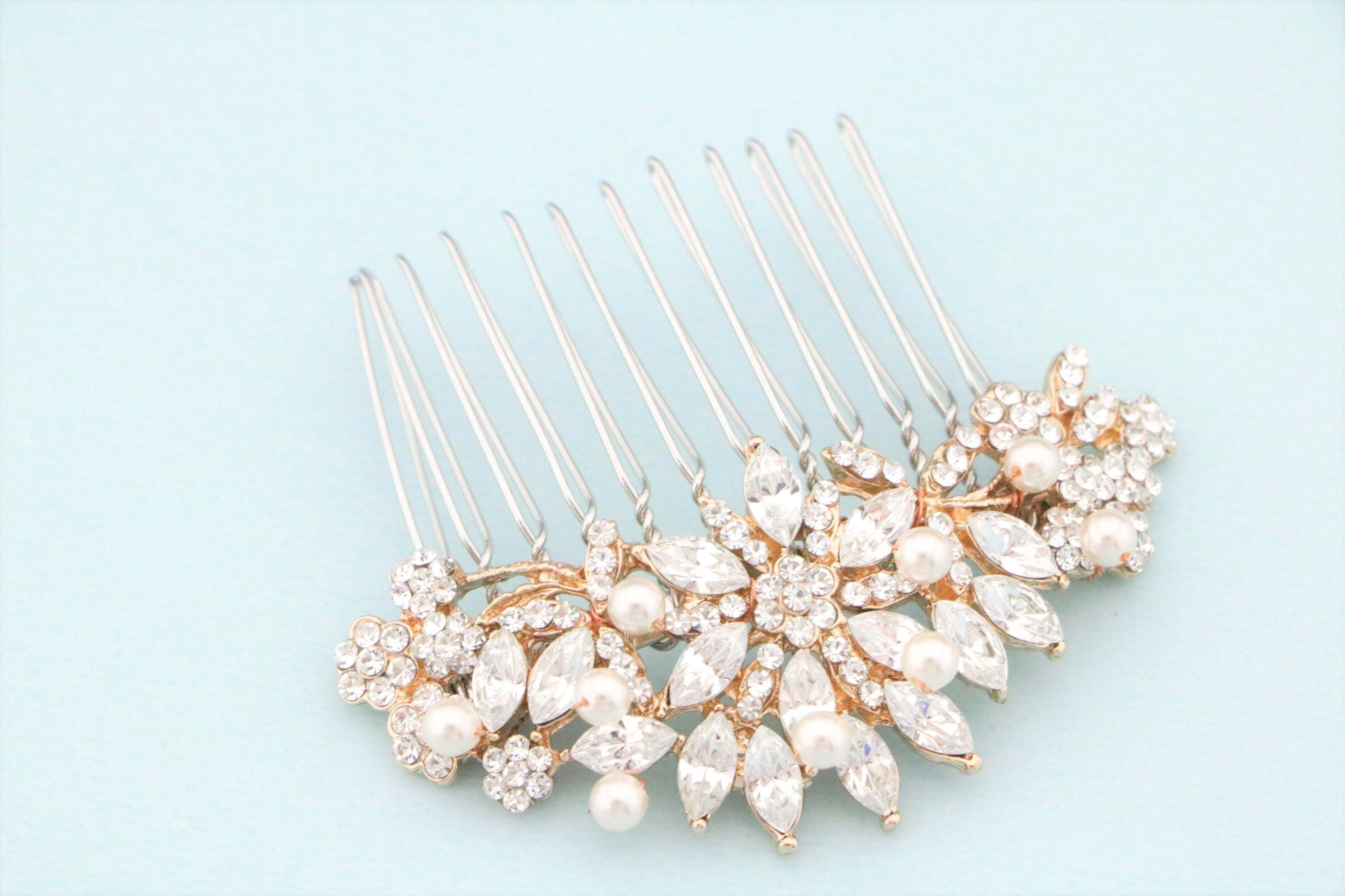 This beautiful Clear rhinestone Swarovski pearl hair comb is a perfect compliment for the wedding party and can easily fit into any hair style.