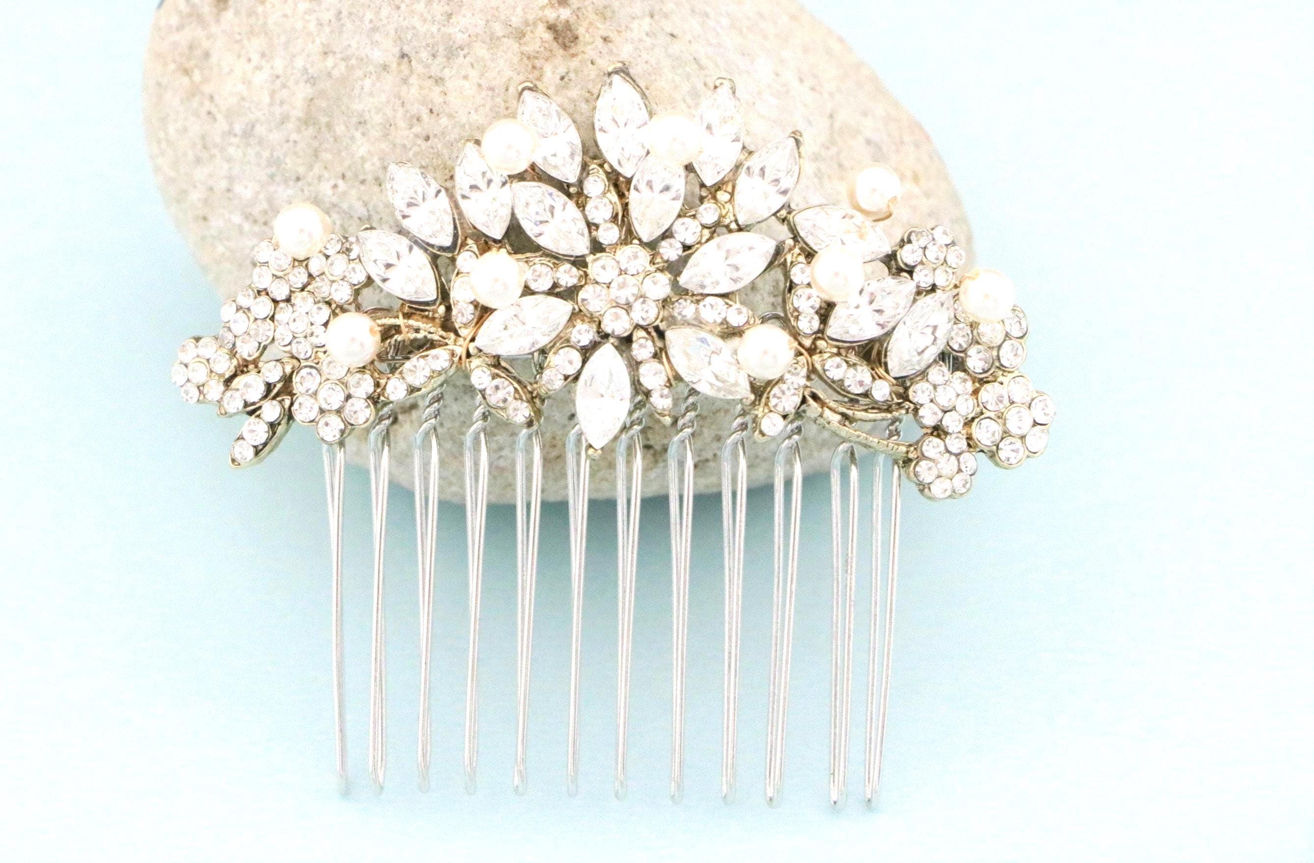 Bridal Rhinestone Pearl Comb, Bridal Comb Crystal, Wedding Crystal Hair Comb, Hair Comb, Wedding Accessory, Swarovski Pearl Comb