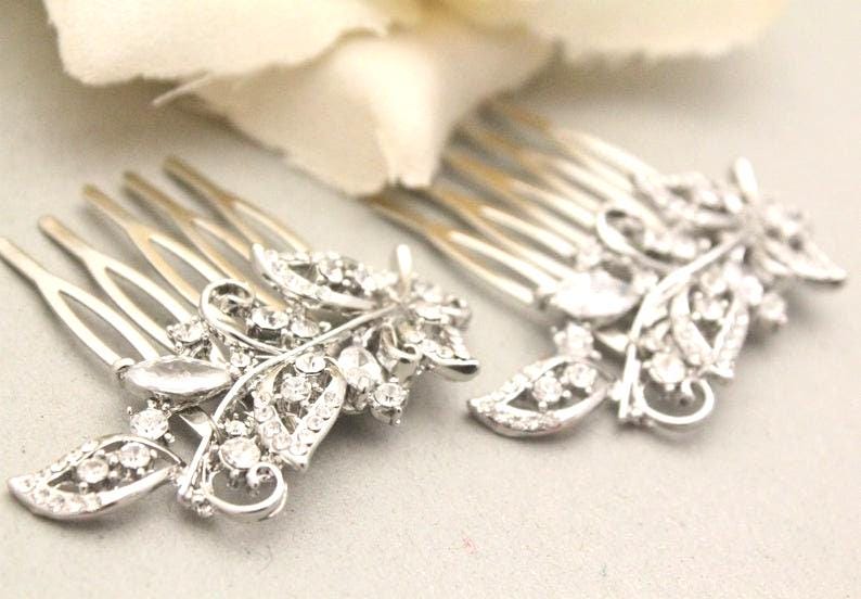 This sparkle rhinestone hair comb features a very beautiful vintage style rhinestone piece. Rhinestone piece can set on a metal barrette or on a metal hair comb.