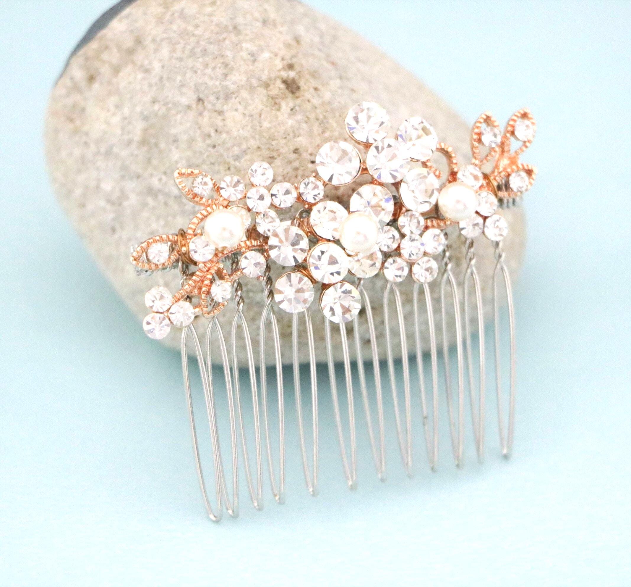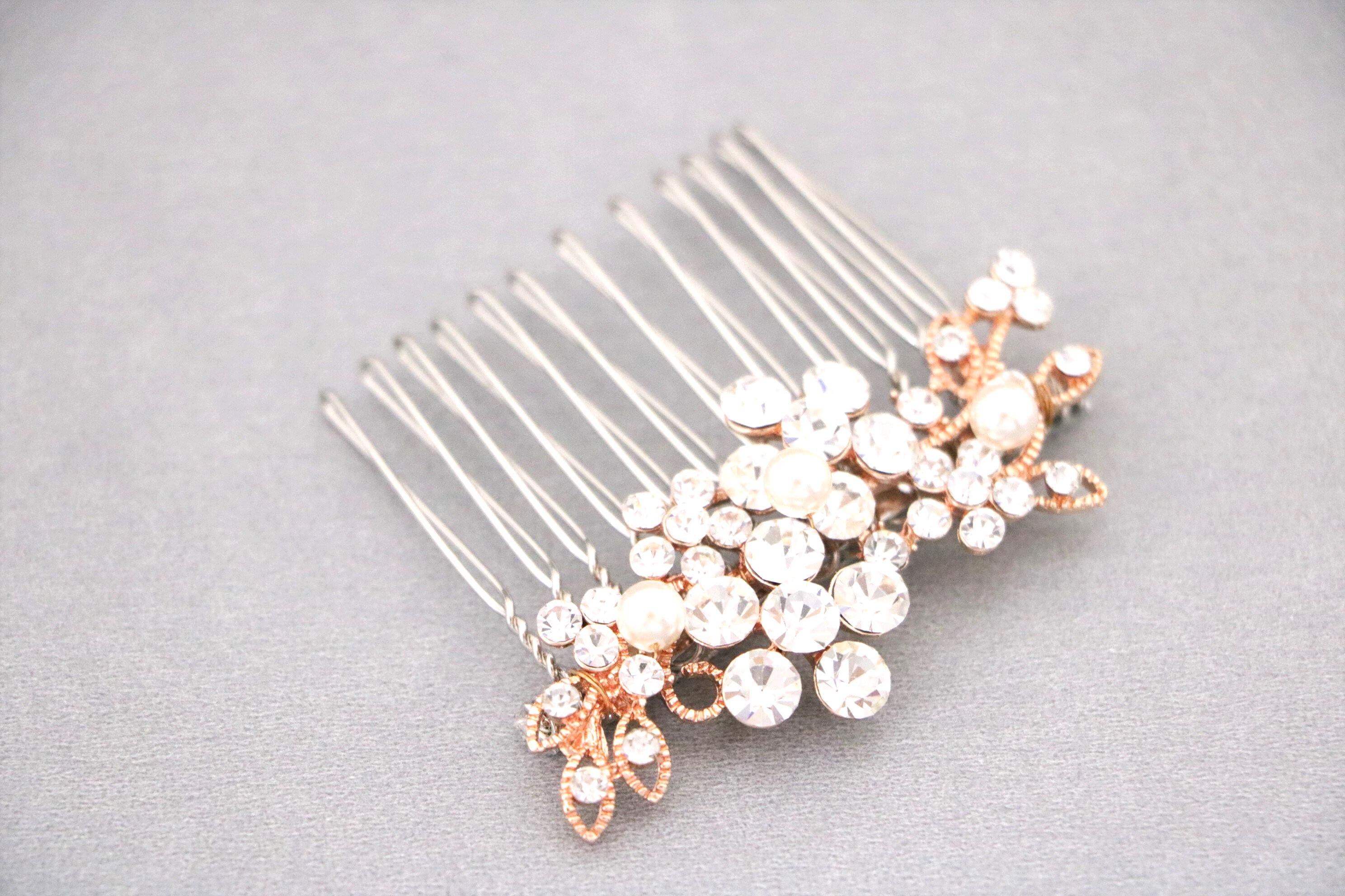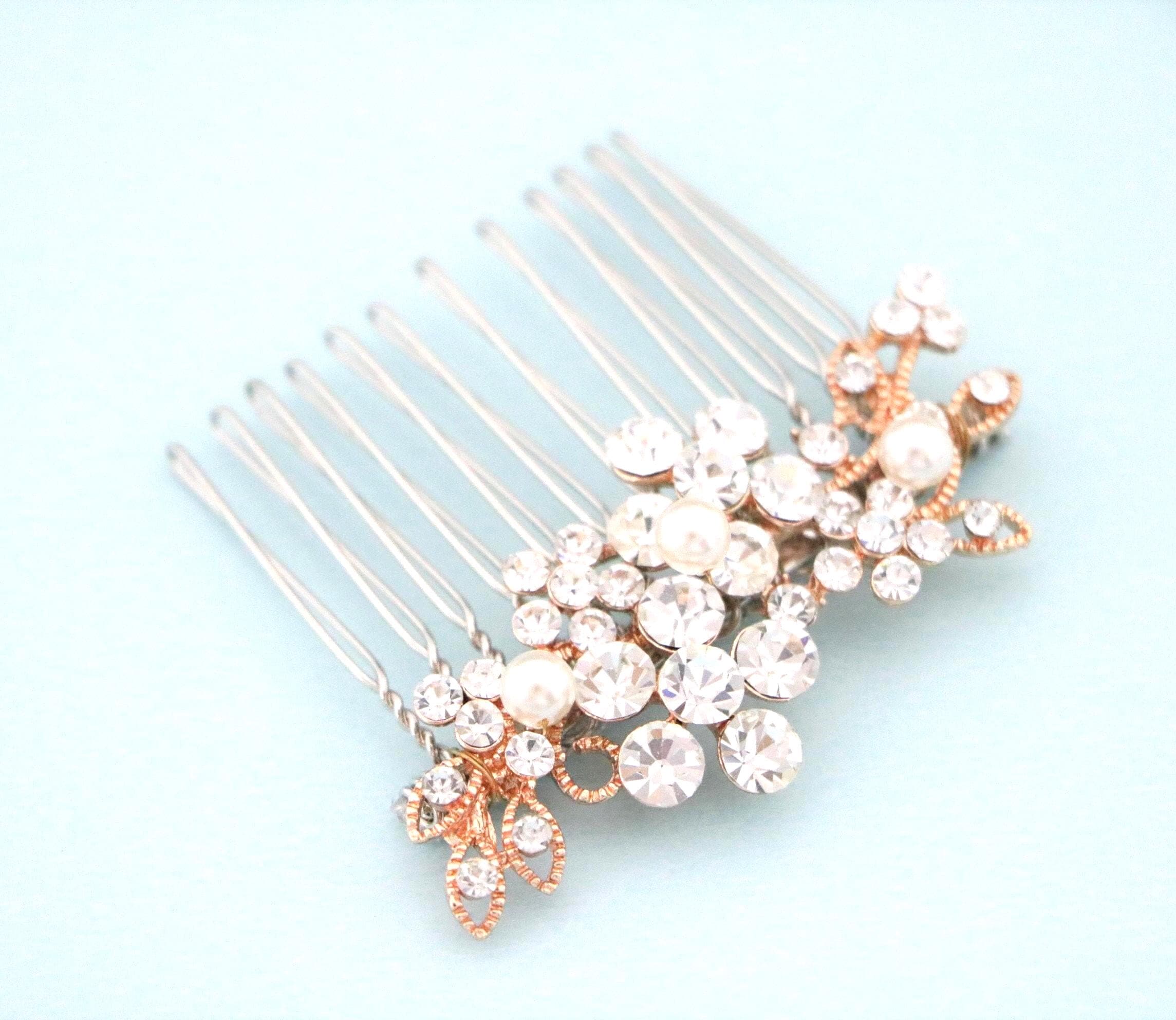 Bridal Comb Rose Gold, Rhinestone Comb, Small Wedding Crystal Hair Comb, Bridal Headpiece,Rose Gold Swarovski Comb