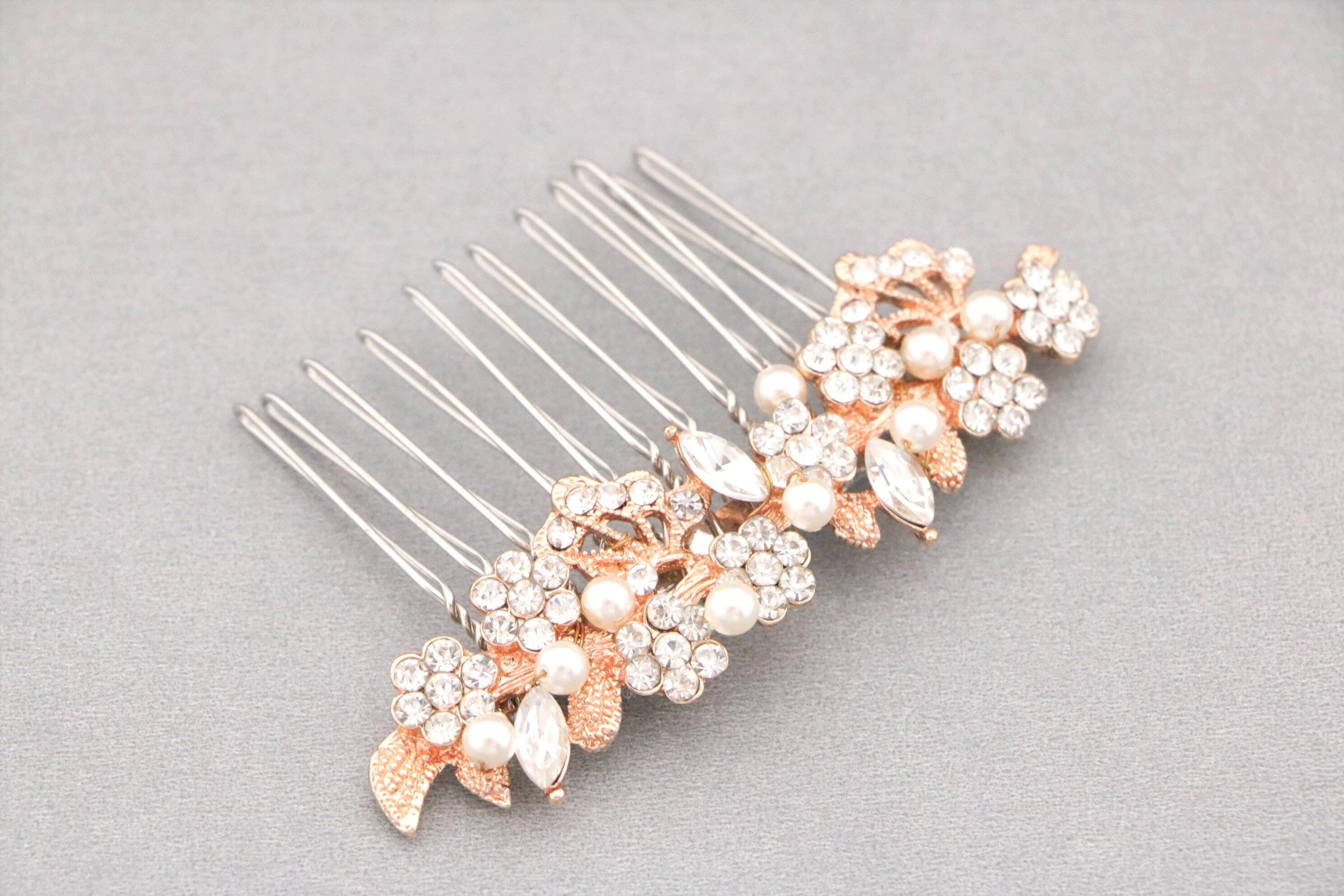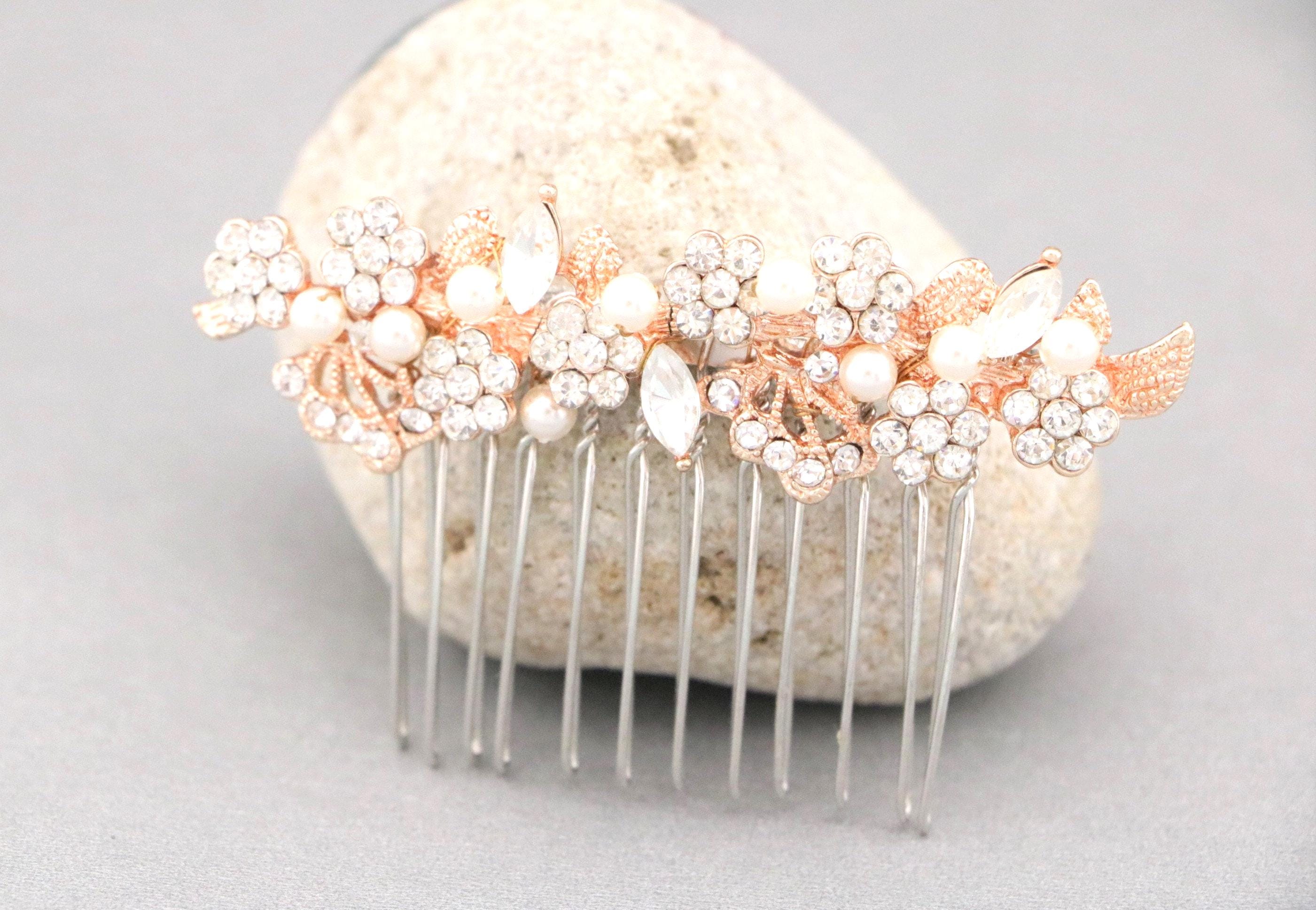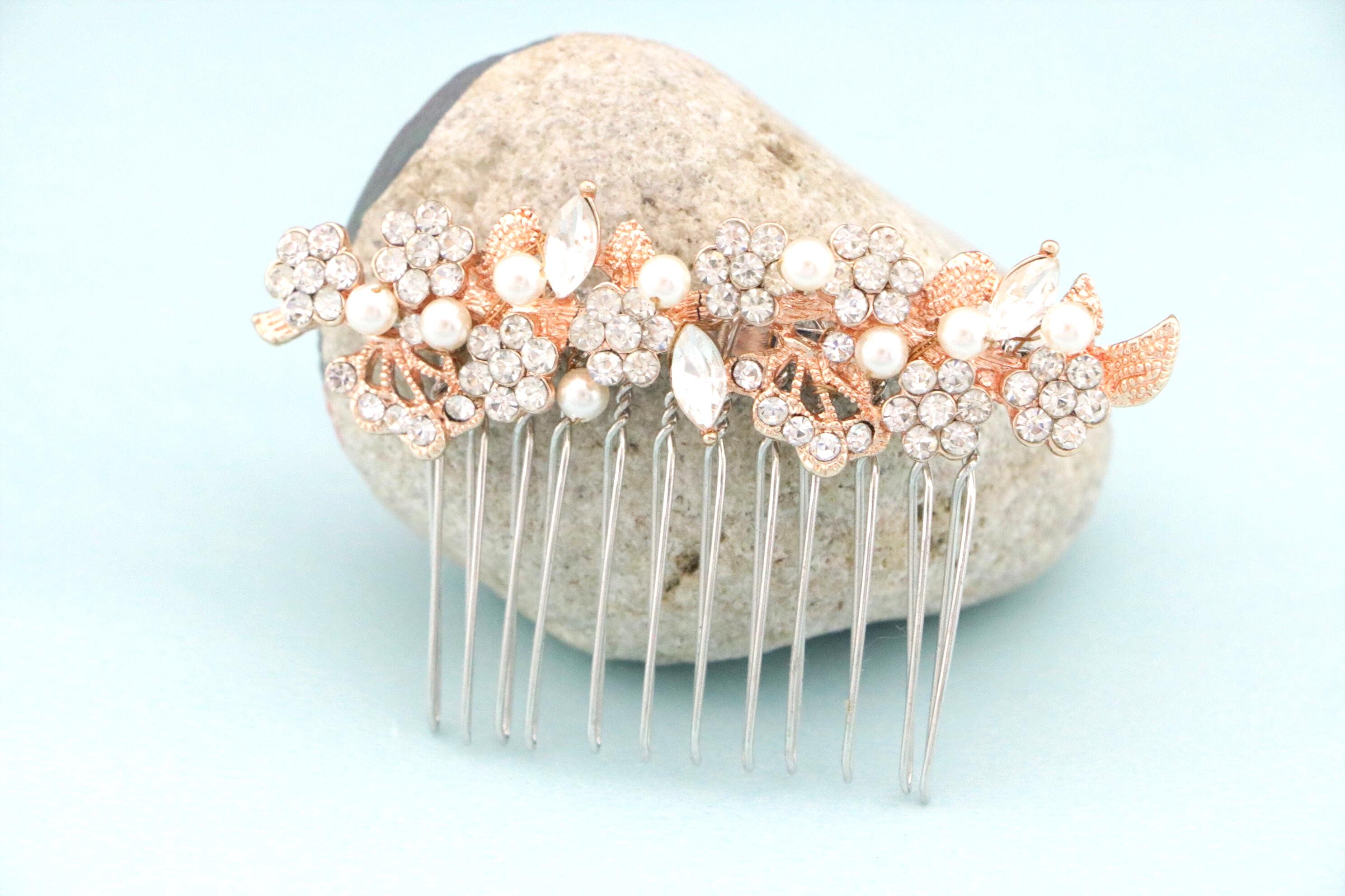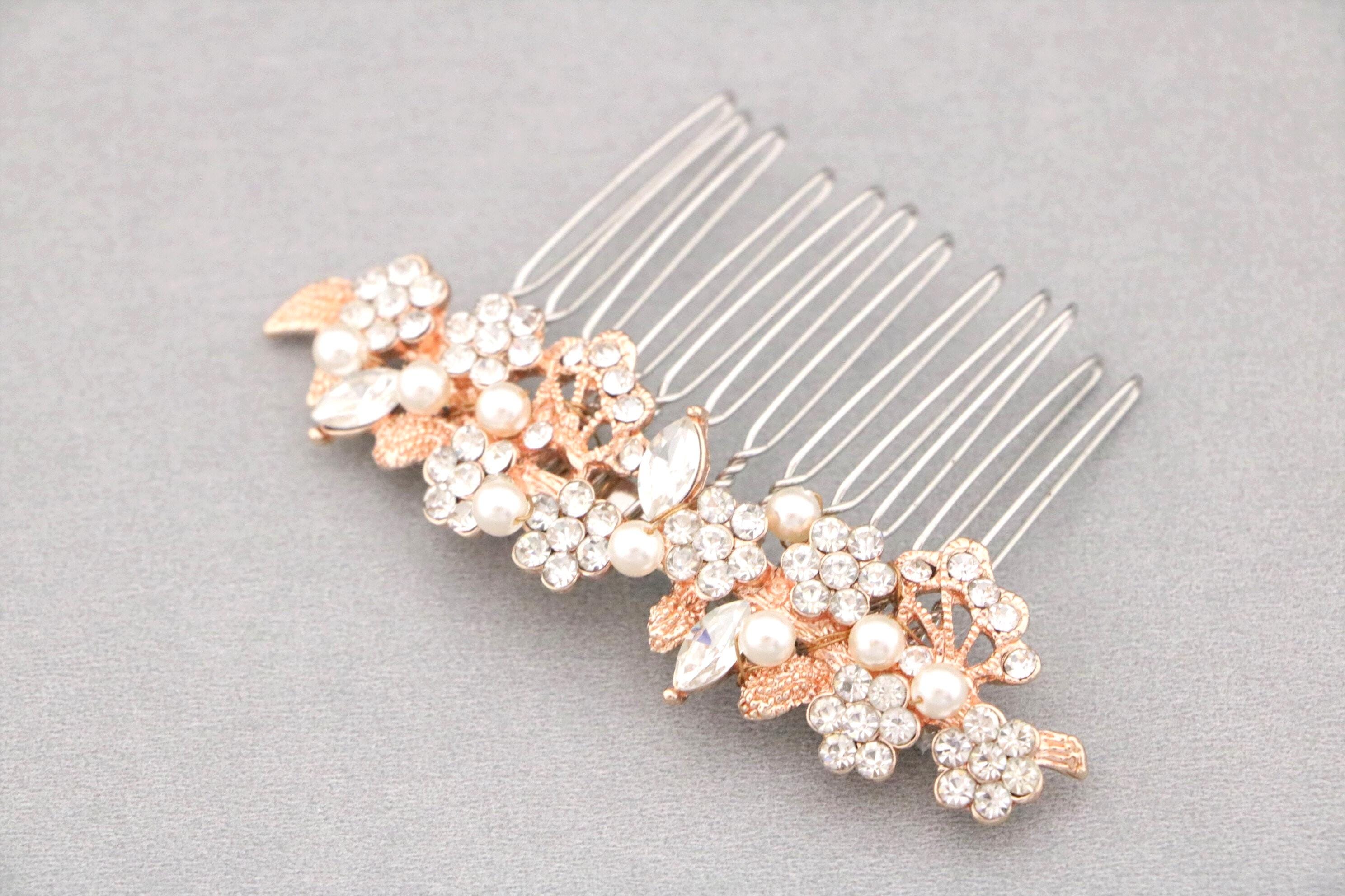 Decorative Rose Gold Wedding Hair Comb, Crystal Hair Comb for Wedding, Rose Gold Bridal Hair Comb, Wedding Day Hair Comb, Hair Jewelry