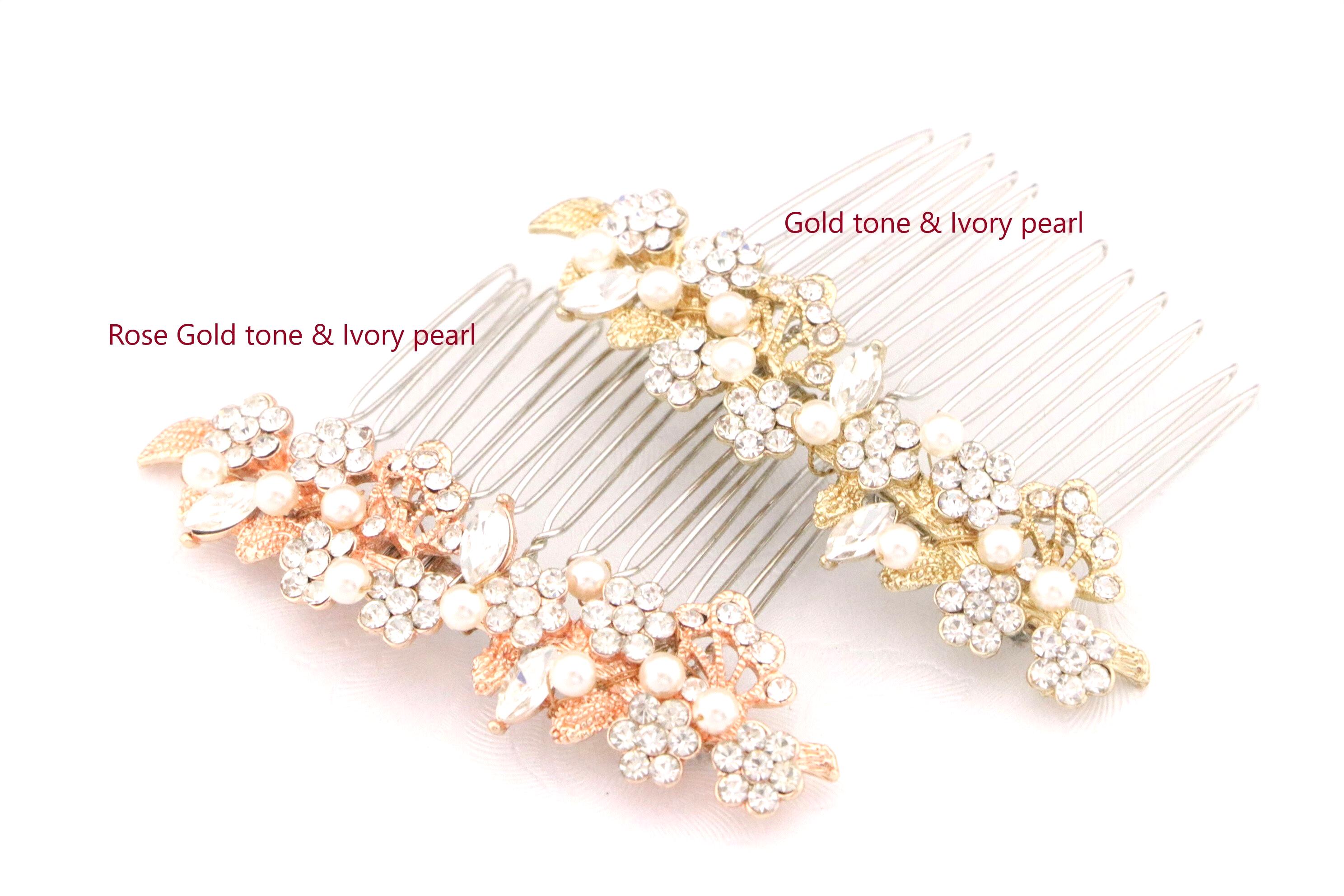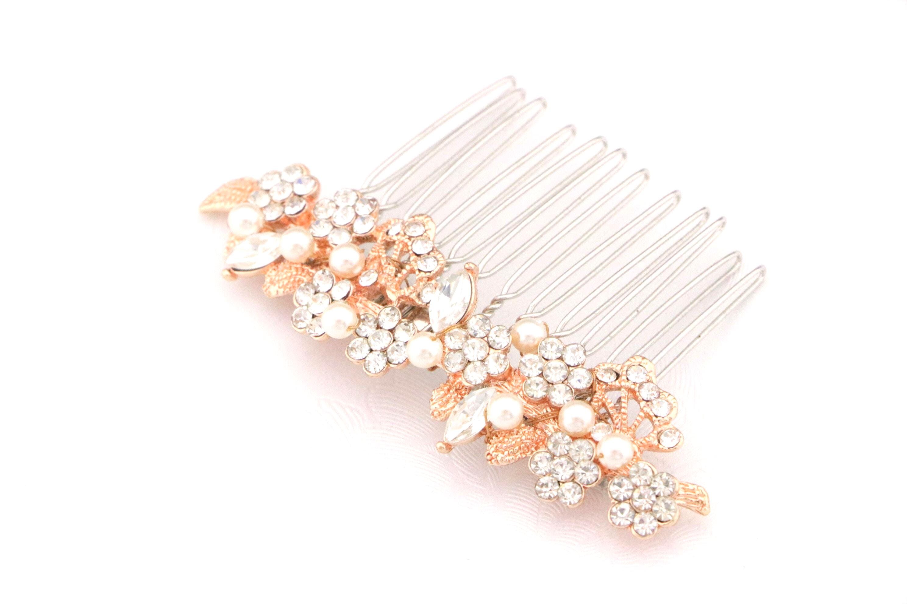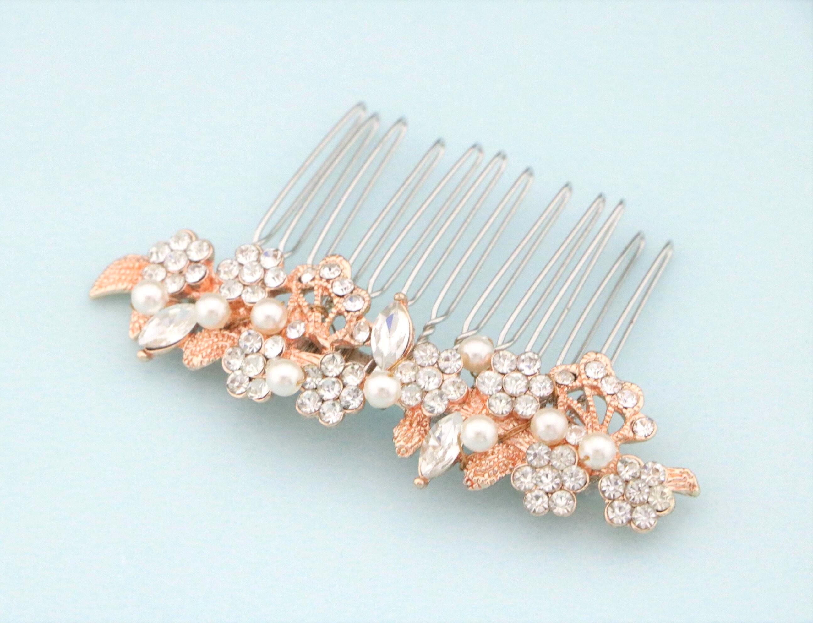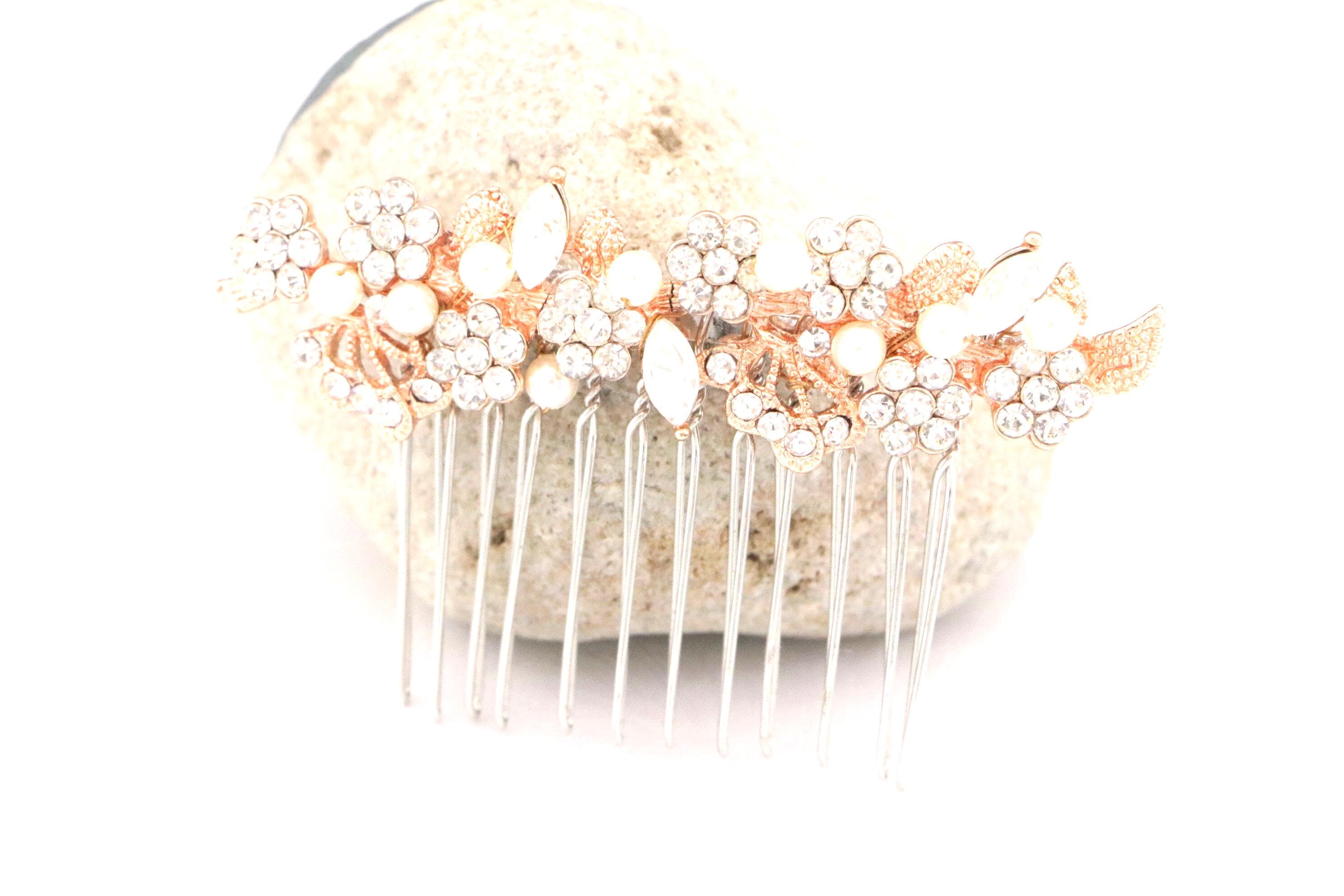 Decorative Rose Gold Wedding Hair Comb, Crystal Hair Comb for Wedding, Rose Gold Bridal Hair Comb, Wedding Day Hair Comb, Hair Jewelry