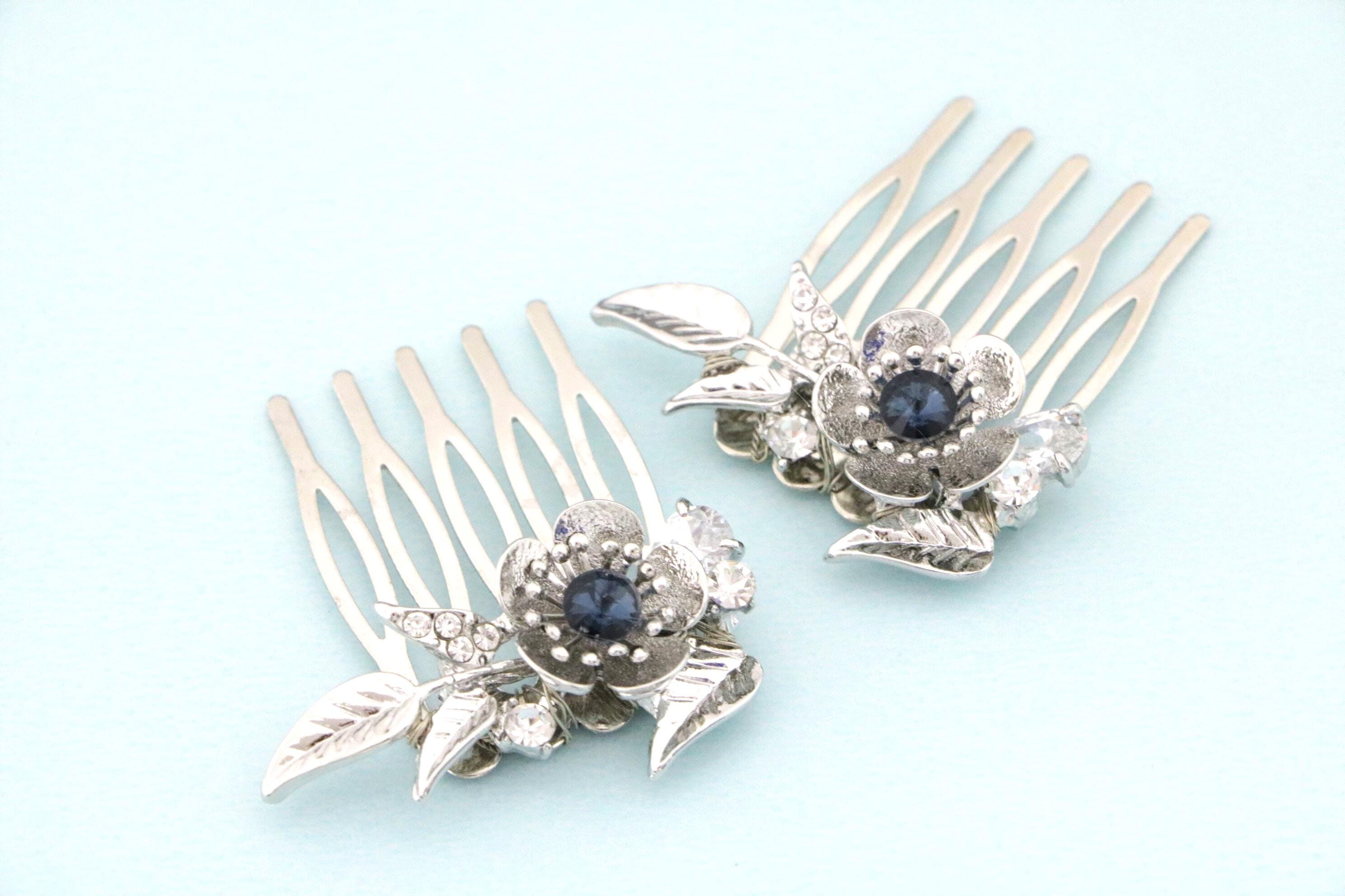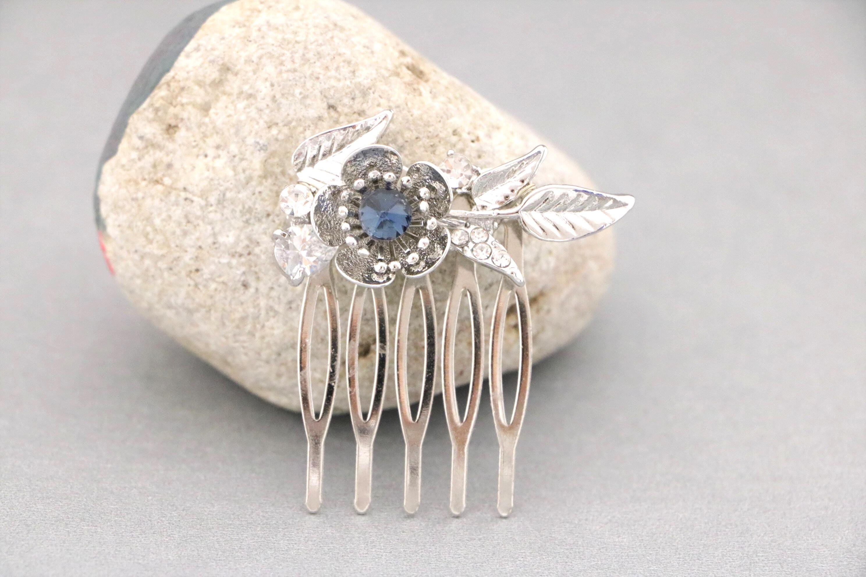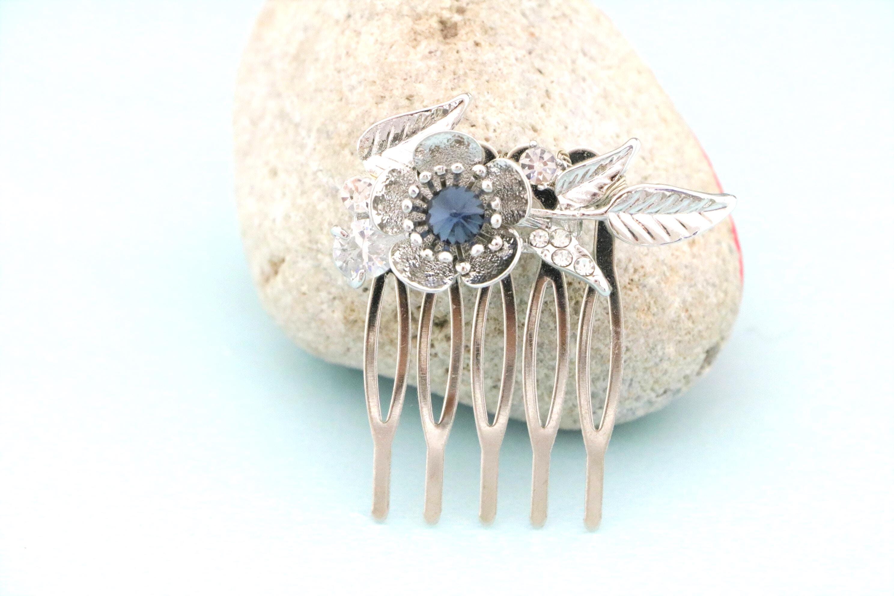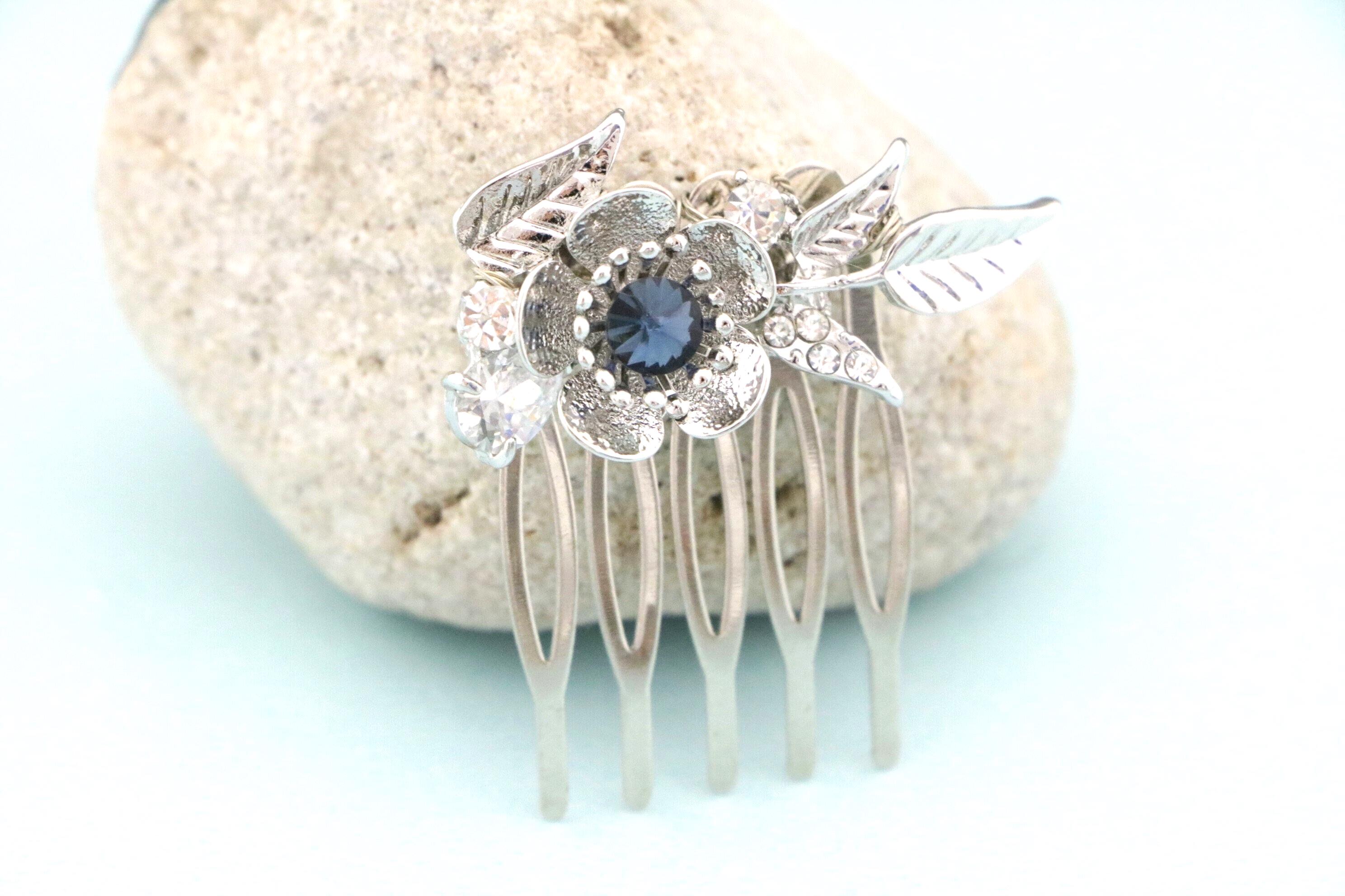 Bridal Hair Comb,Wedding Hair Accessory,Navy blue Hair Comb,Wedding headpiece,Crystal hair comb,Rhinestone head piece