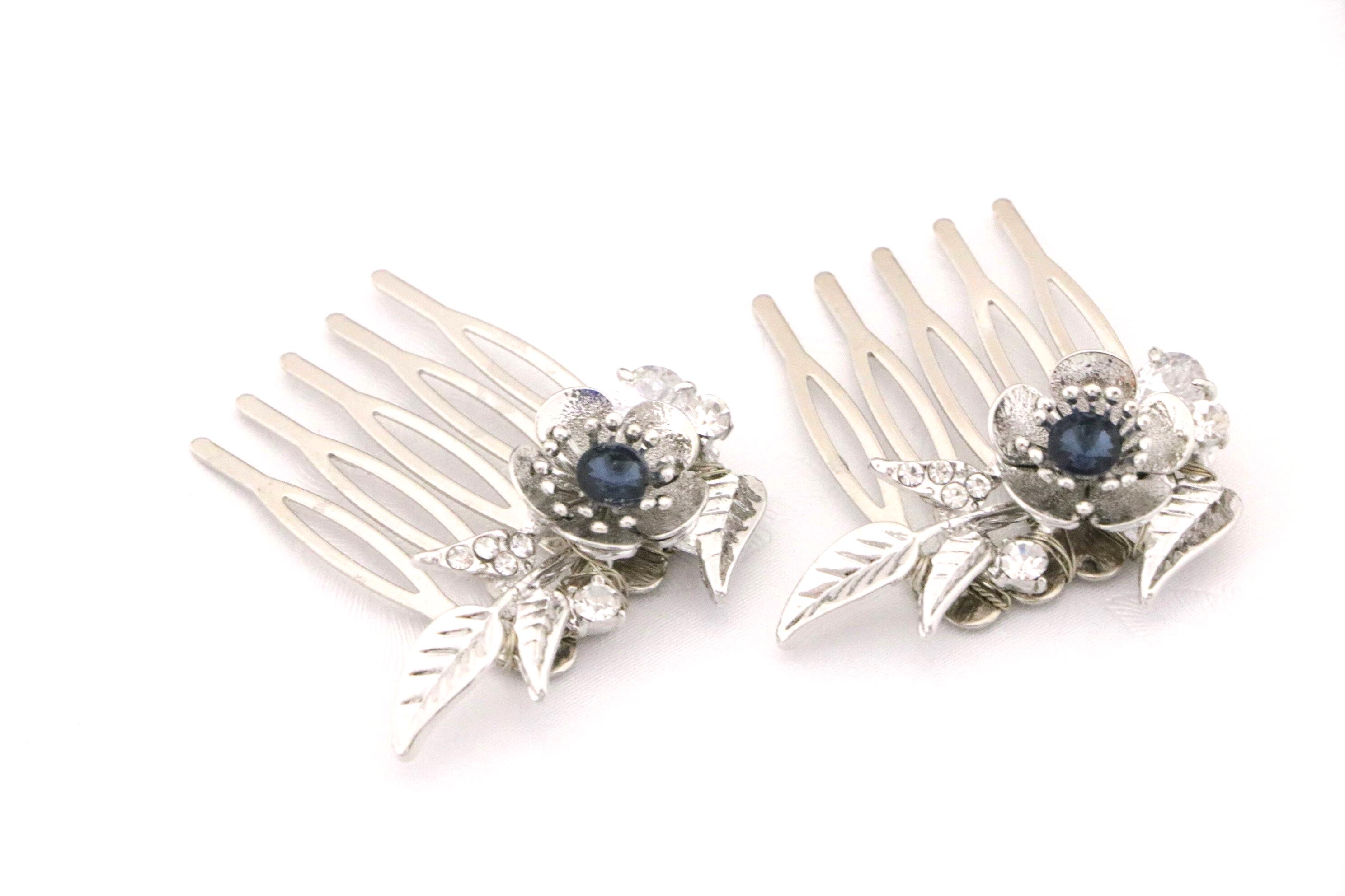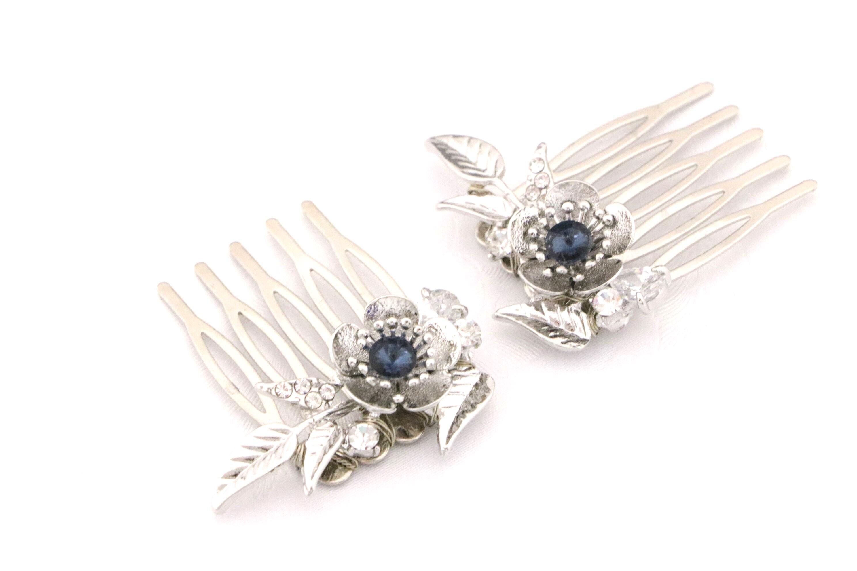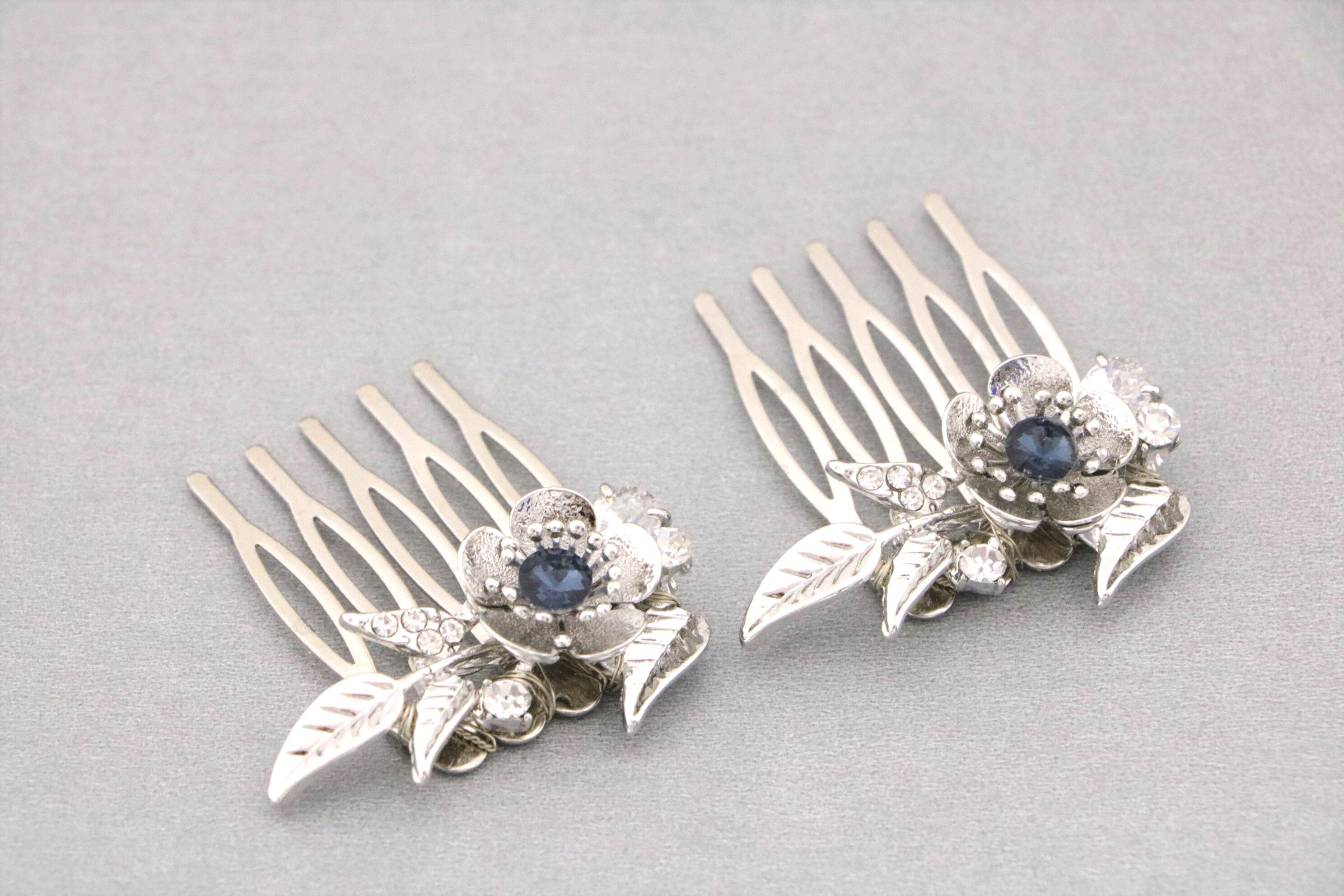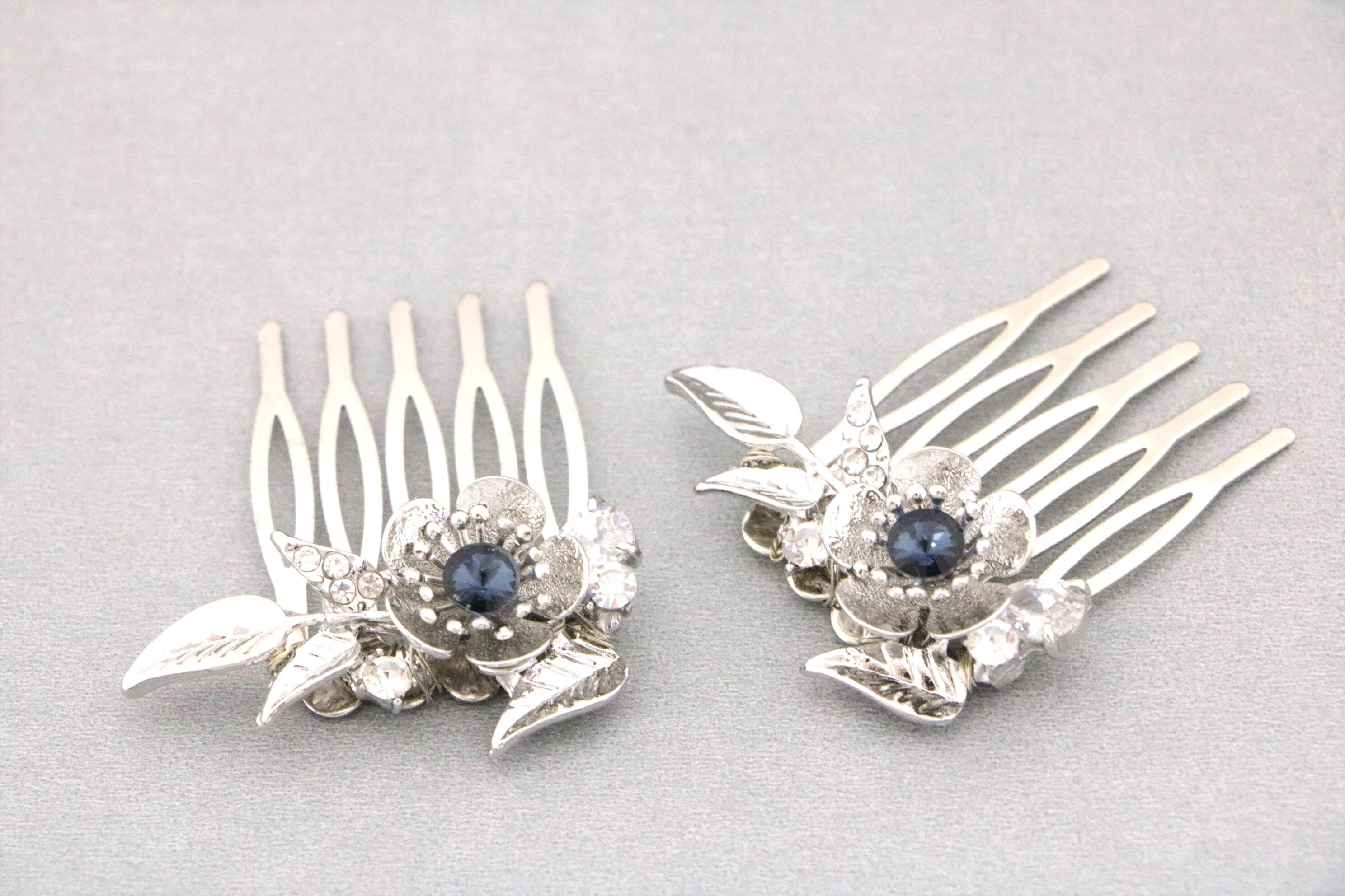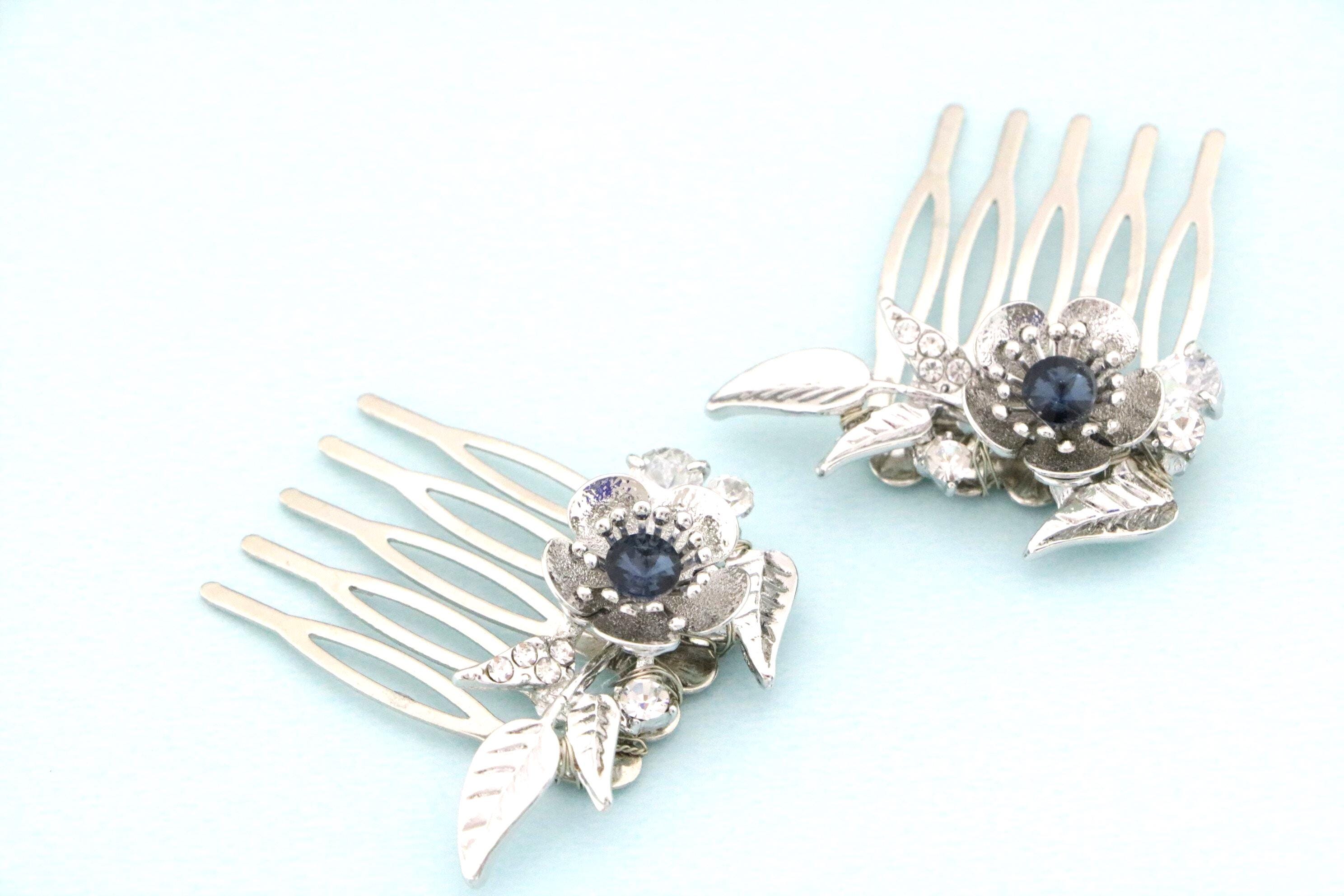Bridal Hair Comb,Wedding Hair Accessory,Navy blue Hair Comb,Wedding headpiece,Crystal hair comb,Rhinestone head piece