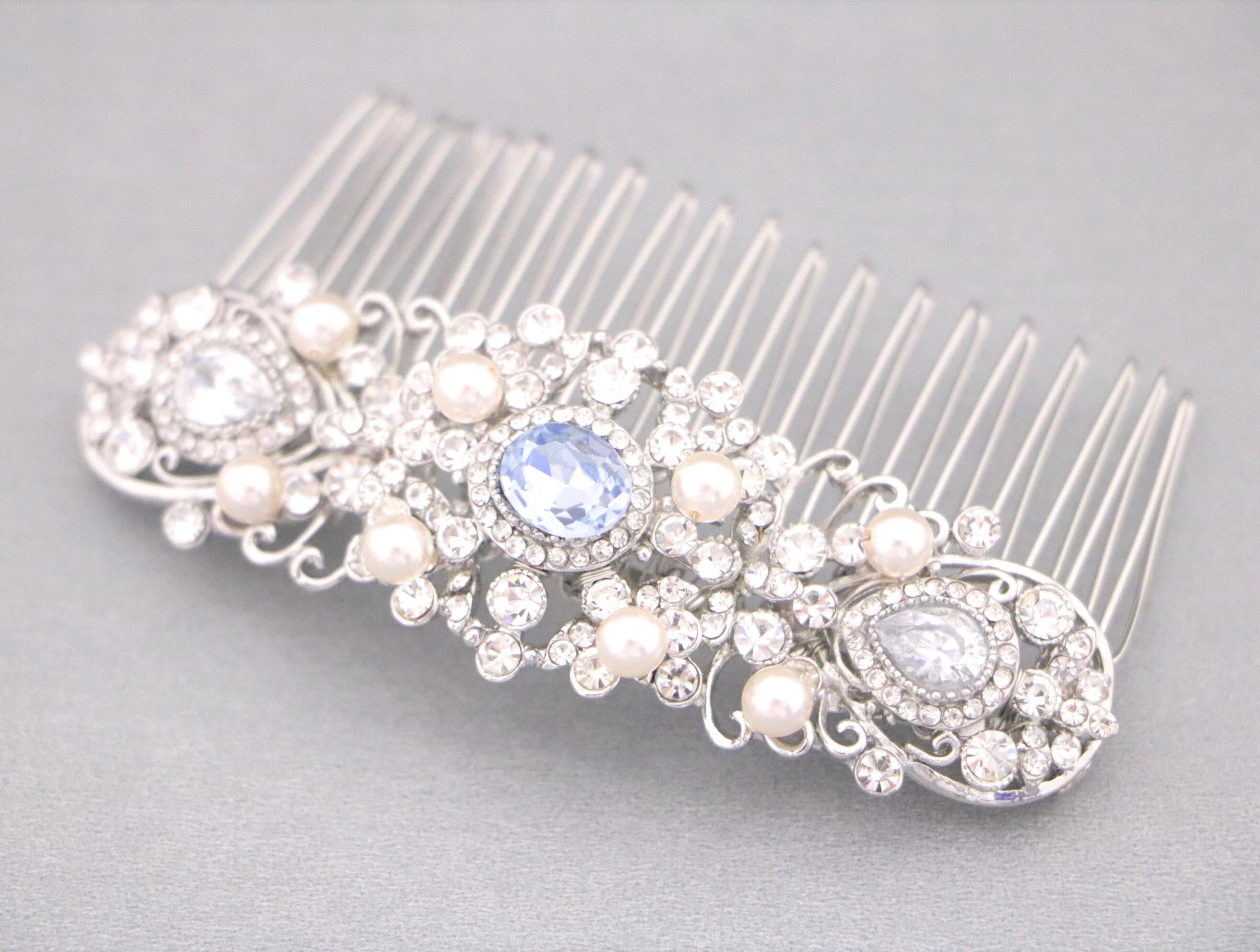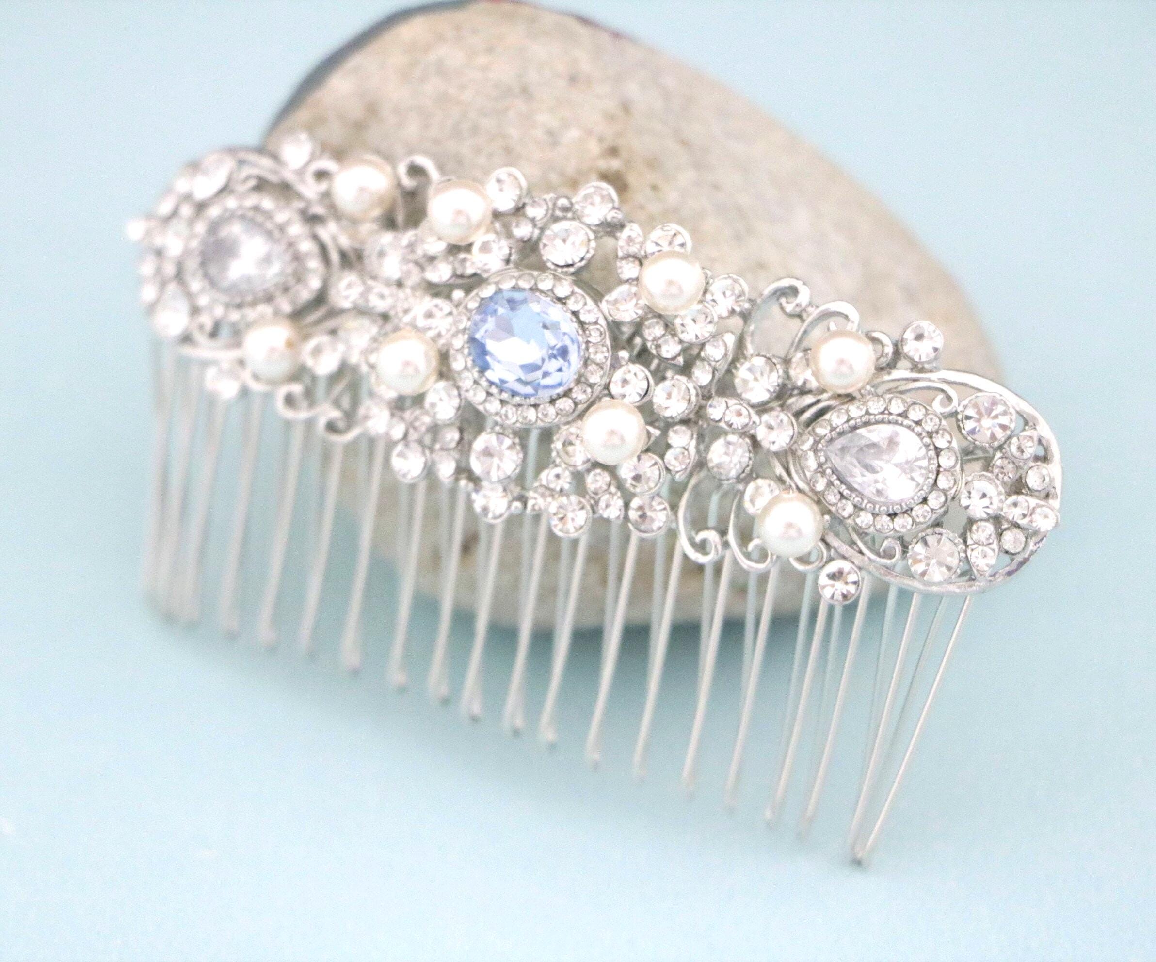 This sparkle rhinestone hair comb features a very beautiful vintage style Rhinestone piece and set it on a metal hair comb. The rhinestone part measures approximately 3.75 X 1.25 inches.