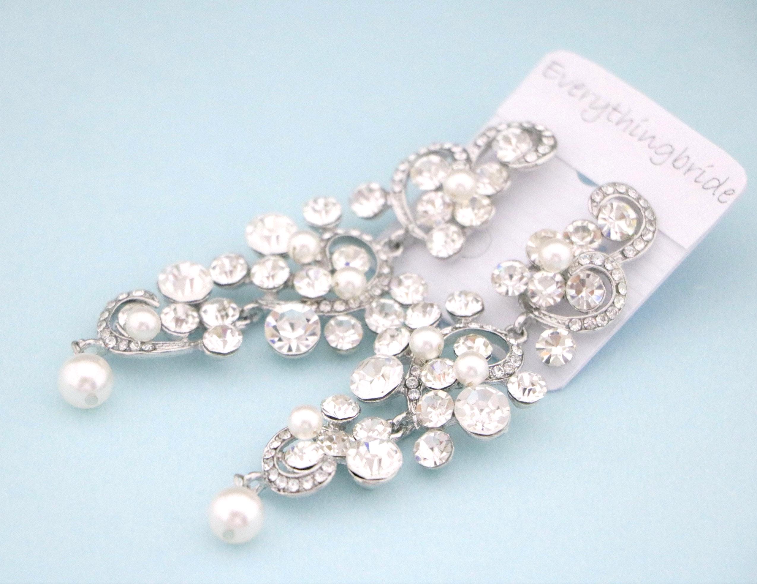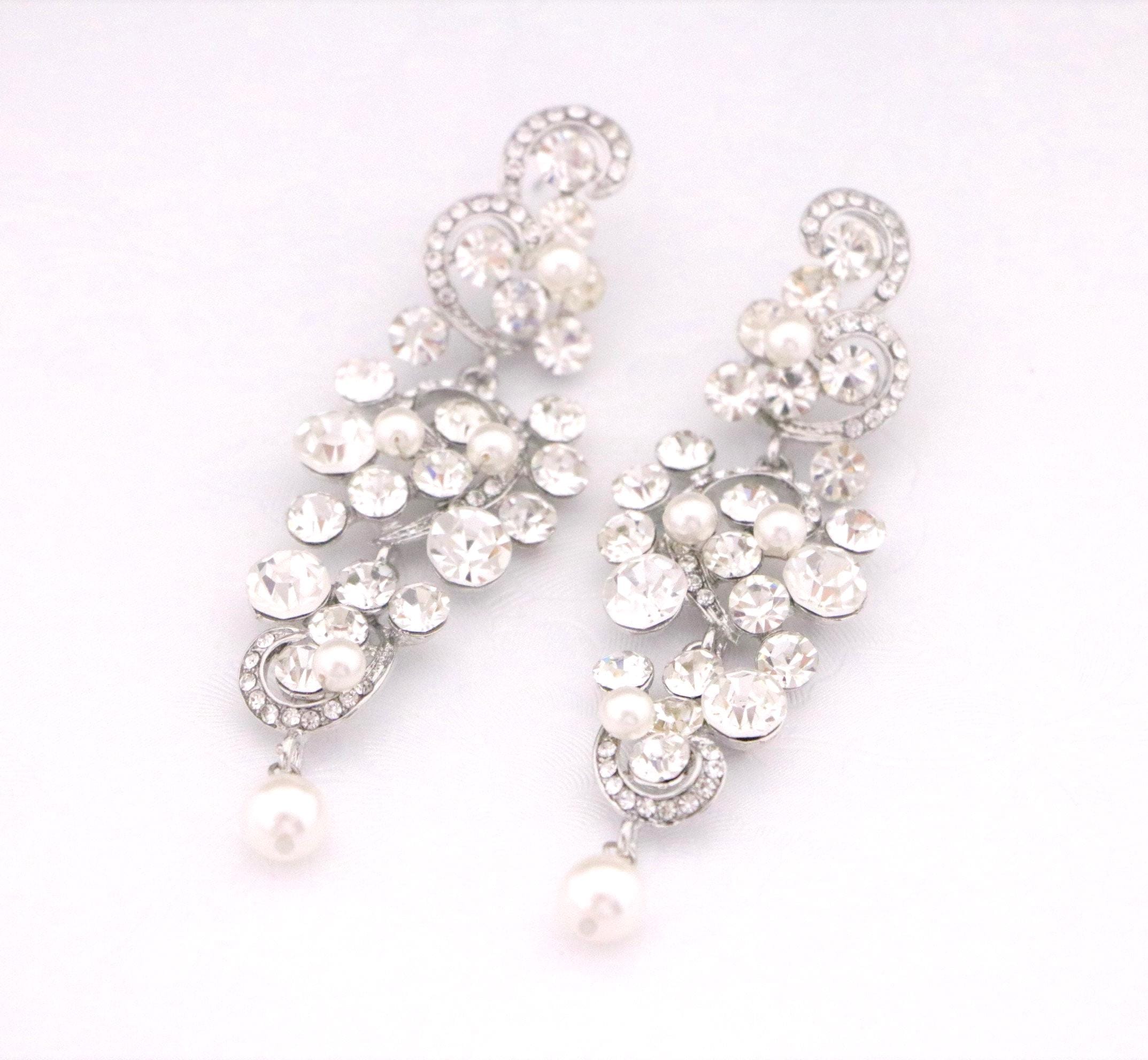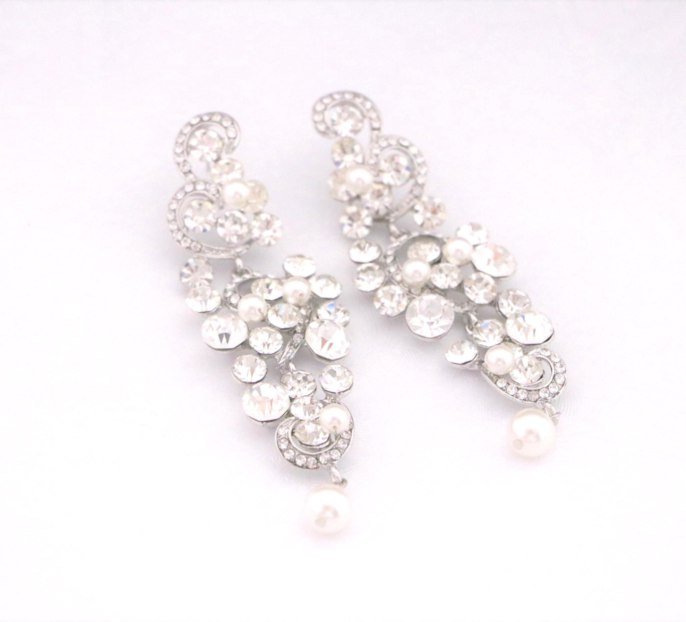 This vintage inspired stunning Pearl and Rhinestone earring is beautiful addition to your wedding day.