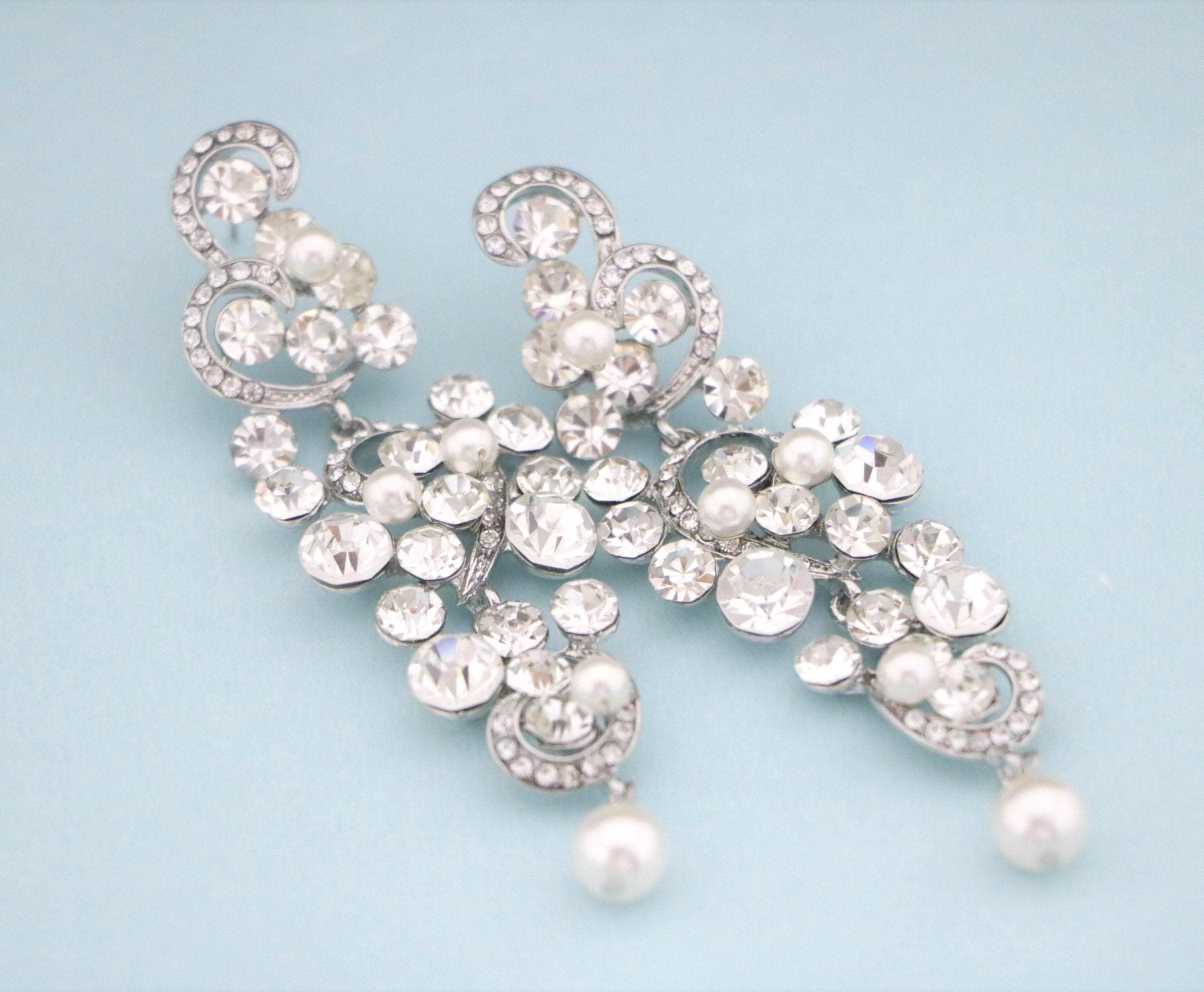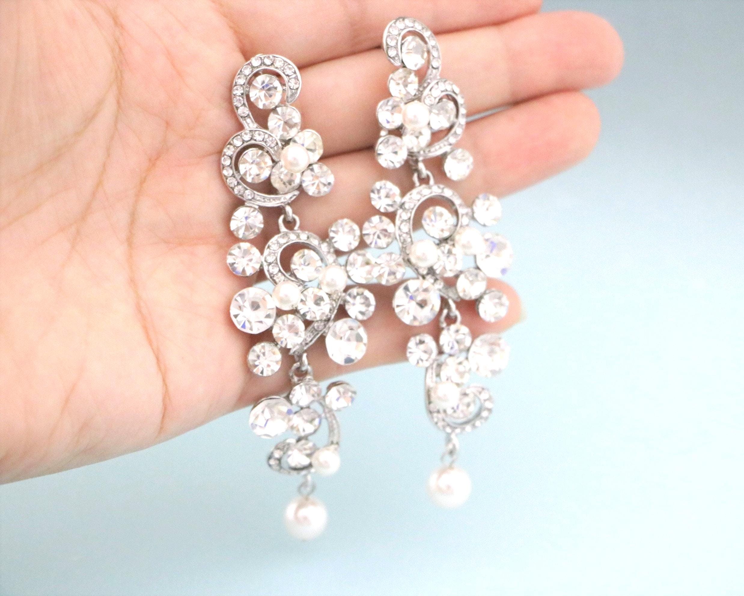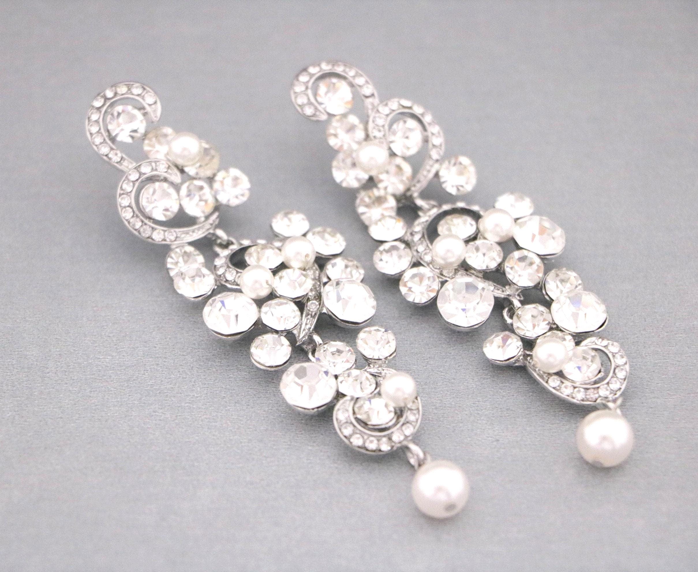 This vintage inspired stunning Pearl and Rhinestone earring is beautiful addition to your wedding day.