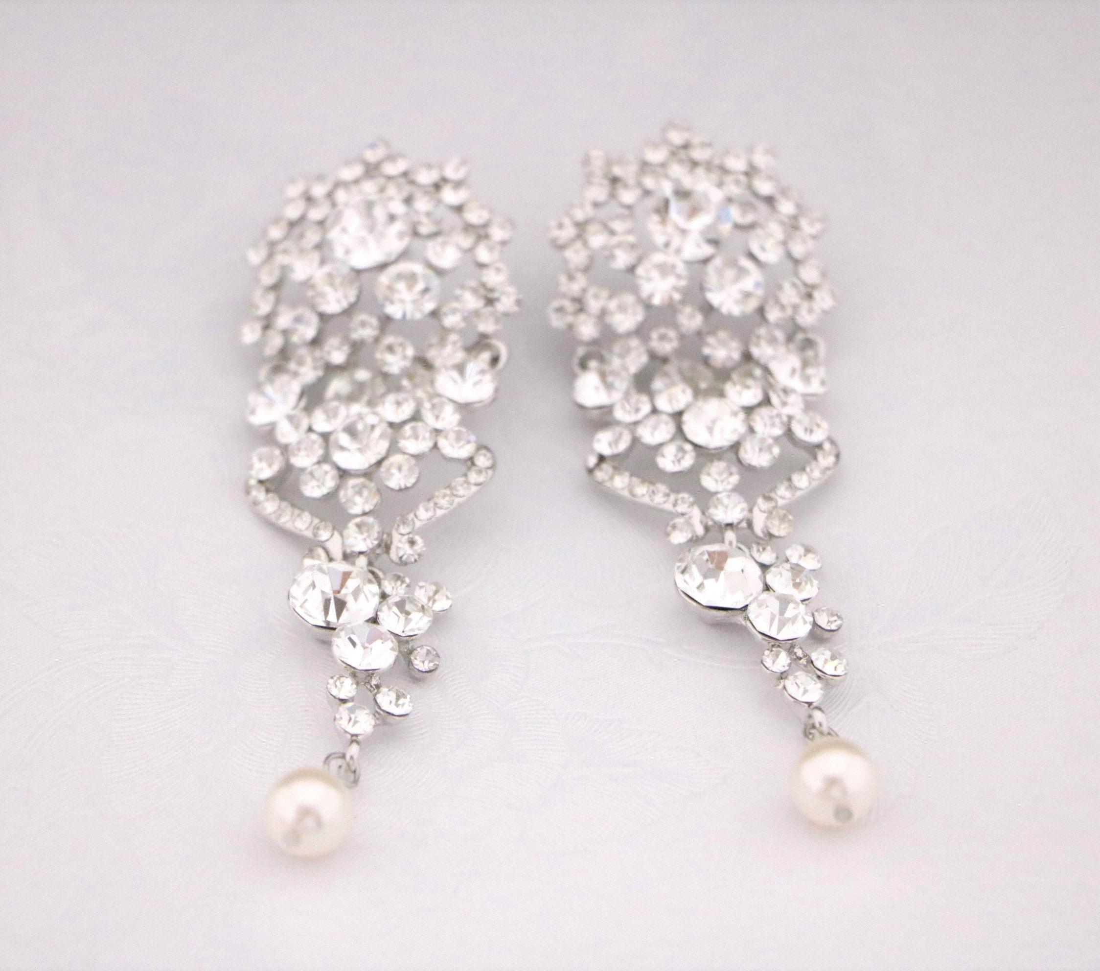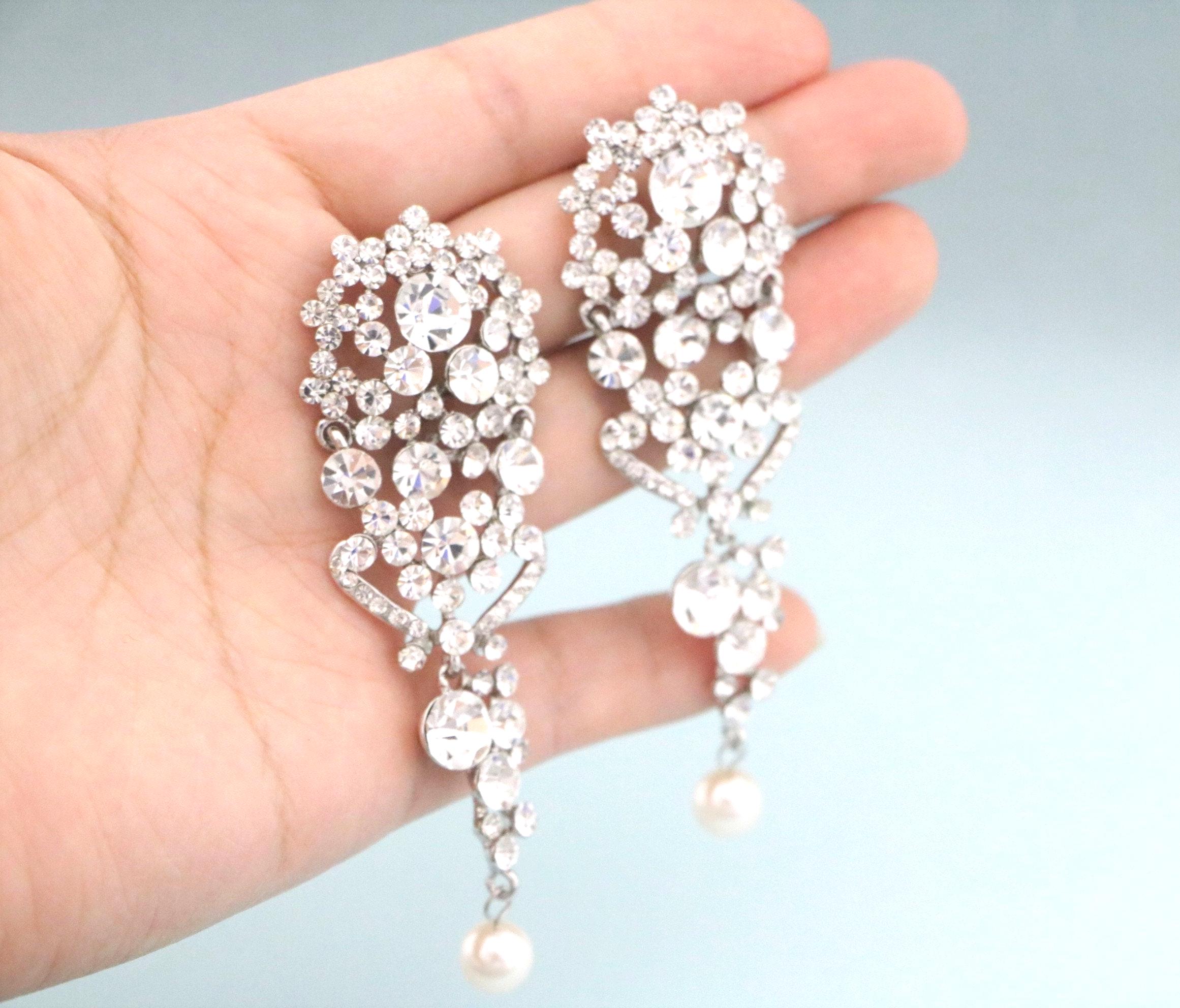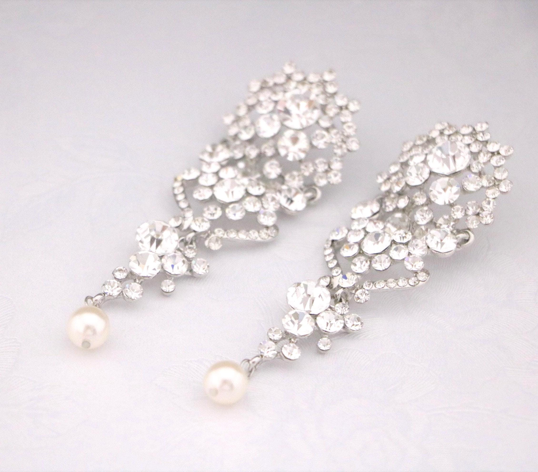 This vintage inspired stunning Pearl and Rhinestone earring is beautiful addition to your wedding day.