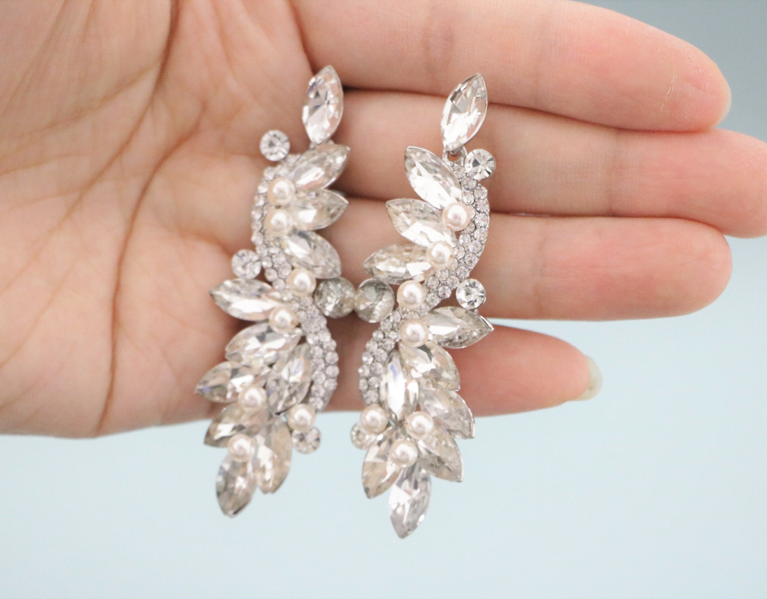 This vintage inspired stunning Pearl and Rhinestone earring is beautiful addition to your wedding day.