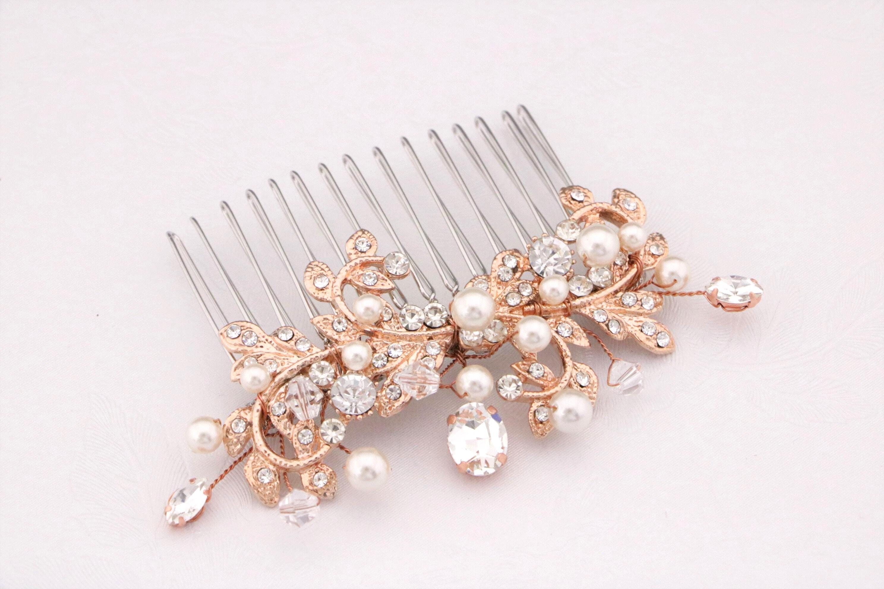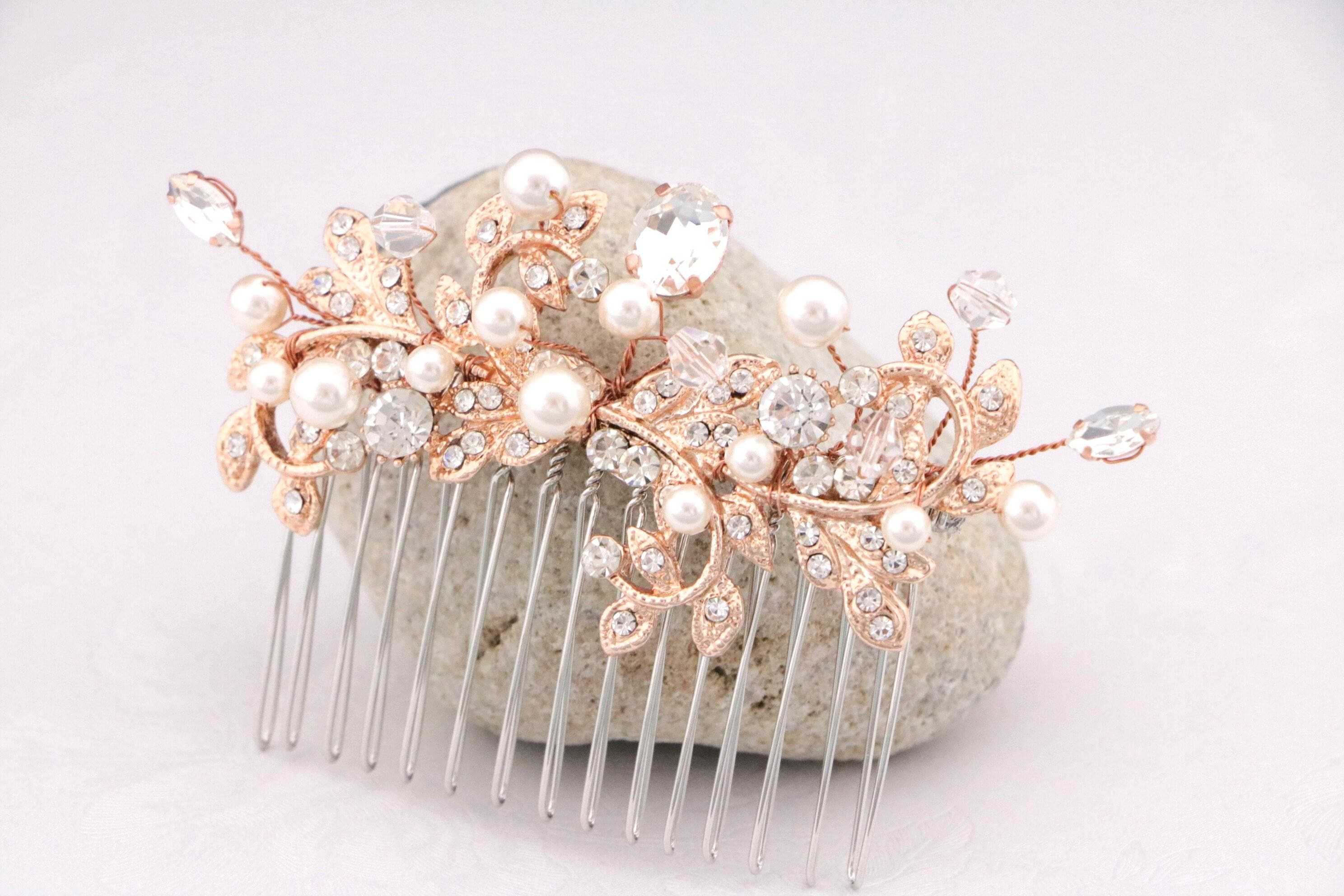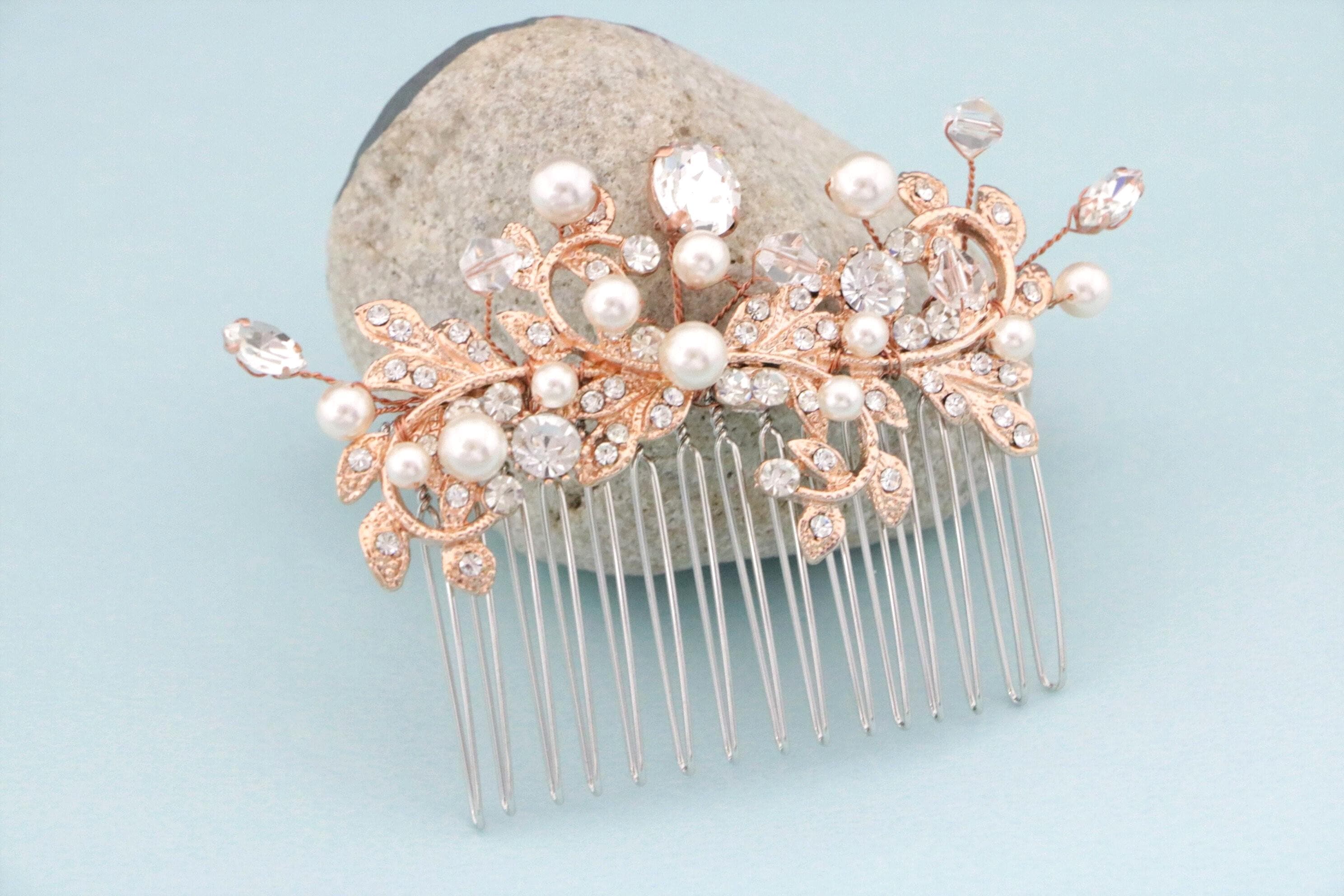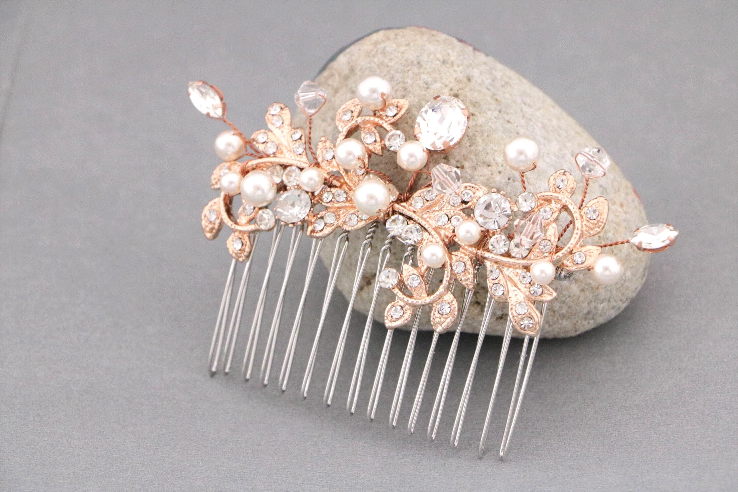 Rose Gold Wedding Hair Comb, Hair Piece for Wedding, Bride Hair Comb, Rose Gold Hair Comb for Bride, Bridal Large Hair Comb, Wedding Hair