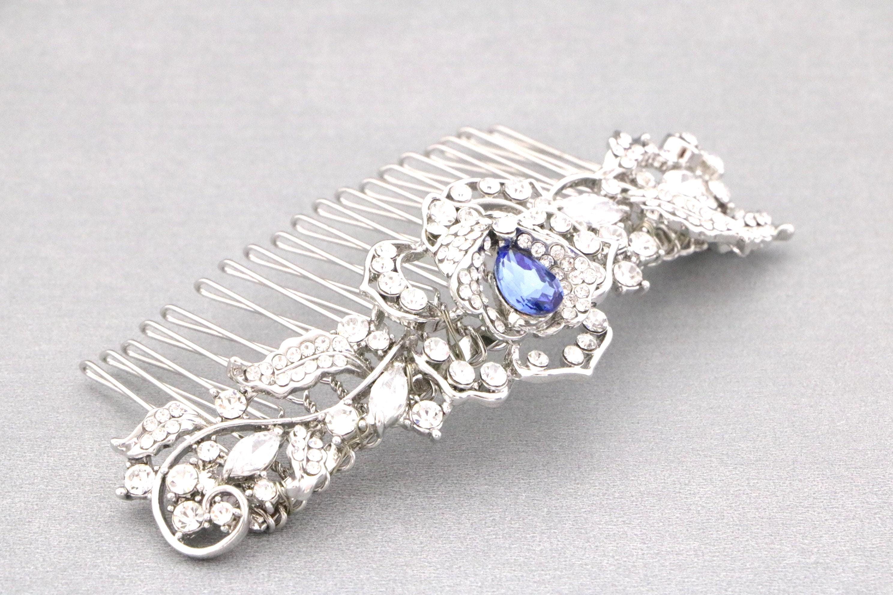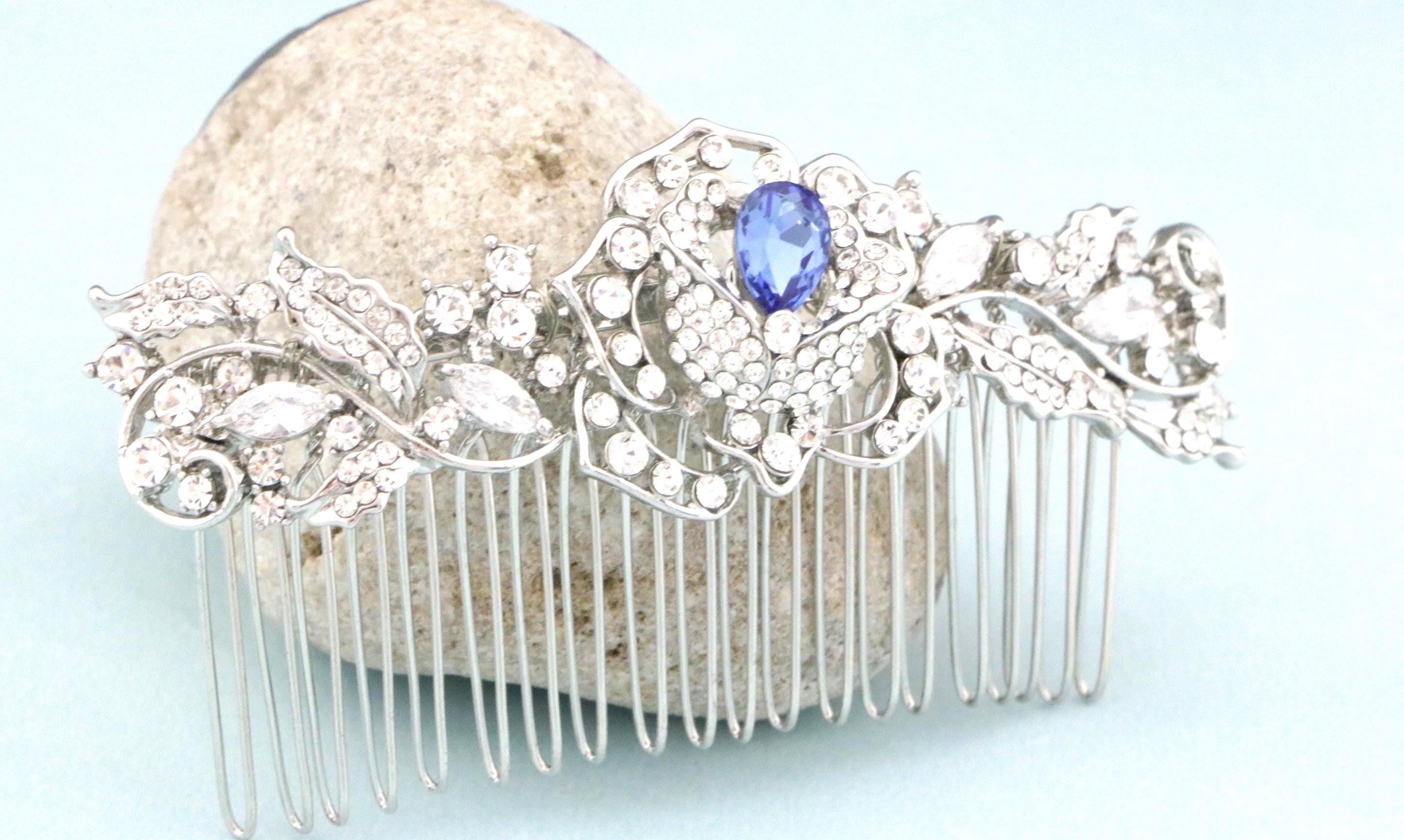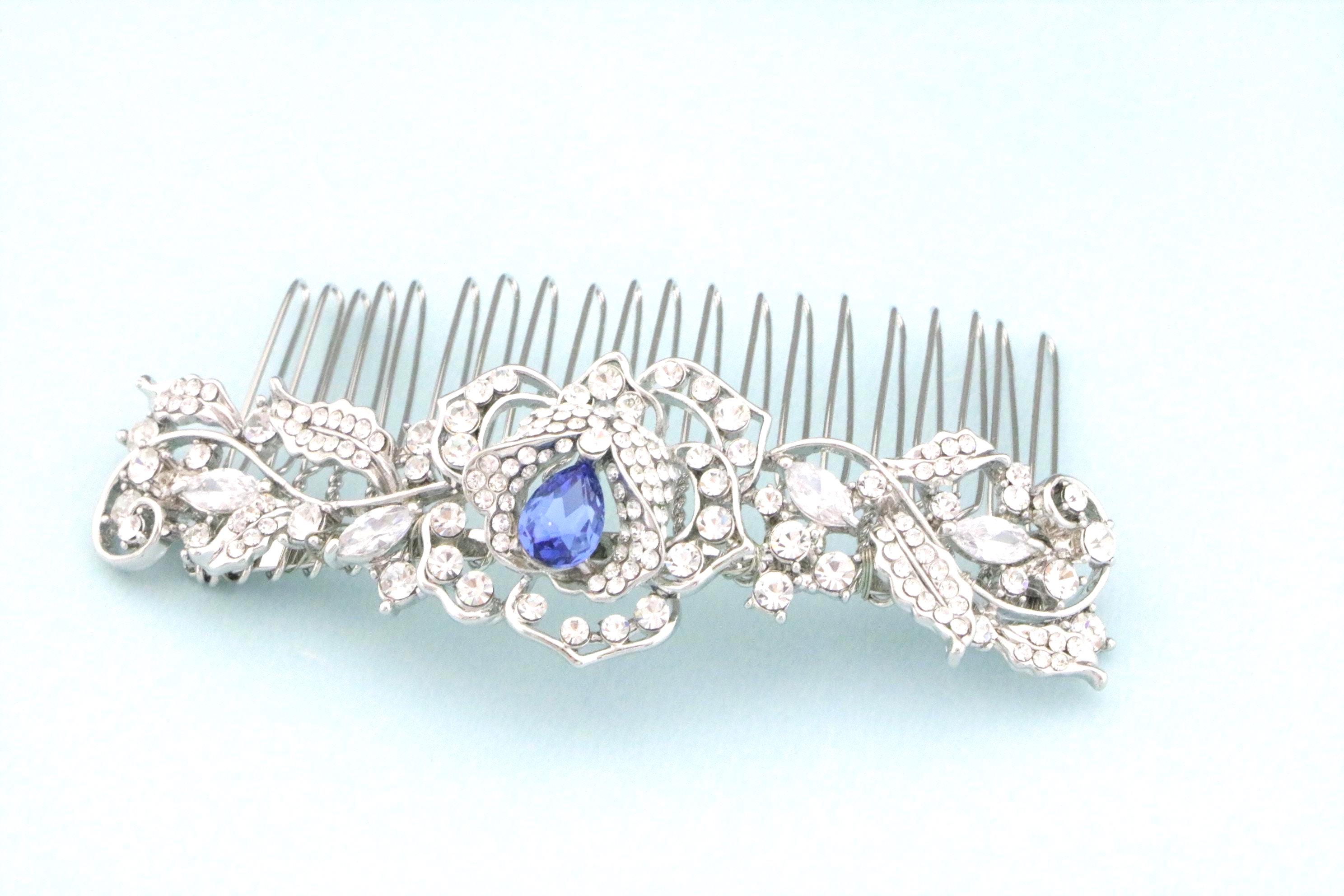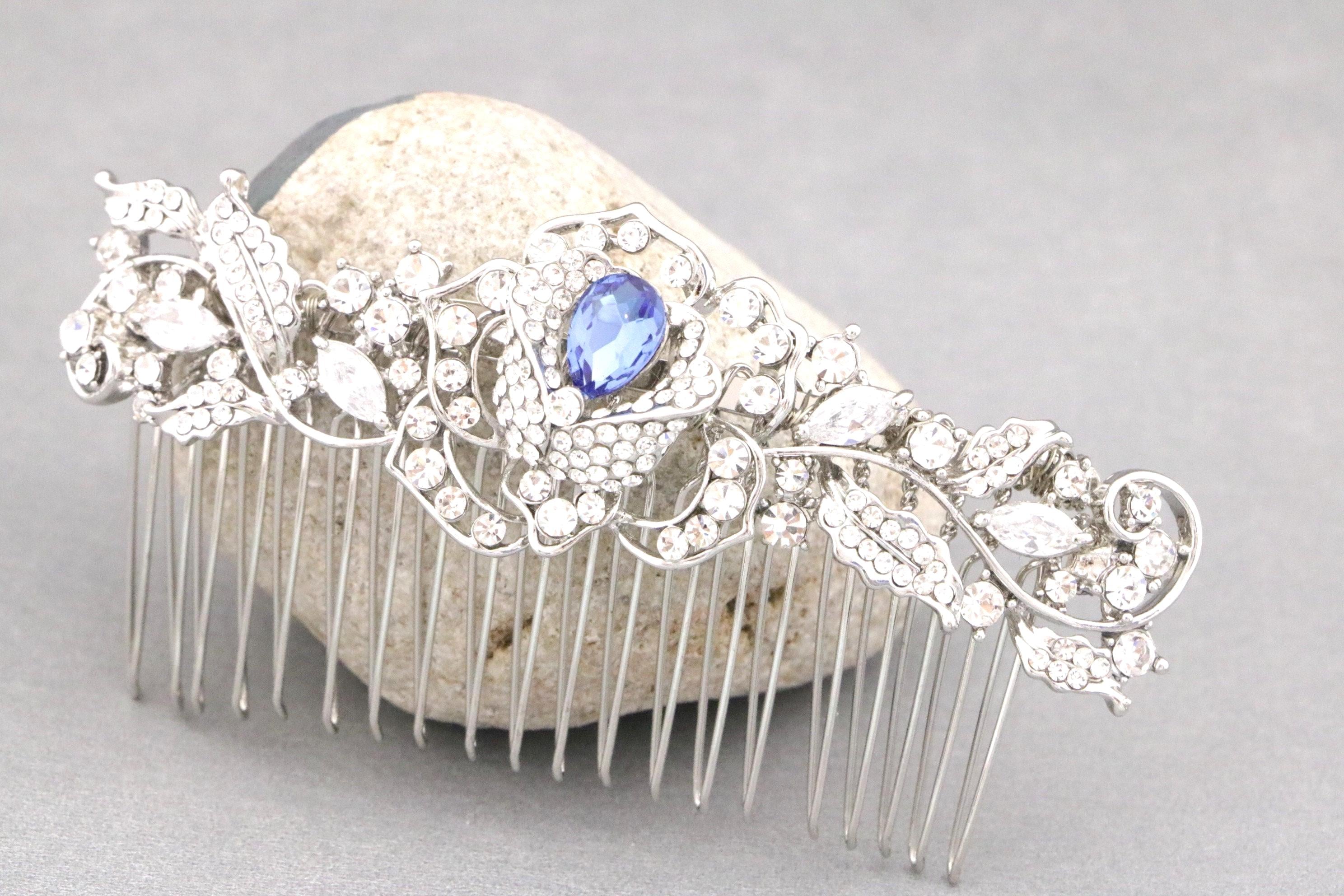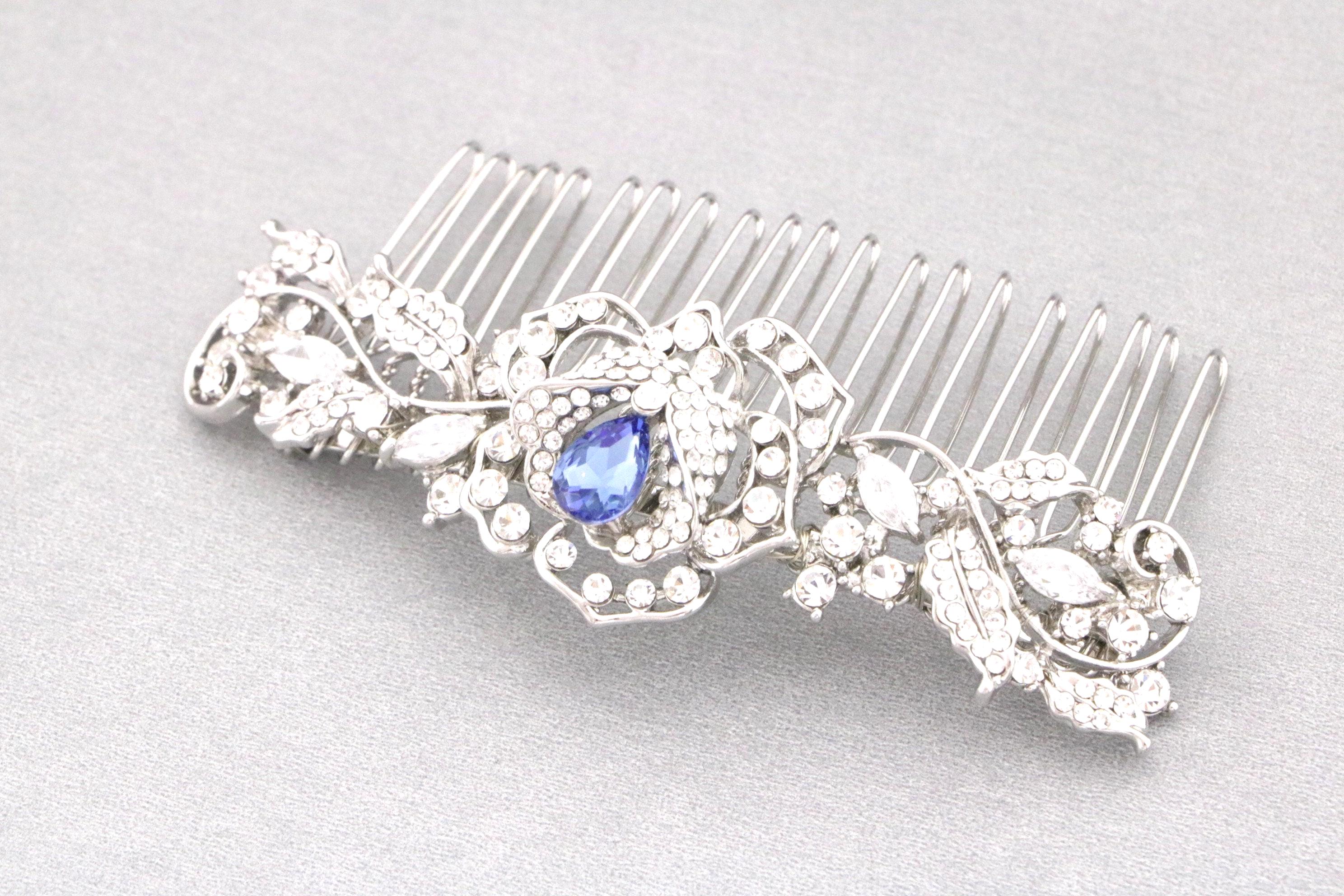 Bridal Hair Comb for a Bride, Something blue,Blue Sapphire Hair Comb, Hair Jewelry, Wedding accessories, Crystal hair piece