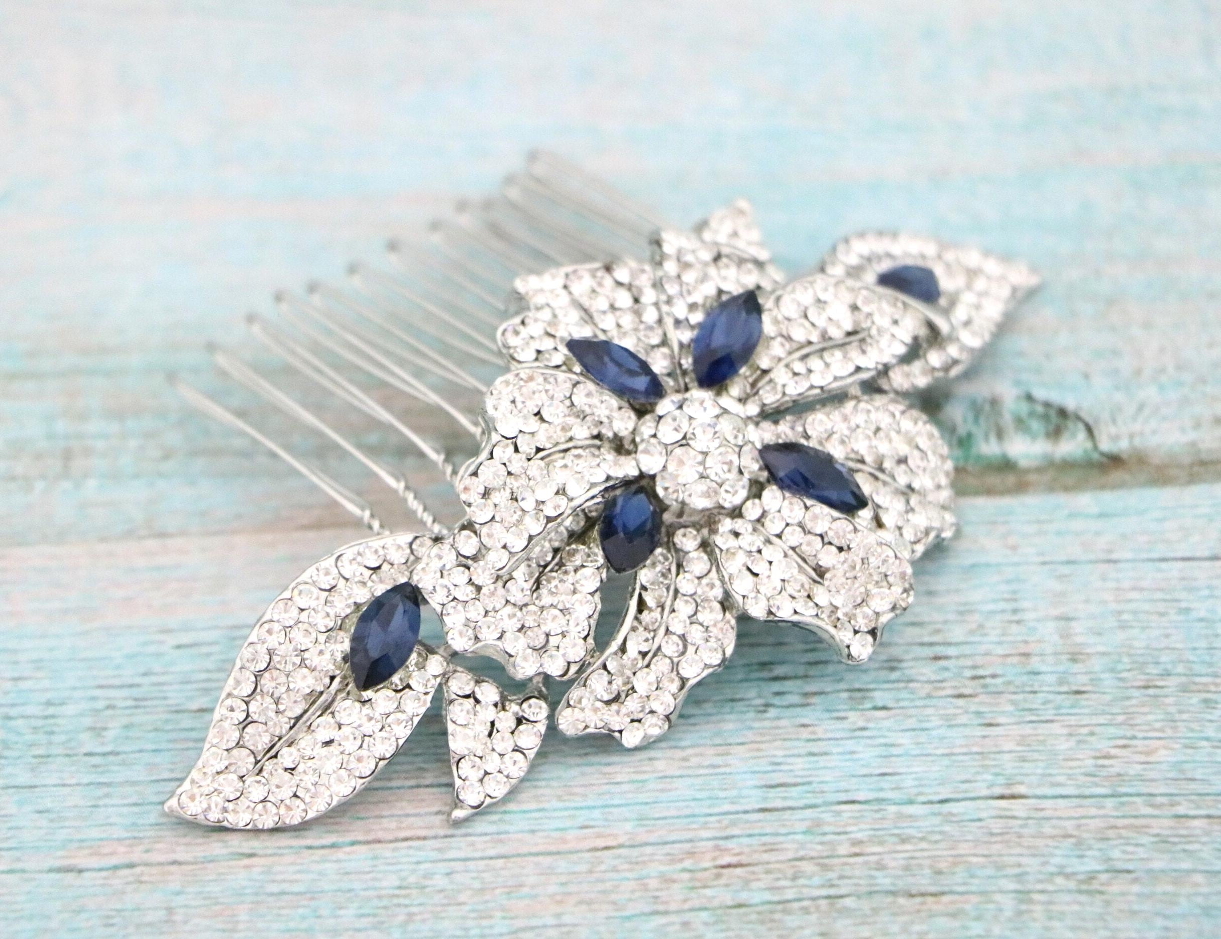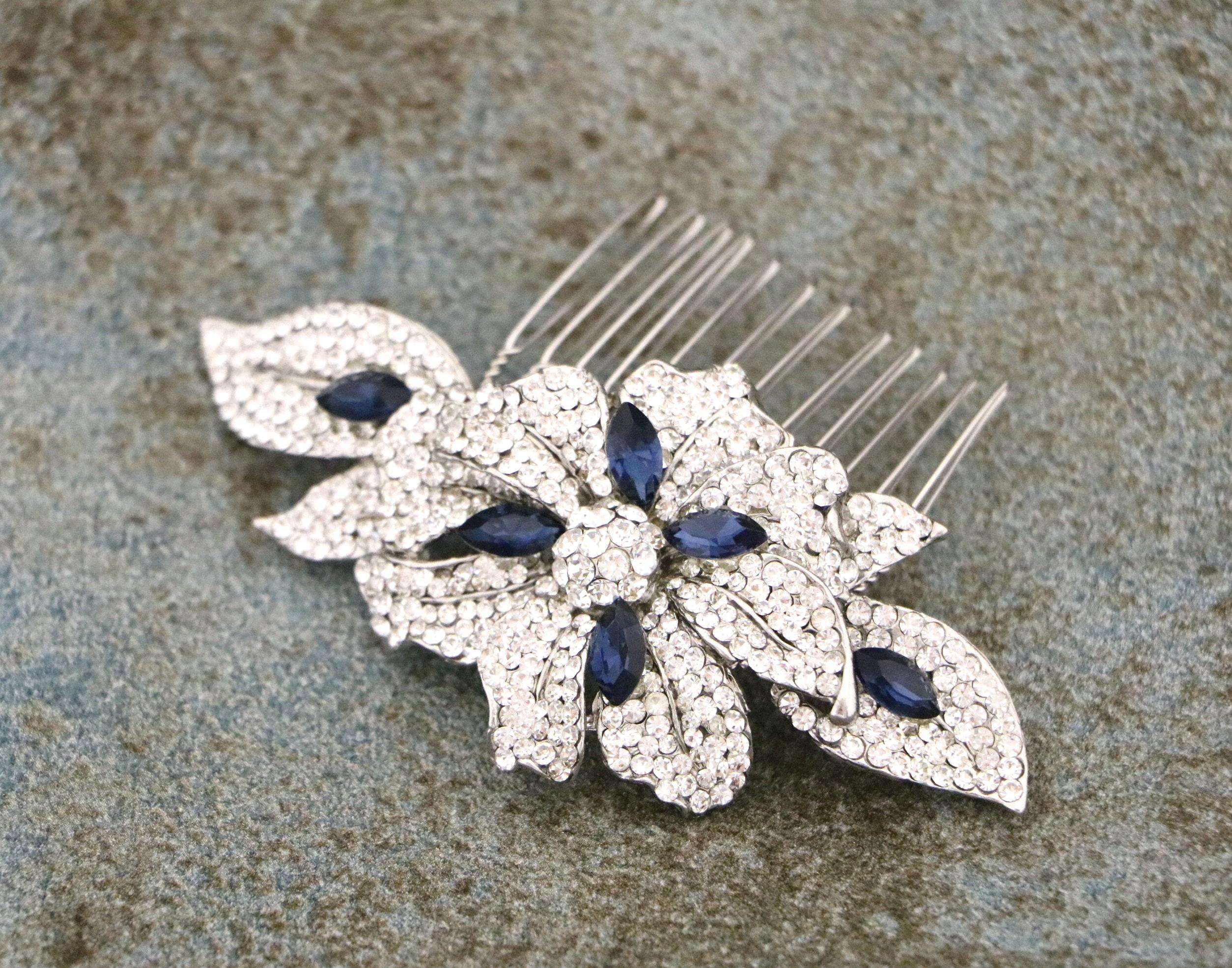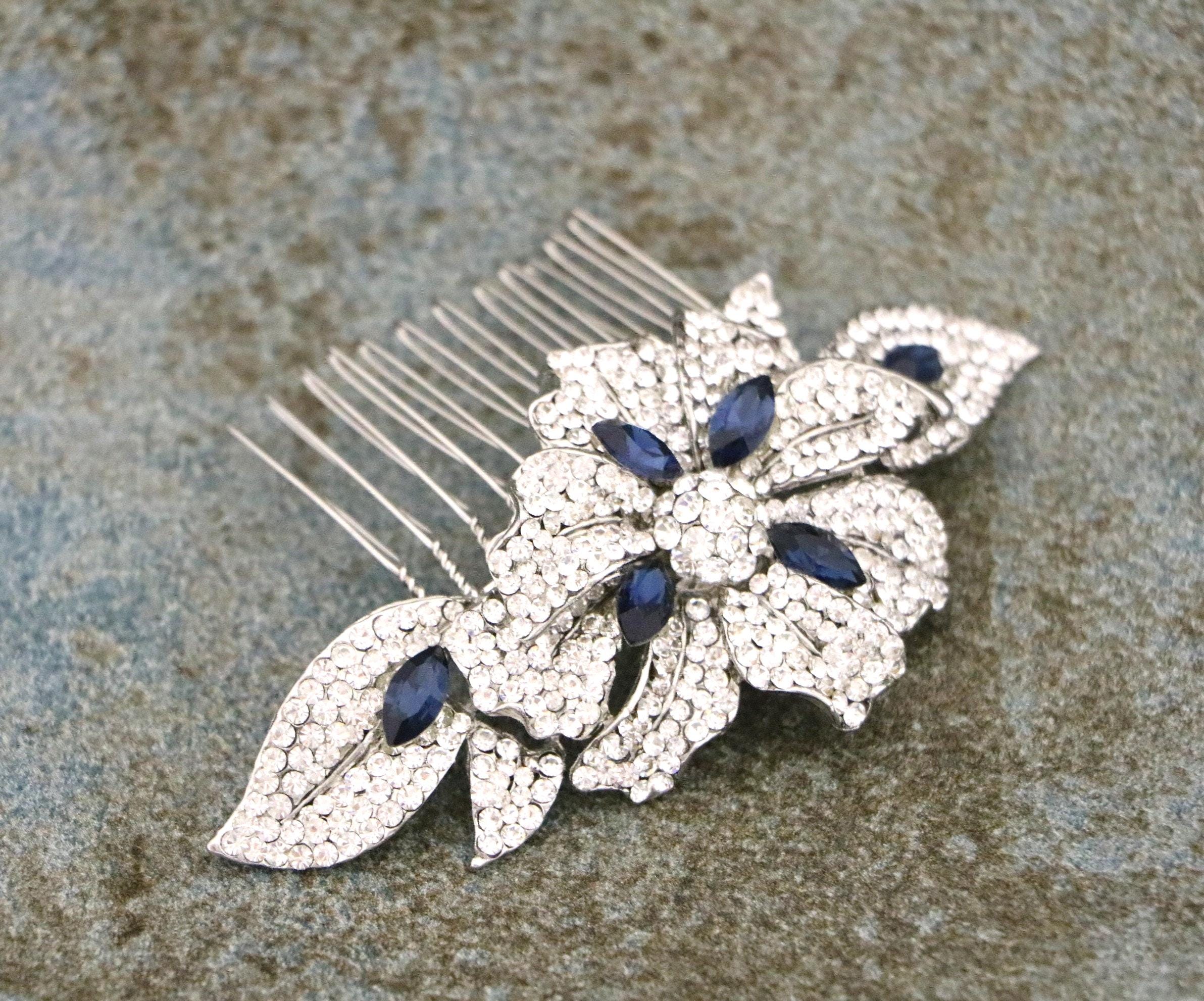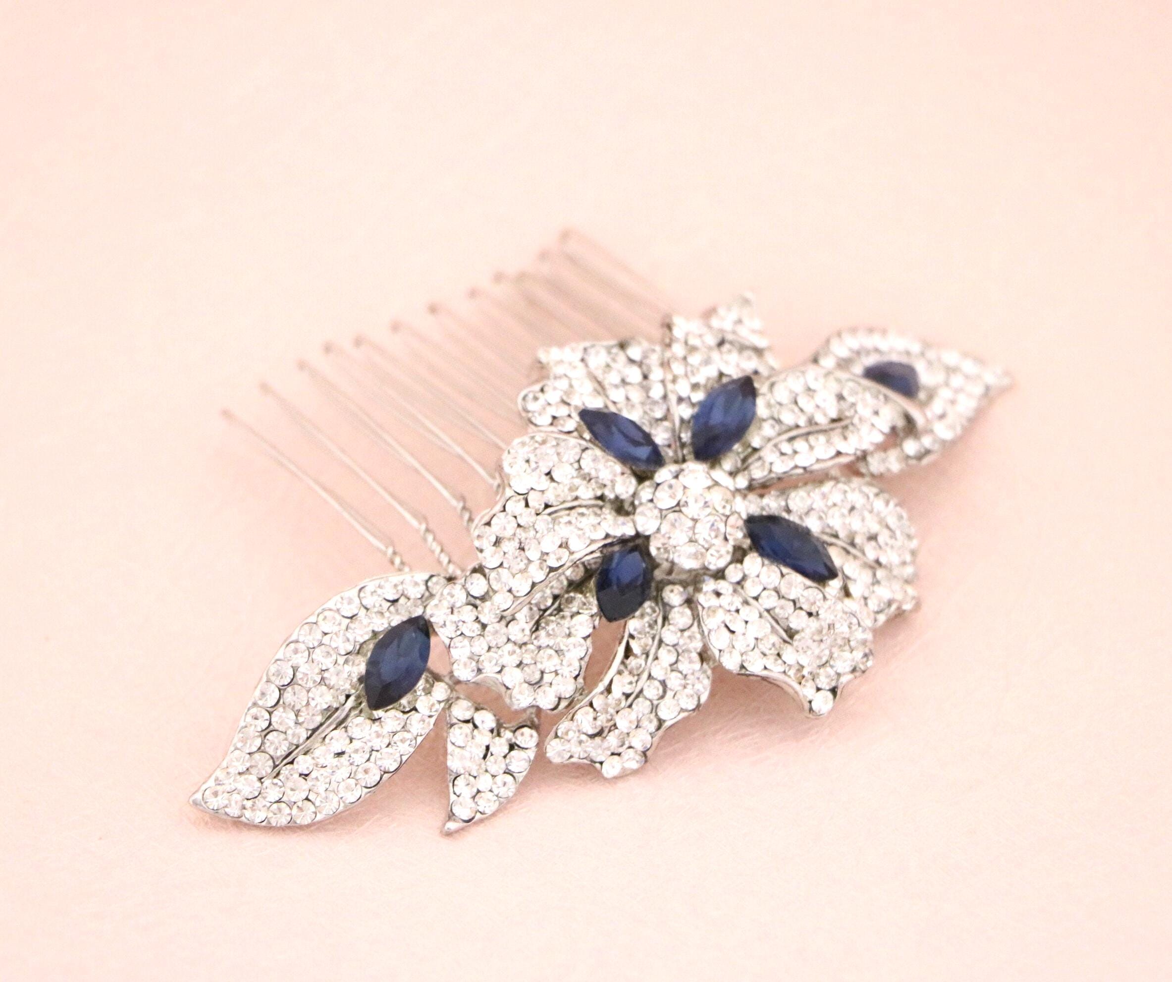 Blue bridal hair comb Something blue hair comb Sapphire blue Crystal hair comb Royal blue wedding Rhinestone hair comb Navy blue hair piece