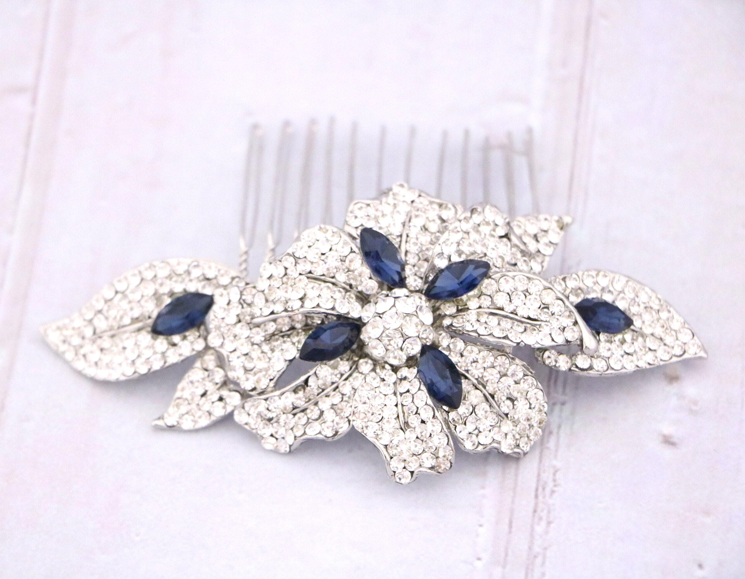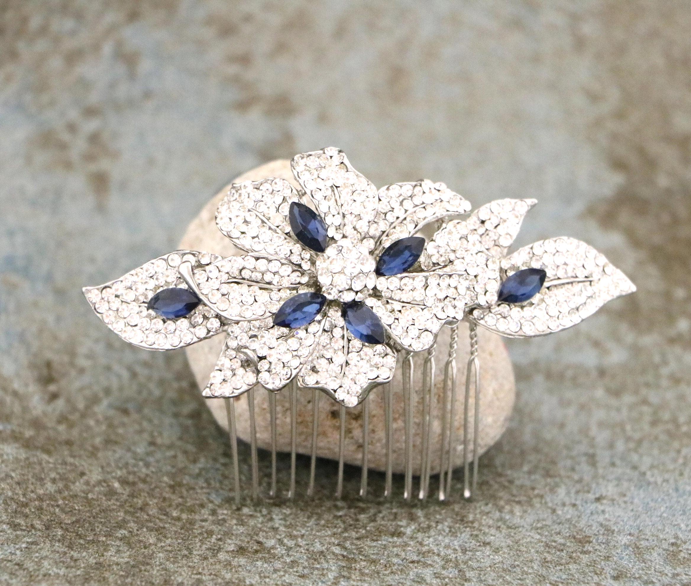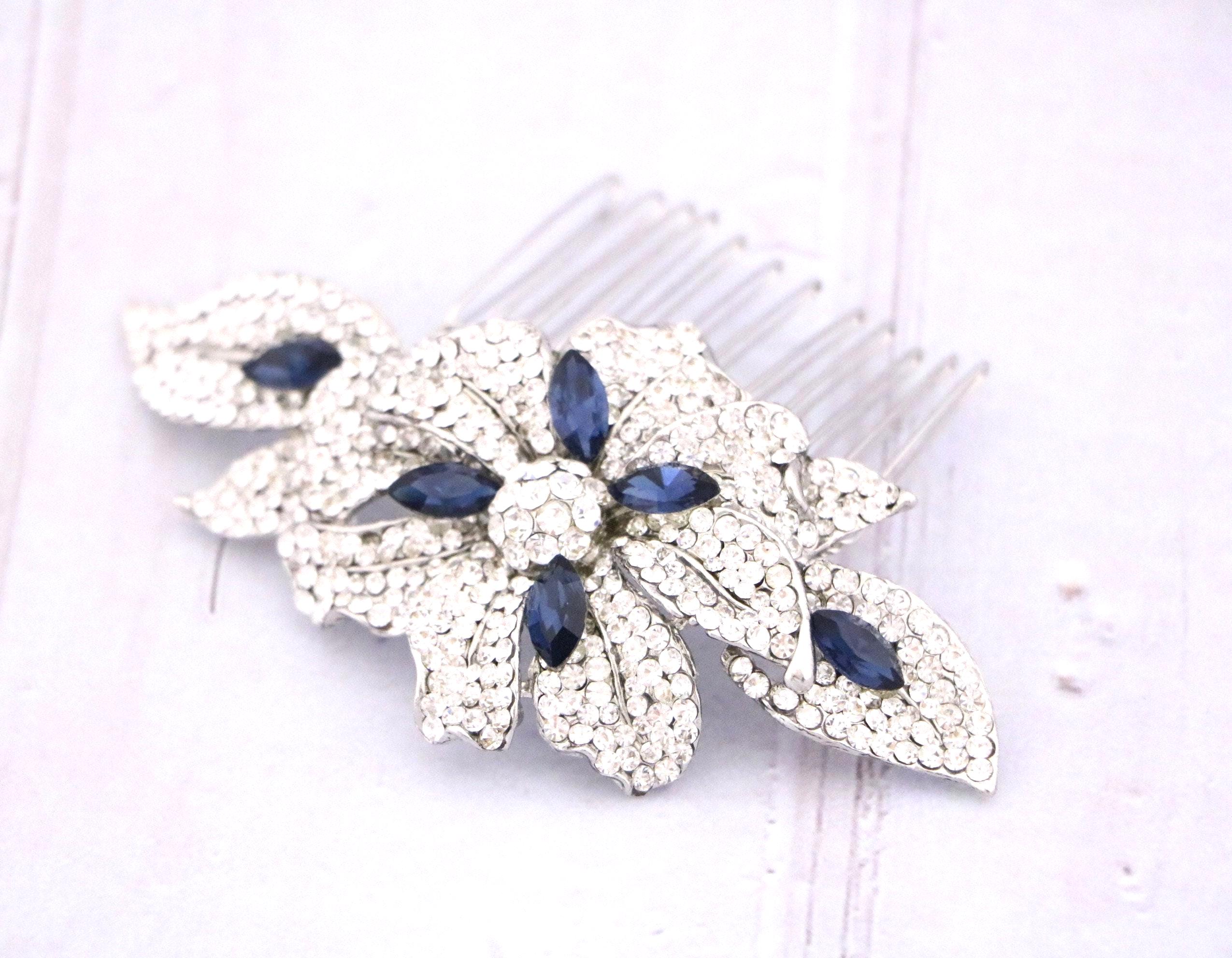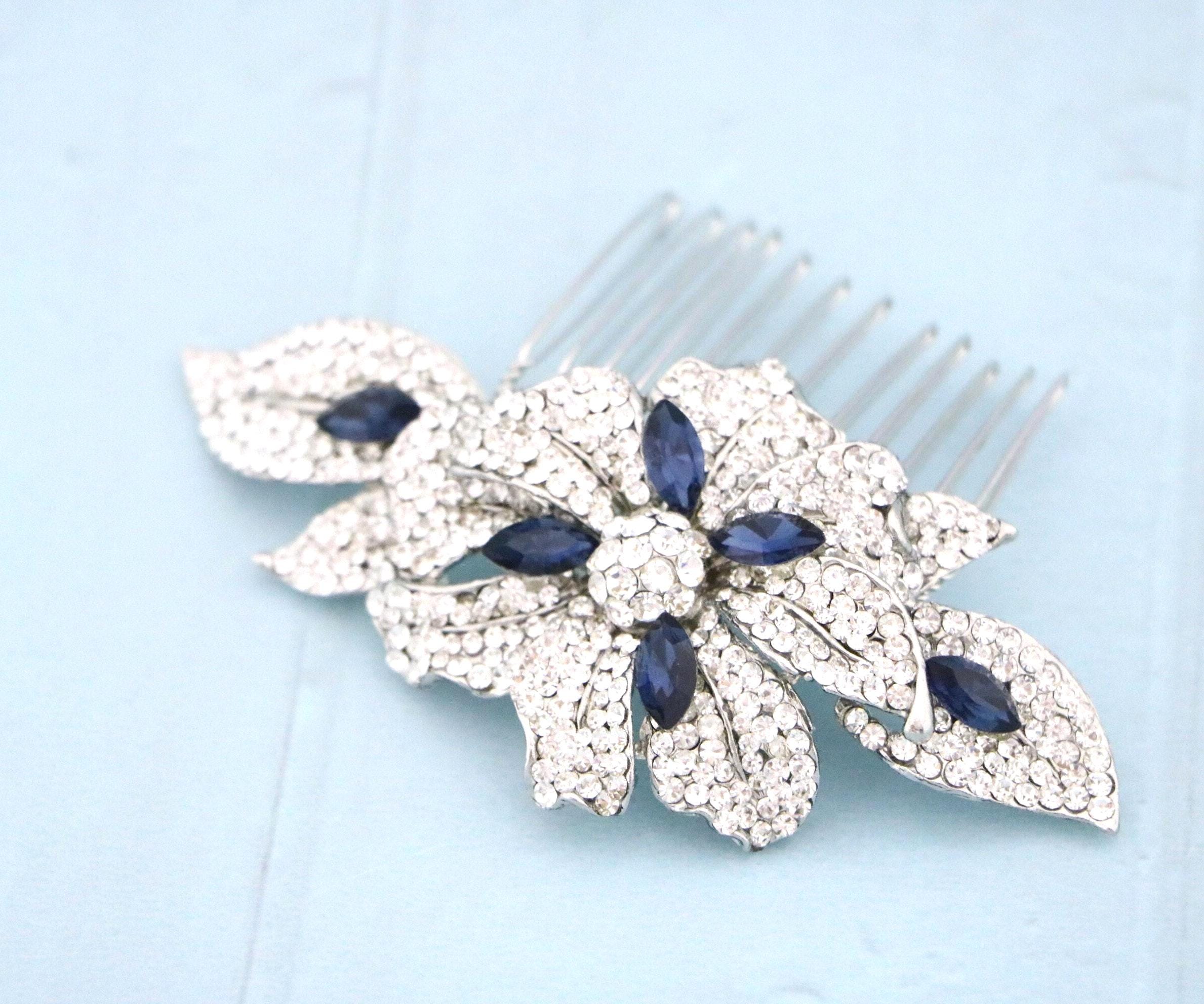 Blue bridal hair comb Something blue hair comb Sapphire blue Crystal hair comb Royal blue wedding Rhinestone hair comb Navy blue hair piece