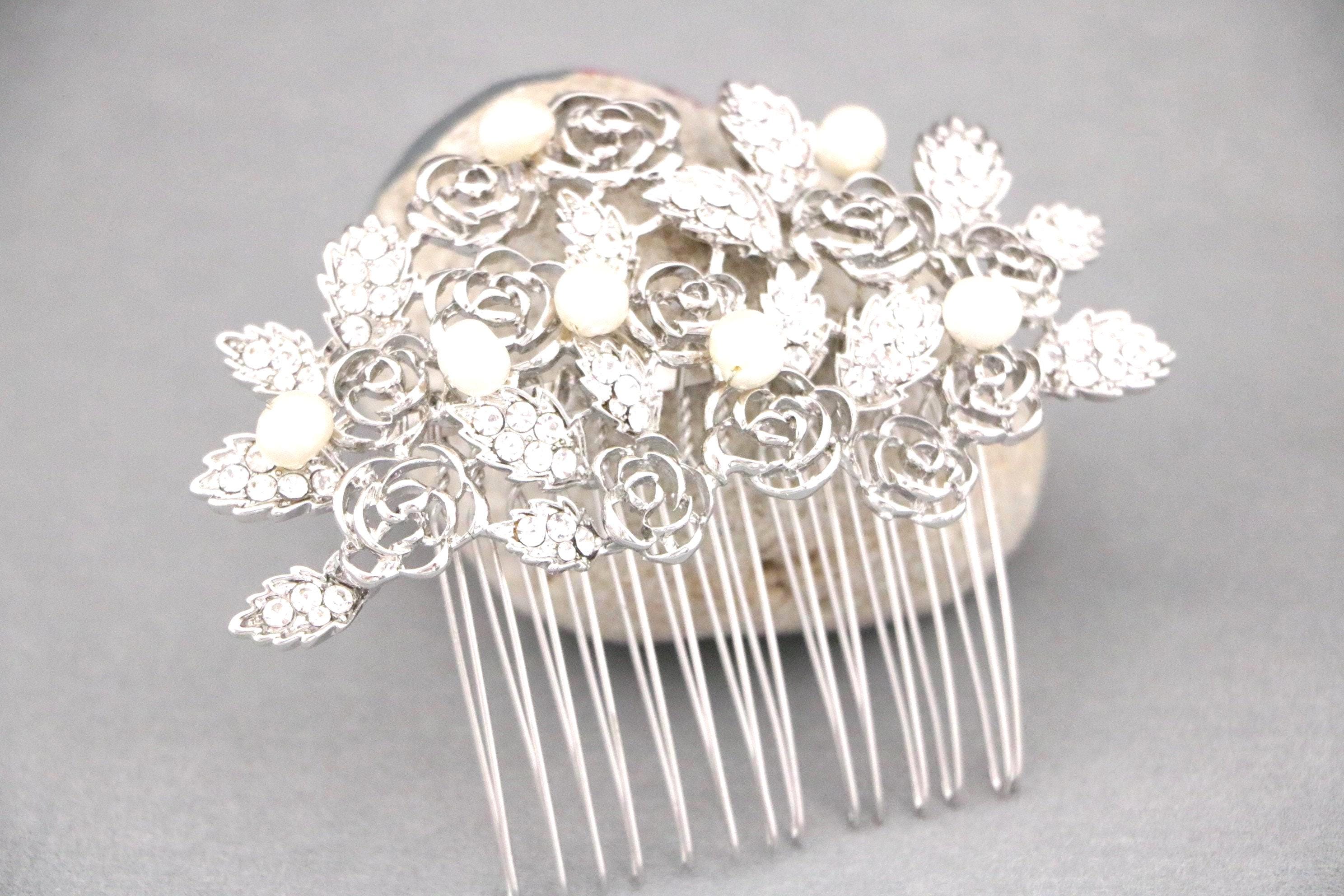 This sparkle rhinestone hair comb features a very beautiful vintage style Rhinestone piece and set it on a metal hair comb. The rhinestone part measures approximately 3.5 X 2 inches.