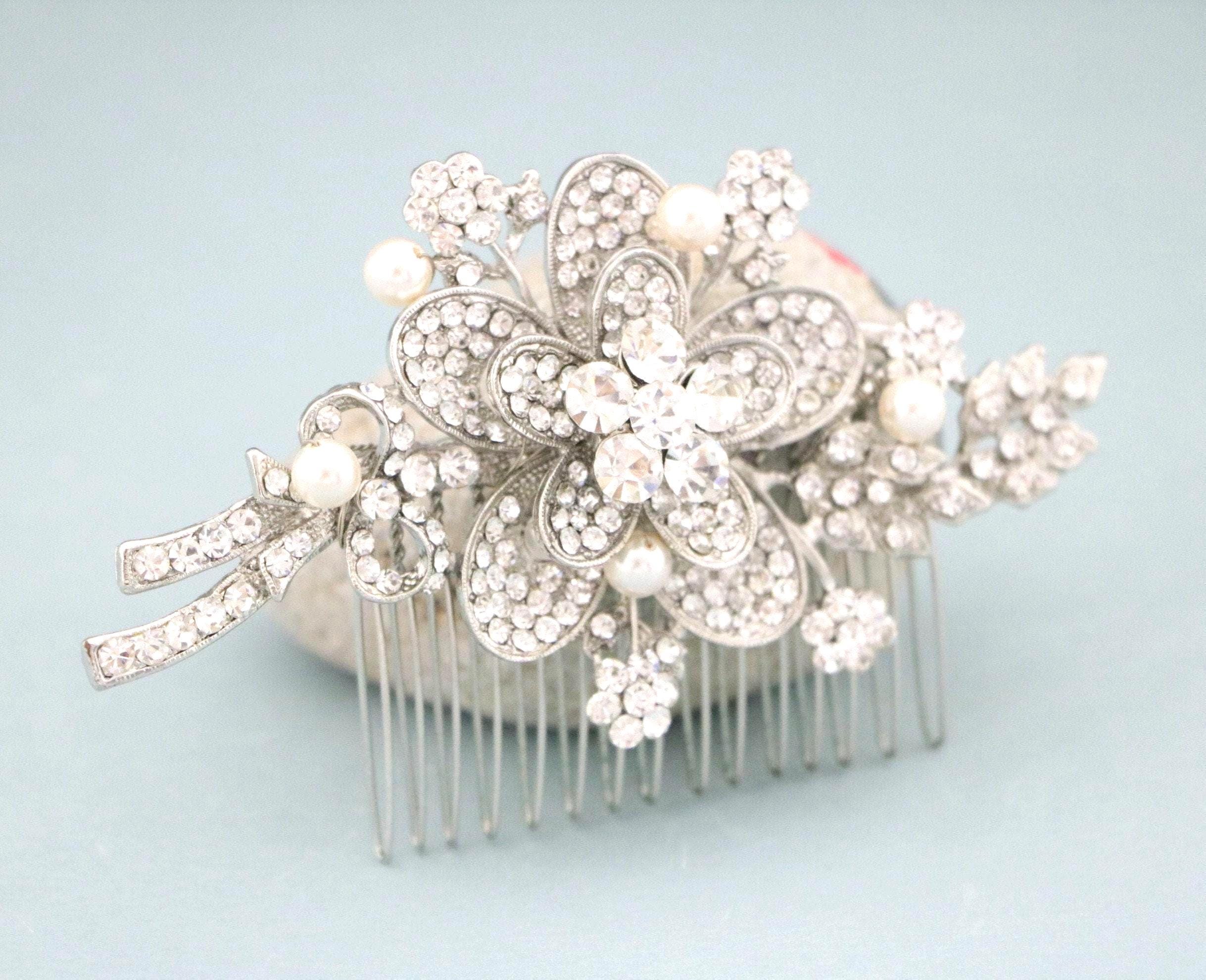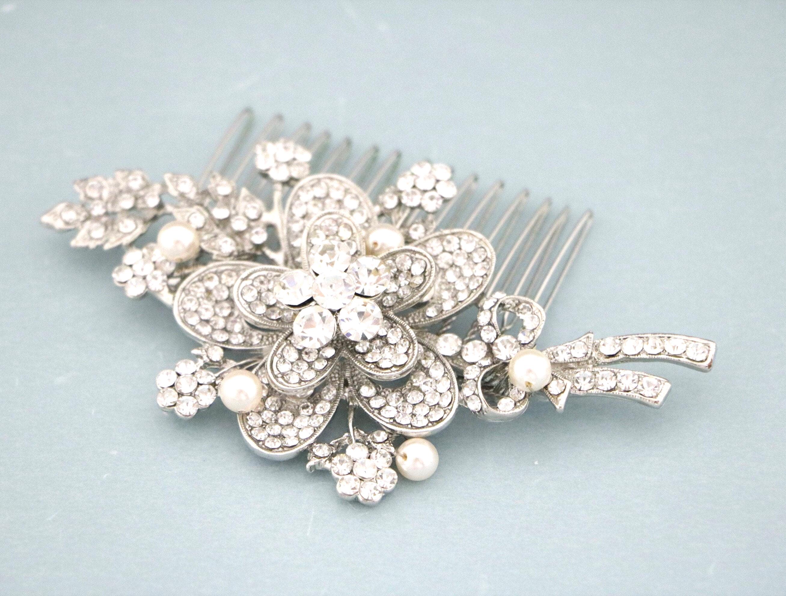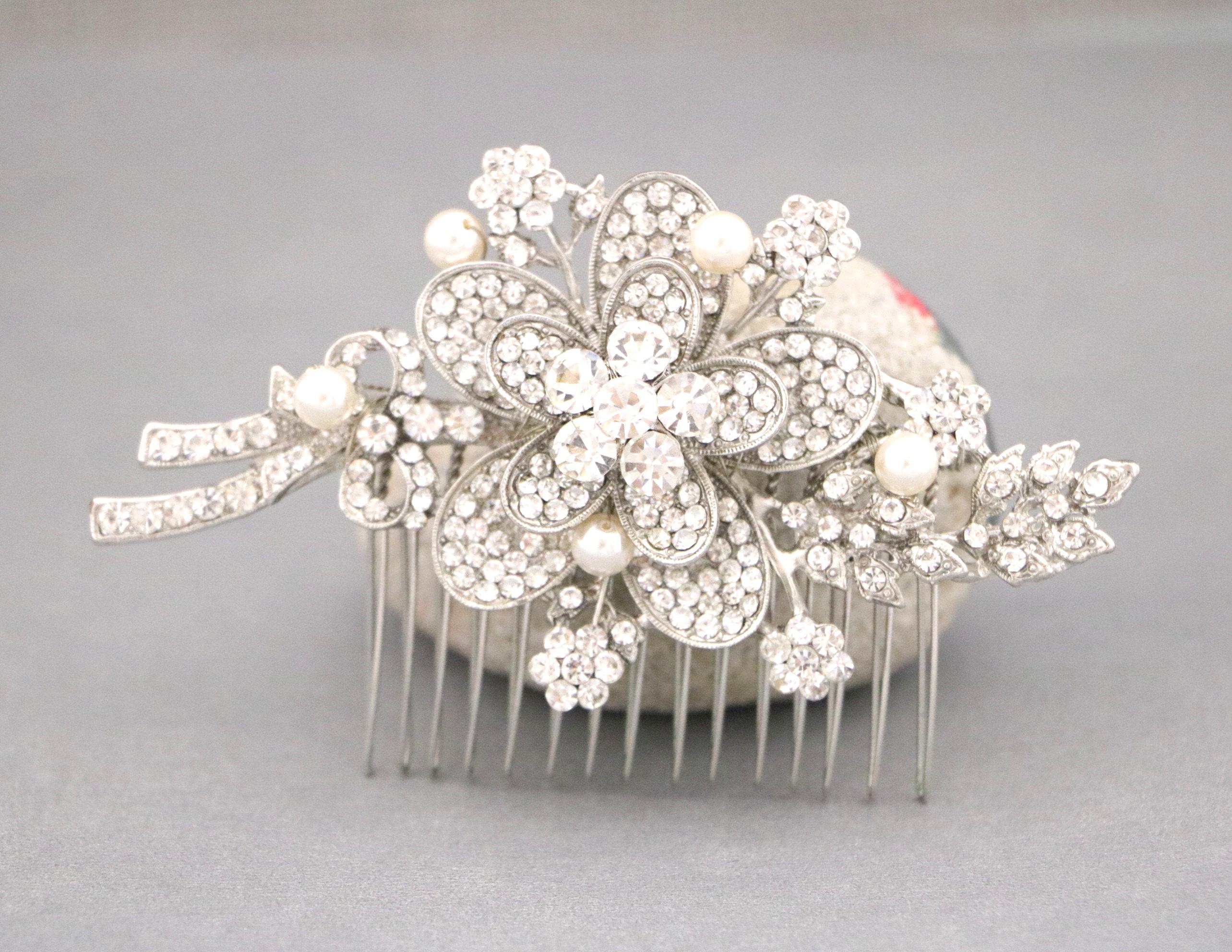 This sparkle rhinestone hair comb features a very beautiful vintage style rhinestone piece. The Rhinestone part measures approximately 4 X 2 inches.