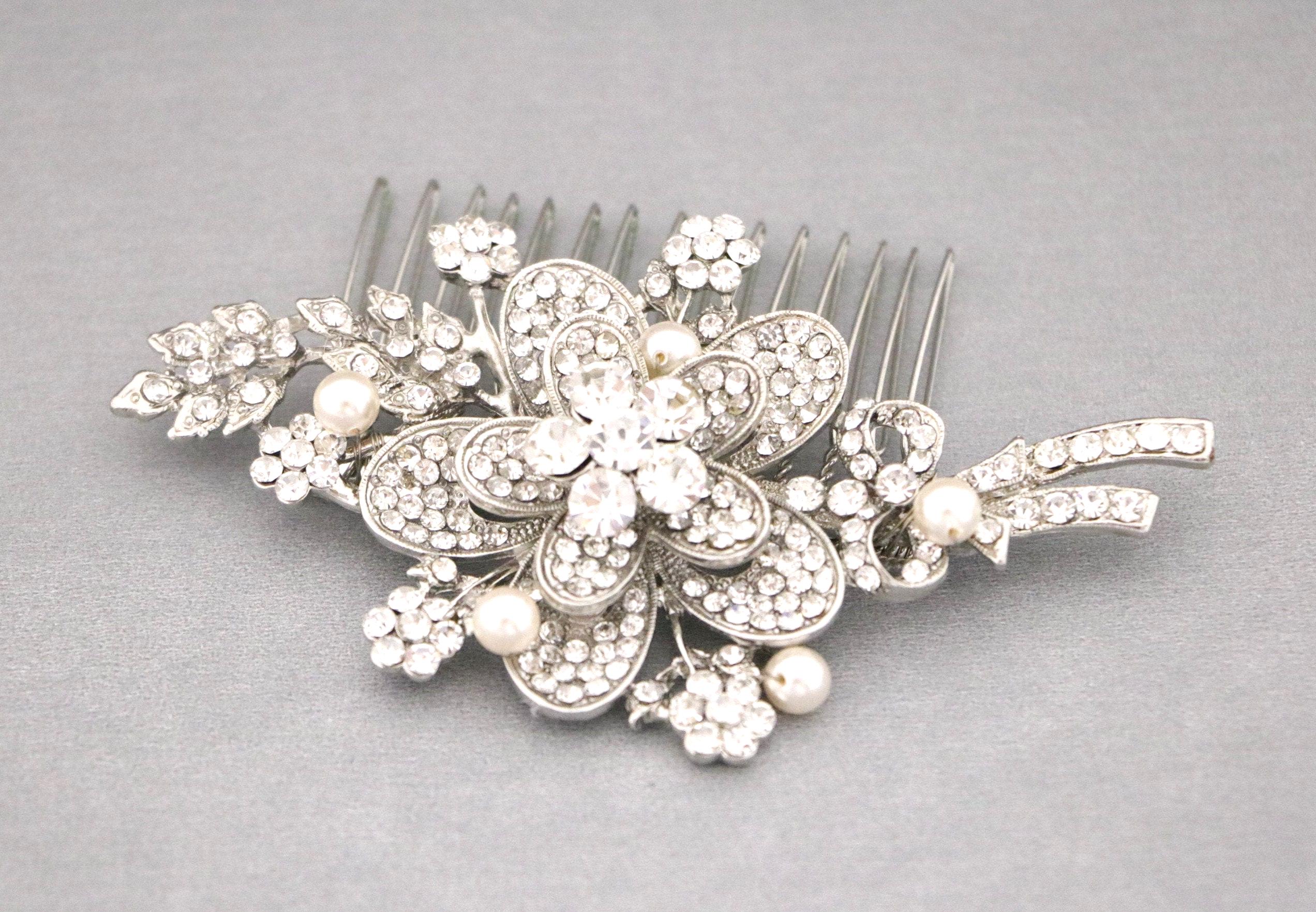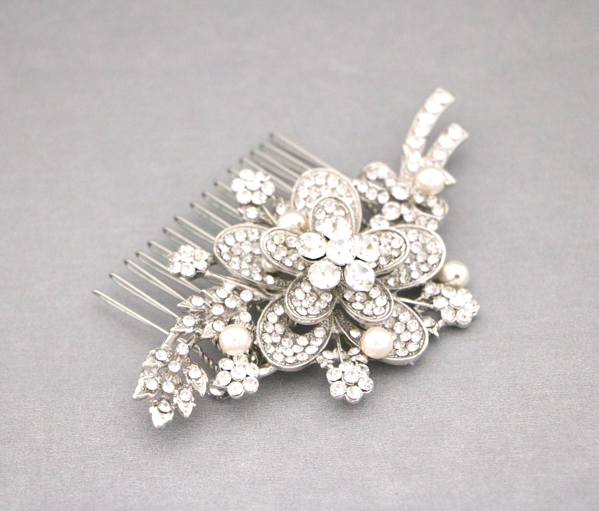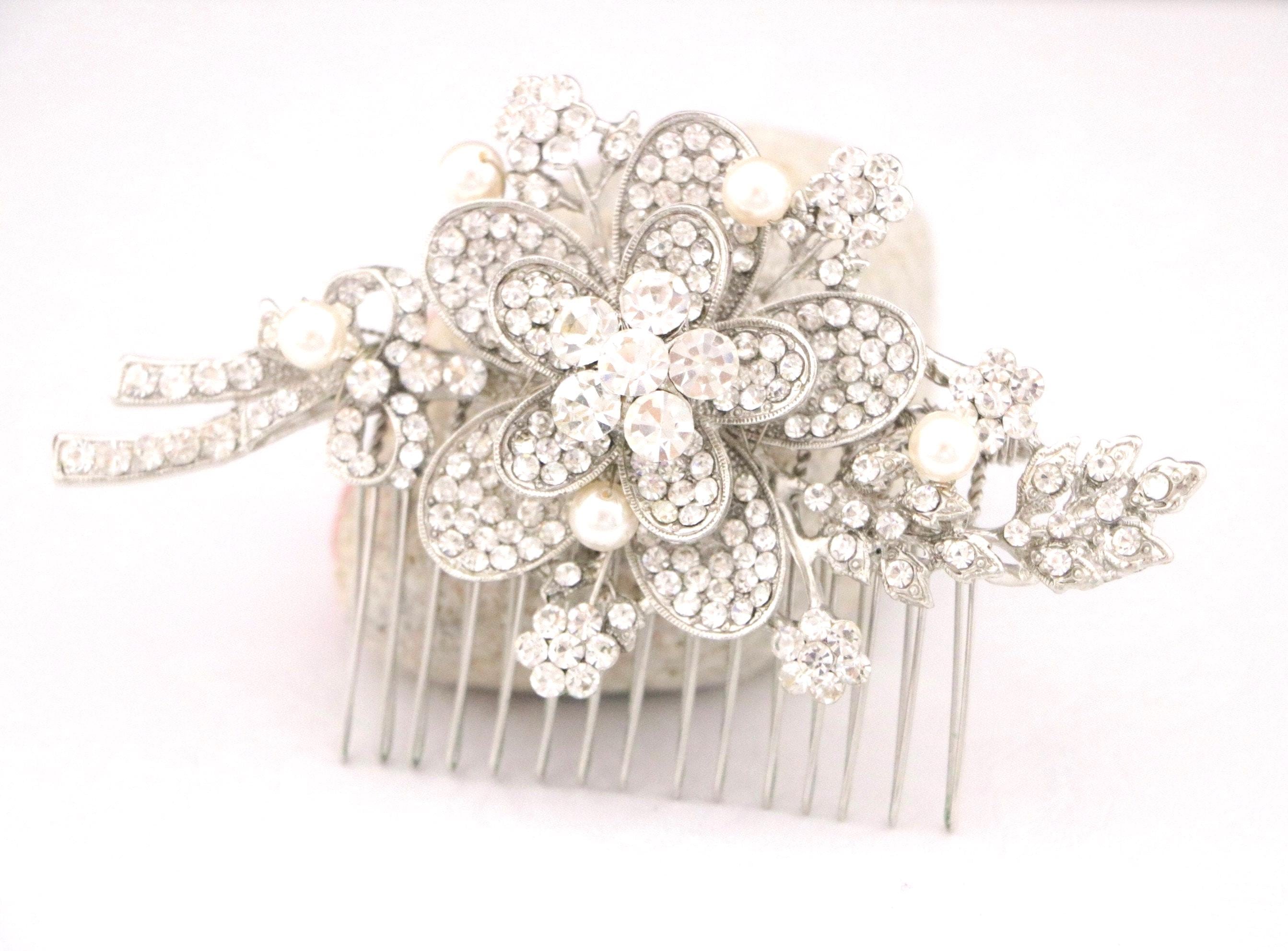 This sparkle rhinestone hair comb features a very beautiful vintage style rhinestone piece. The Rhinestone part measures approximately 4 X 2 inches.