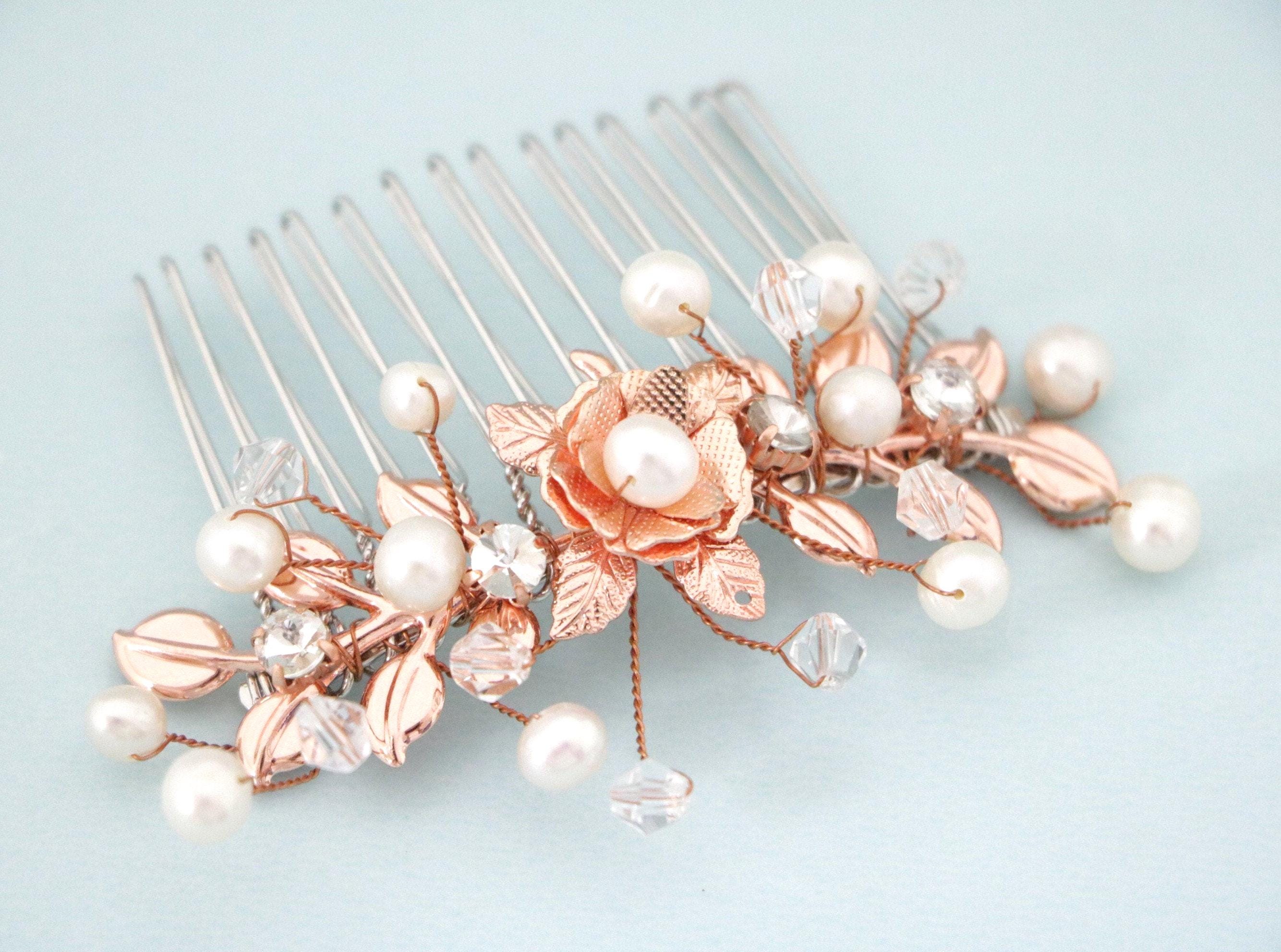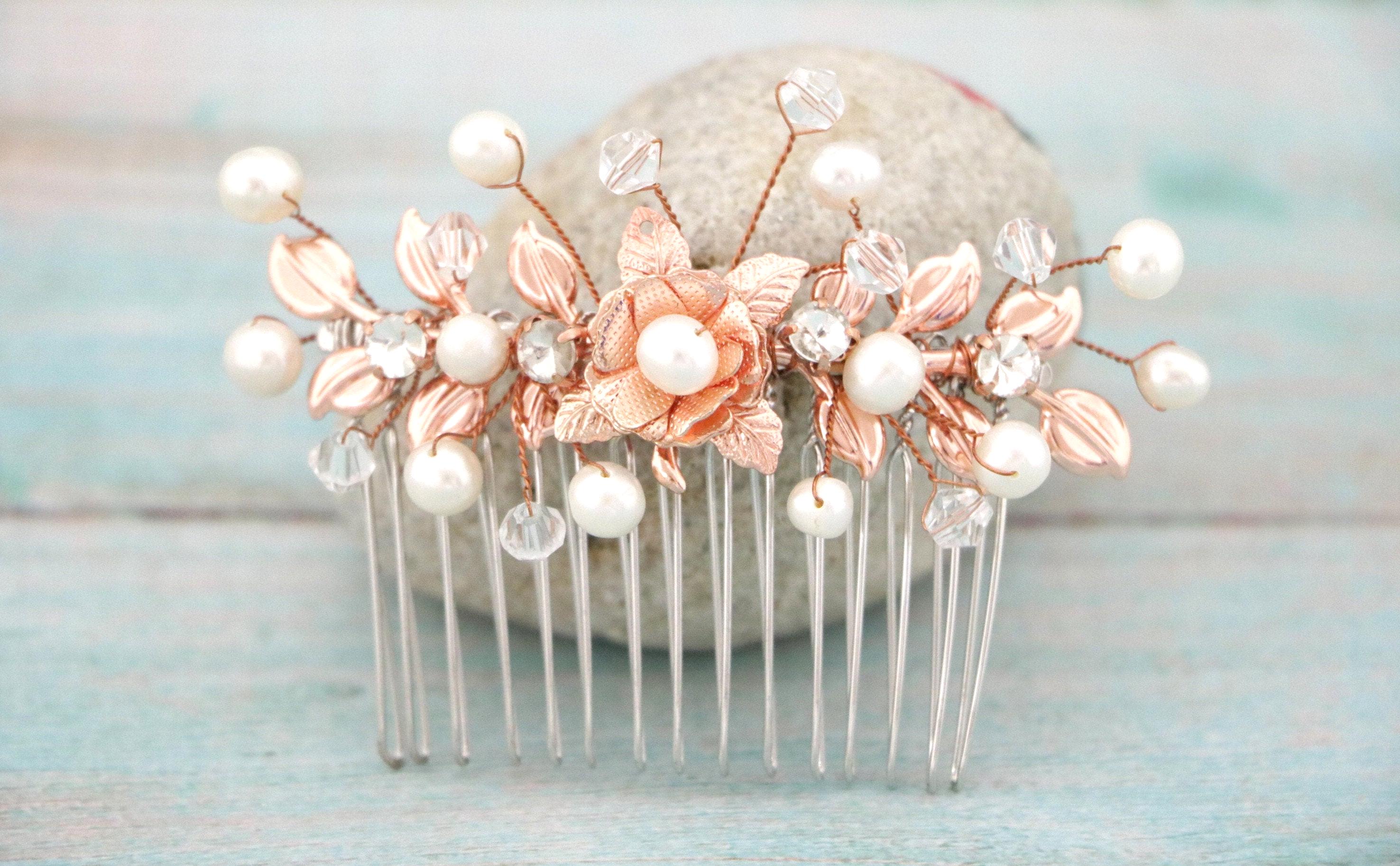 Bridal Comb Rose Gold, Rhinestone Comb, Bridal Comb Crystal, Wedding Crystal Hair Comb, Hair Comb, Wedding Headpiece Rose Gold
