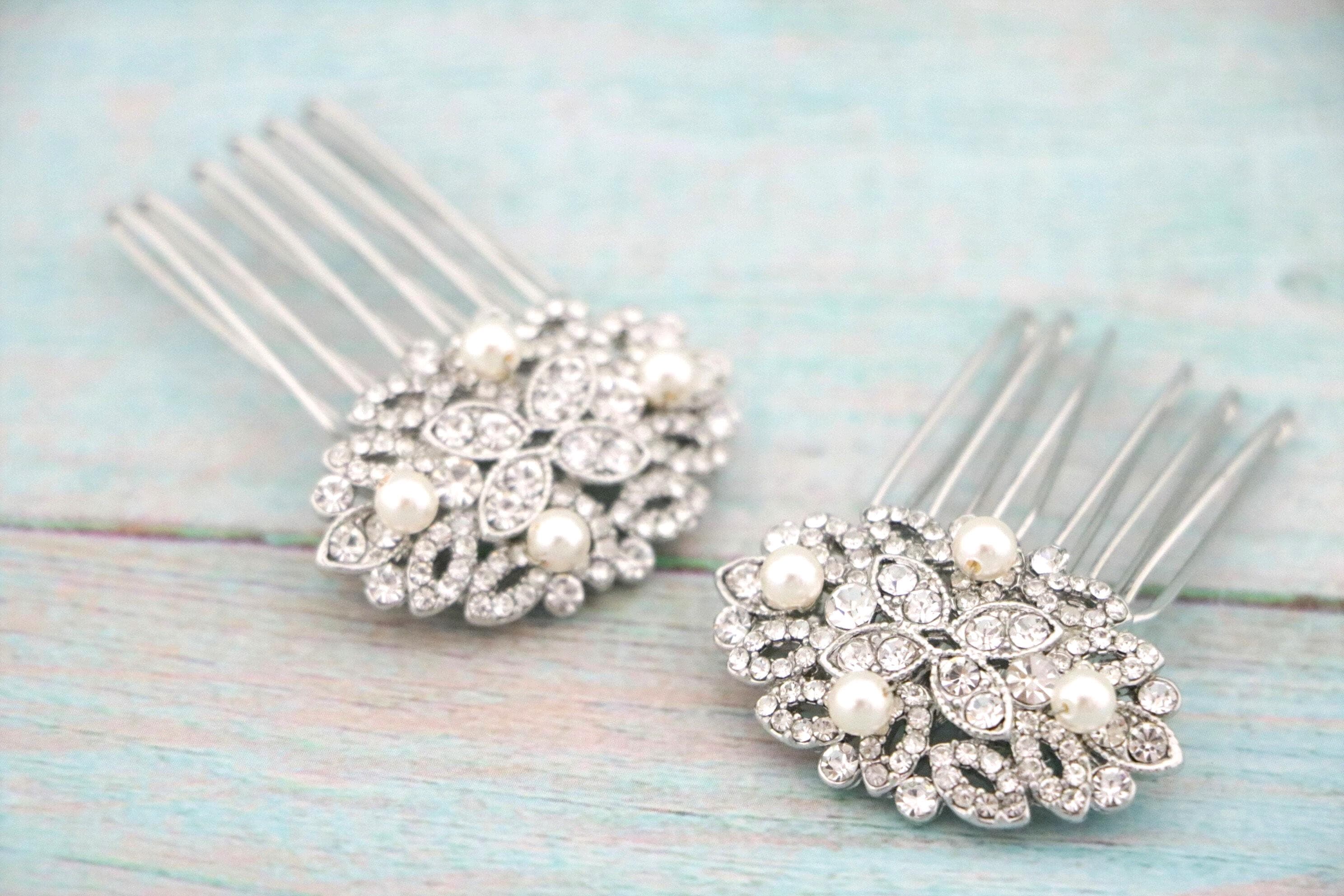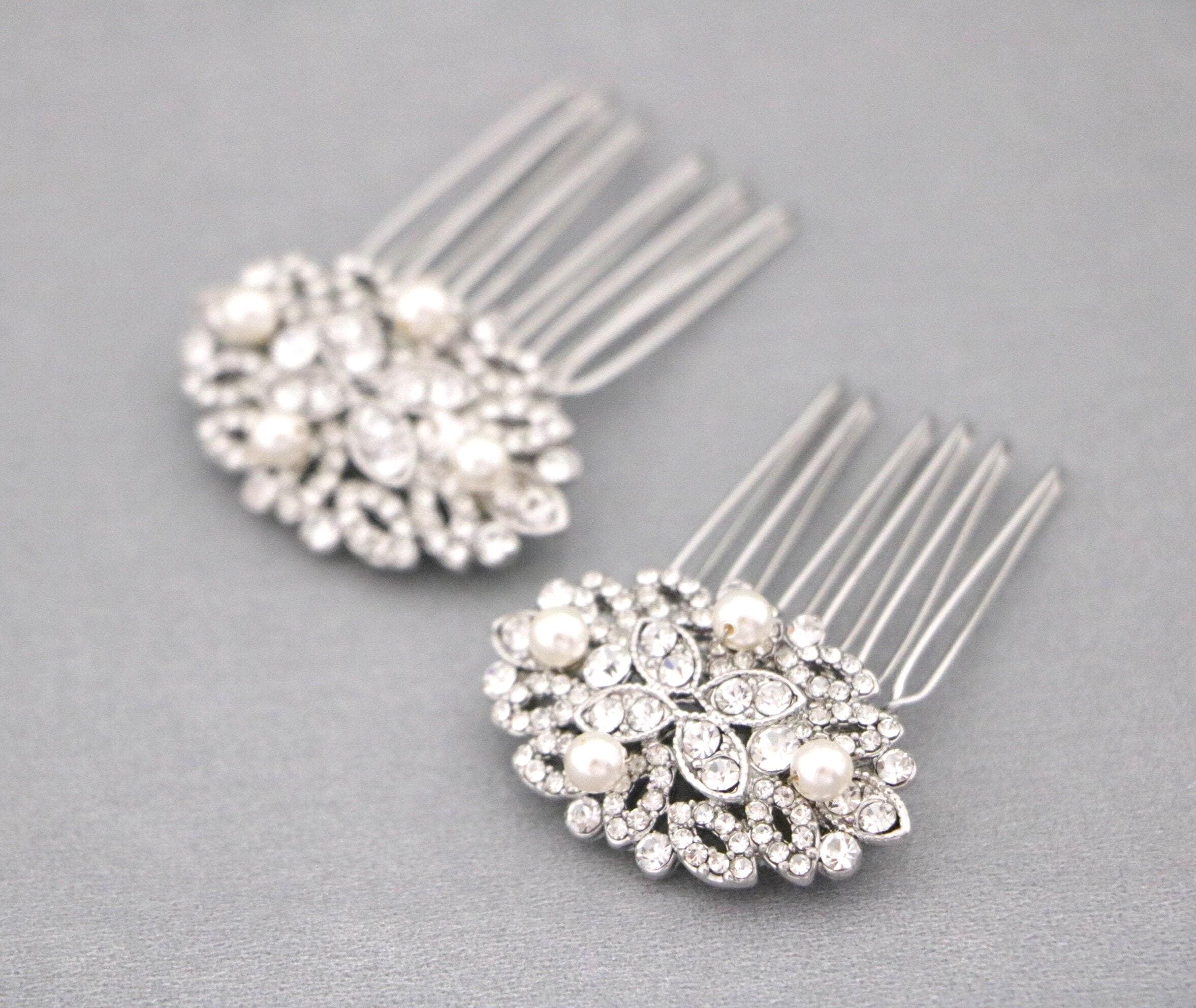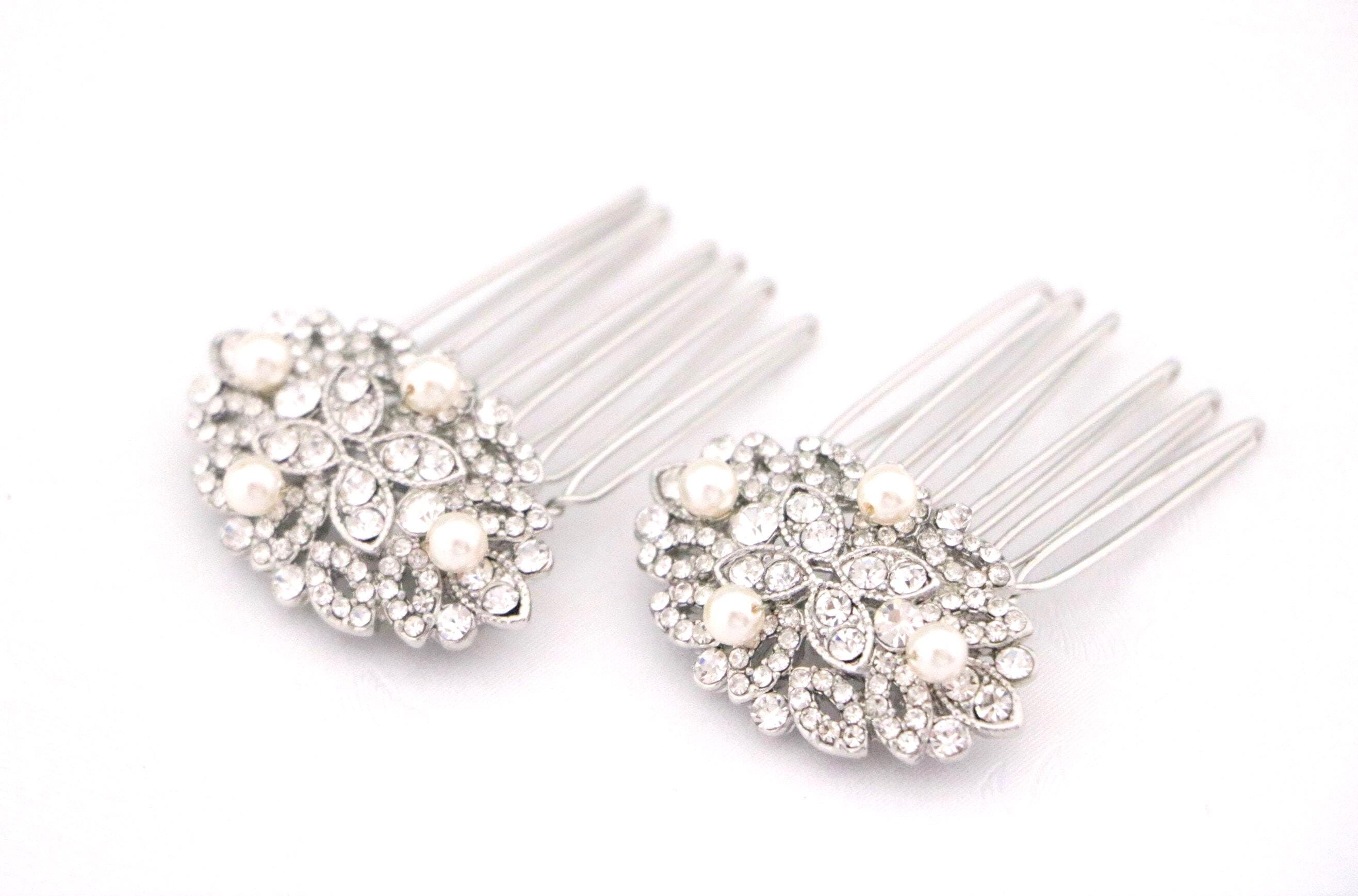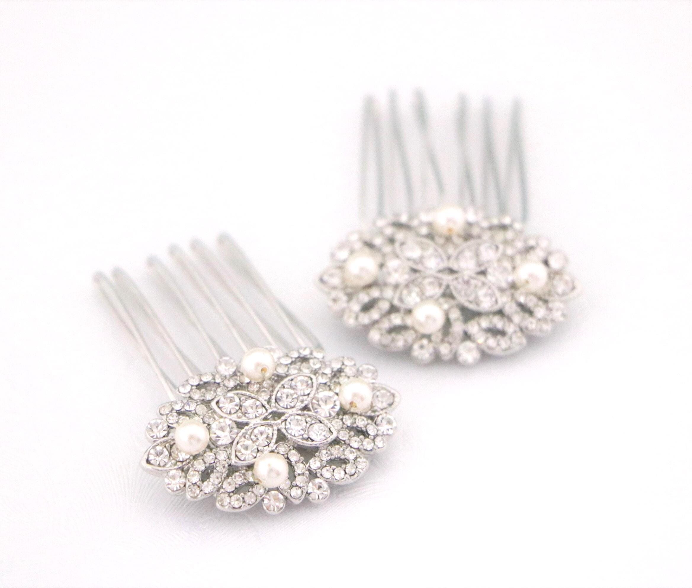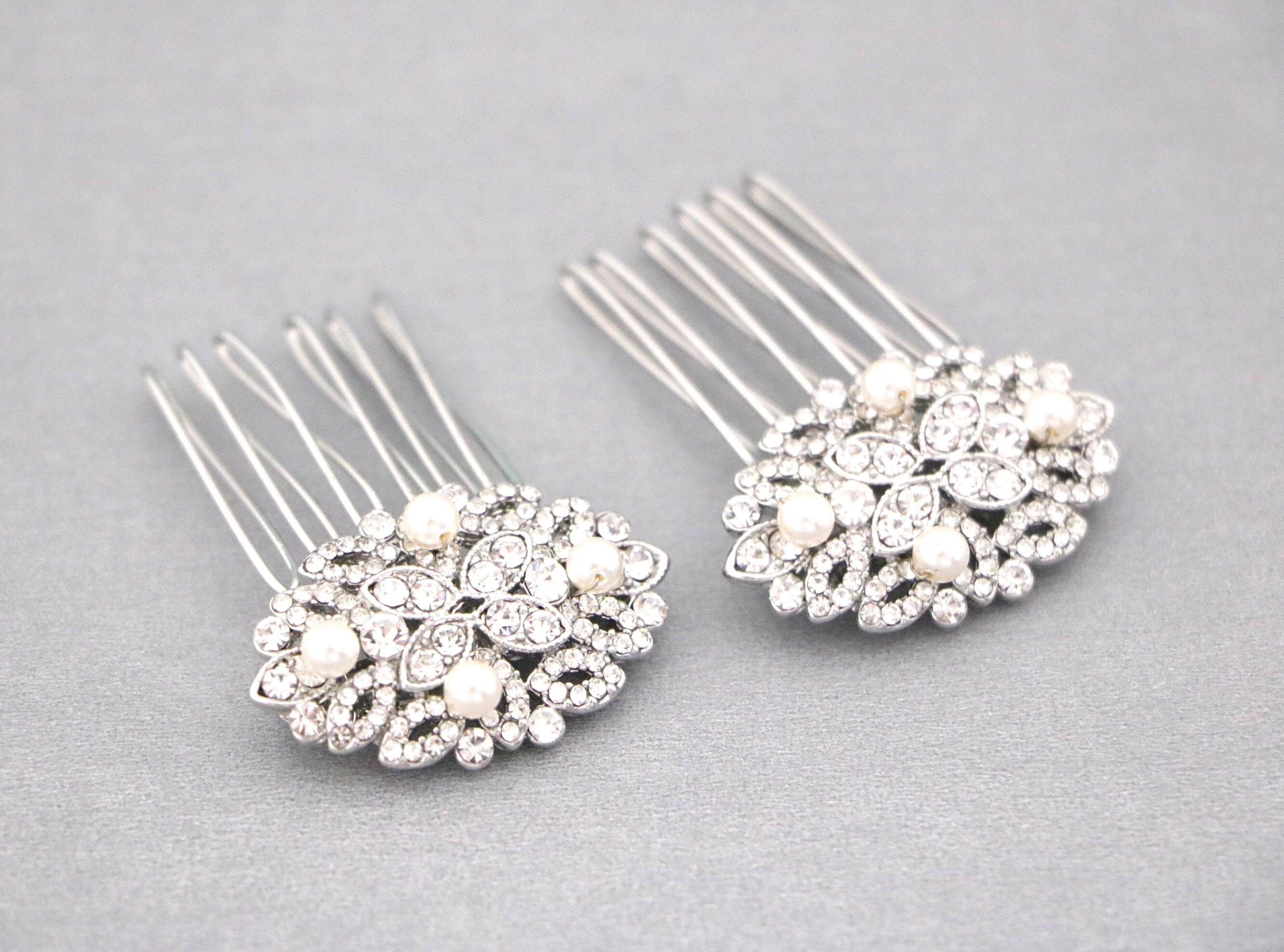 Hair comb size : The rhinestone part measures approximately 1.75 X 1 inches. ( Set of 2 )