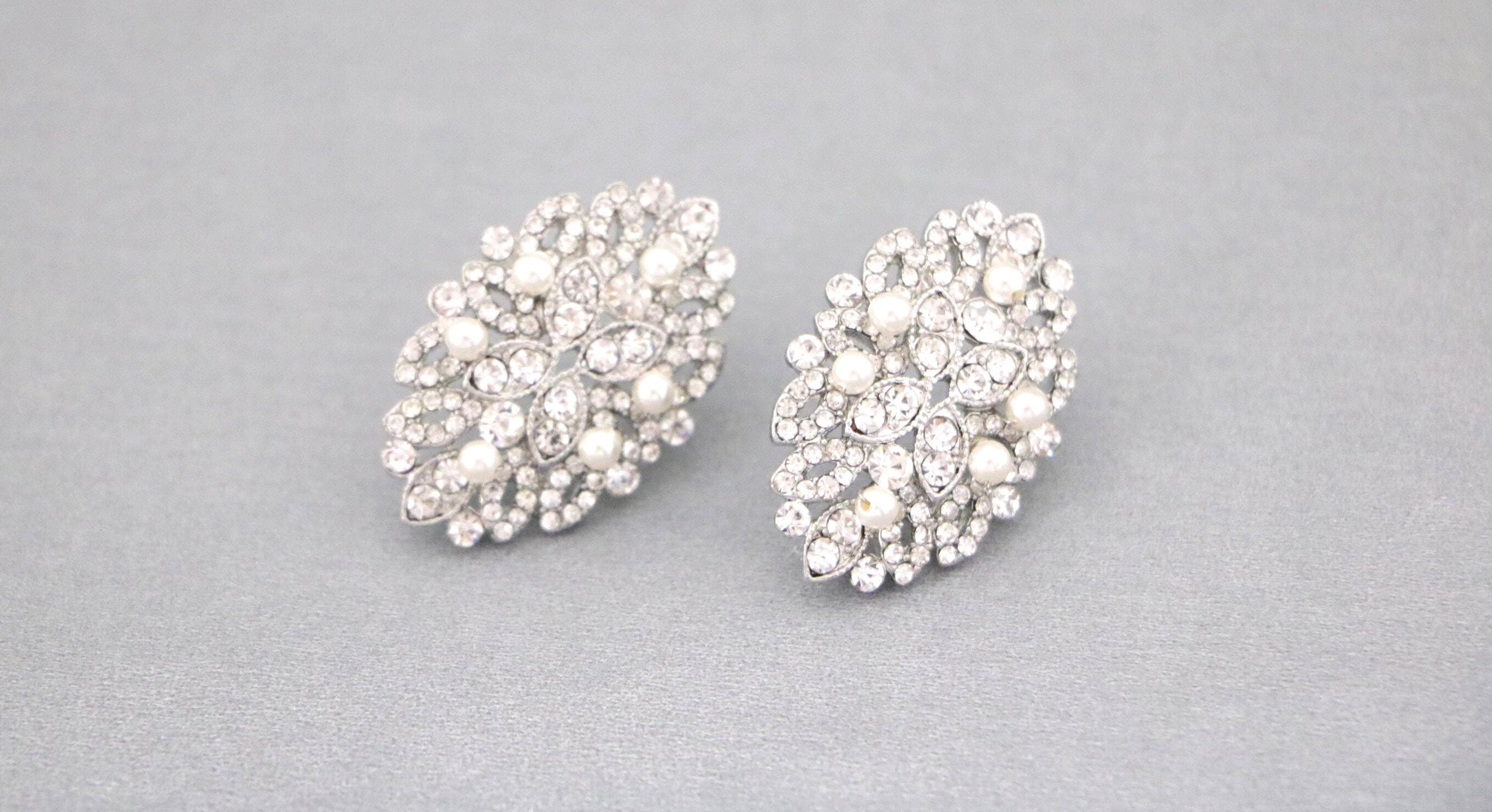 Pearl Wedding Earrings, Vintage Style Pearl Stud Bridal Earrings