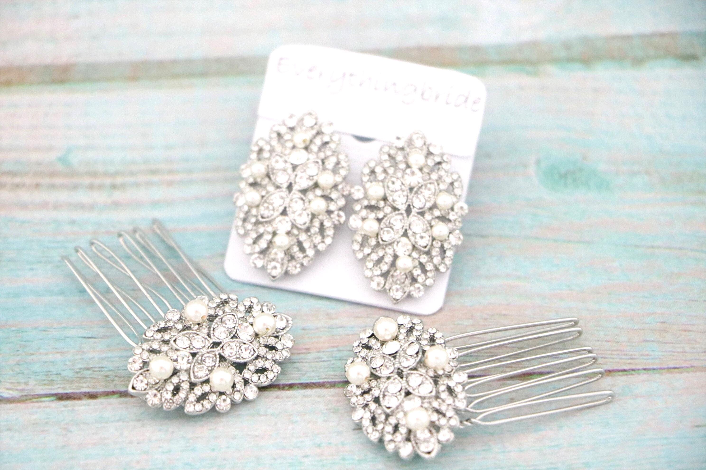 Hair comb size : The rhinestone part measures approximately 1.75 X 1 inches. ( Set of 2 )
