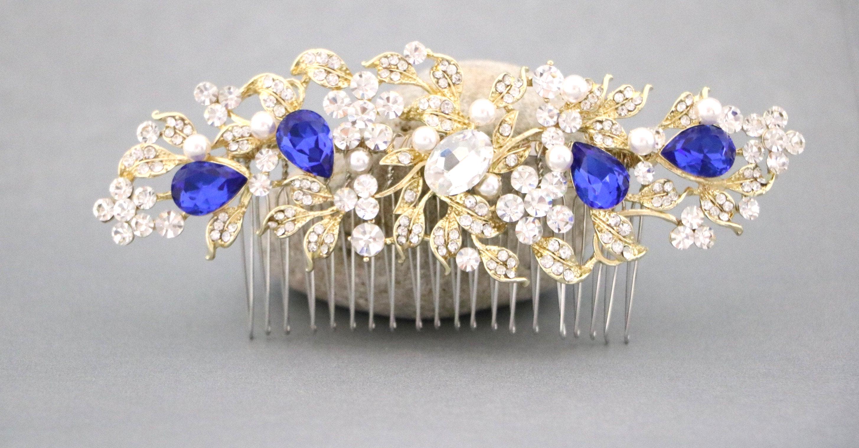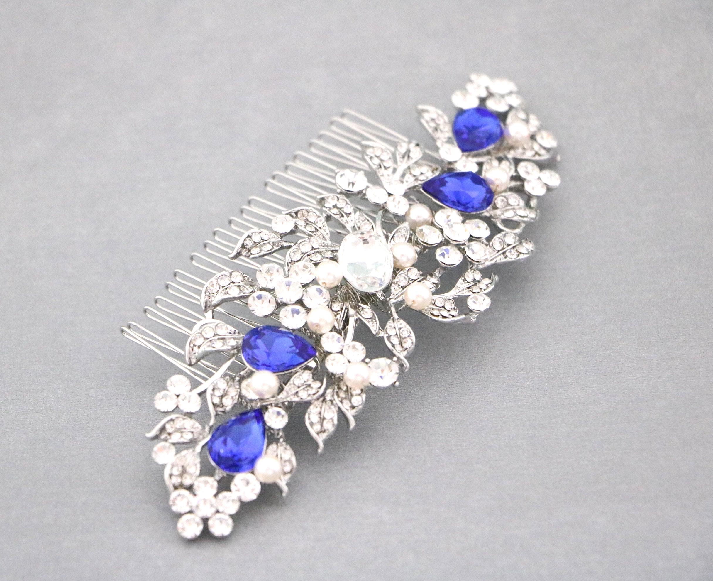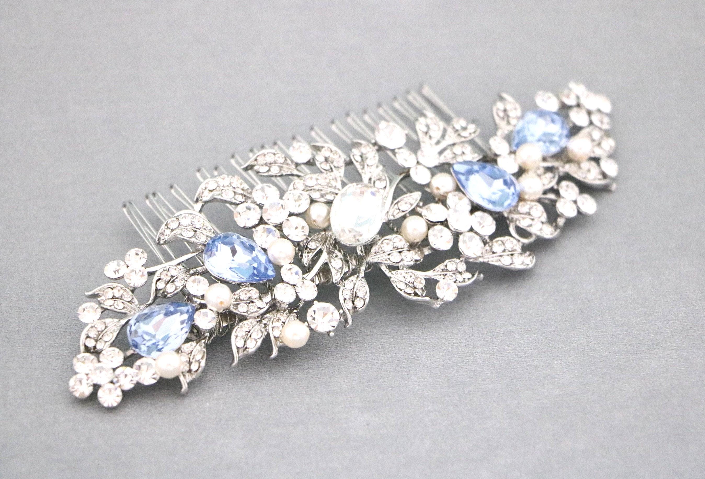Wedding Hair Comb Blue Wedding Hair Accessories Something Blue Pearl Rhinestone Flowers Rhinestone Silver Floral Hair Piece