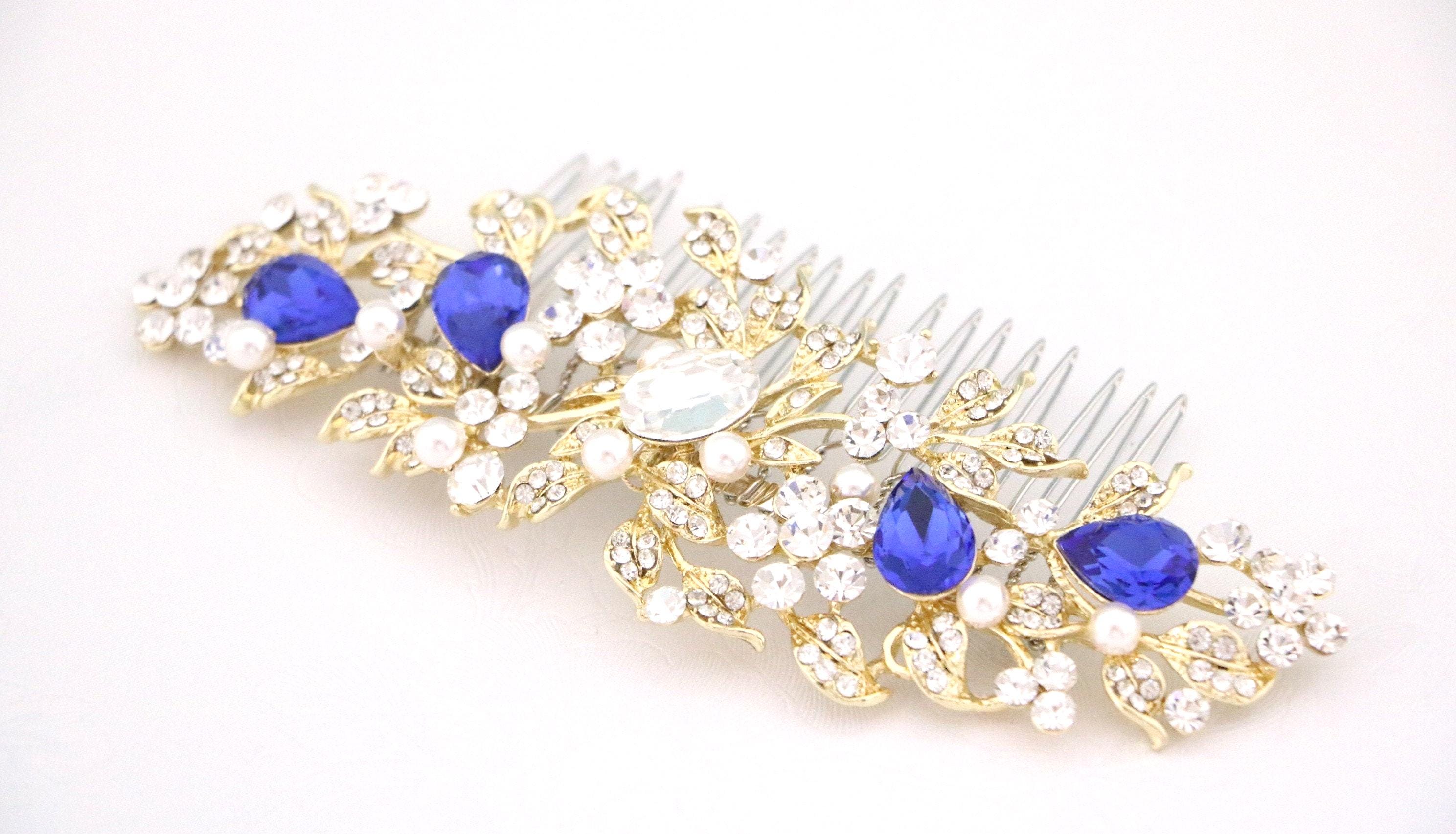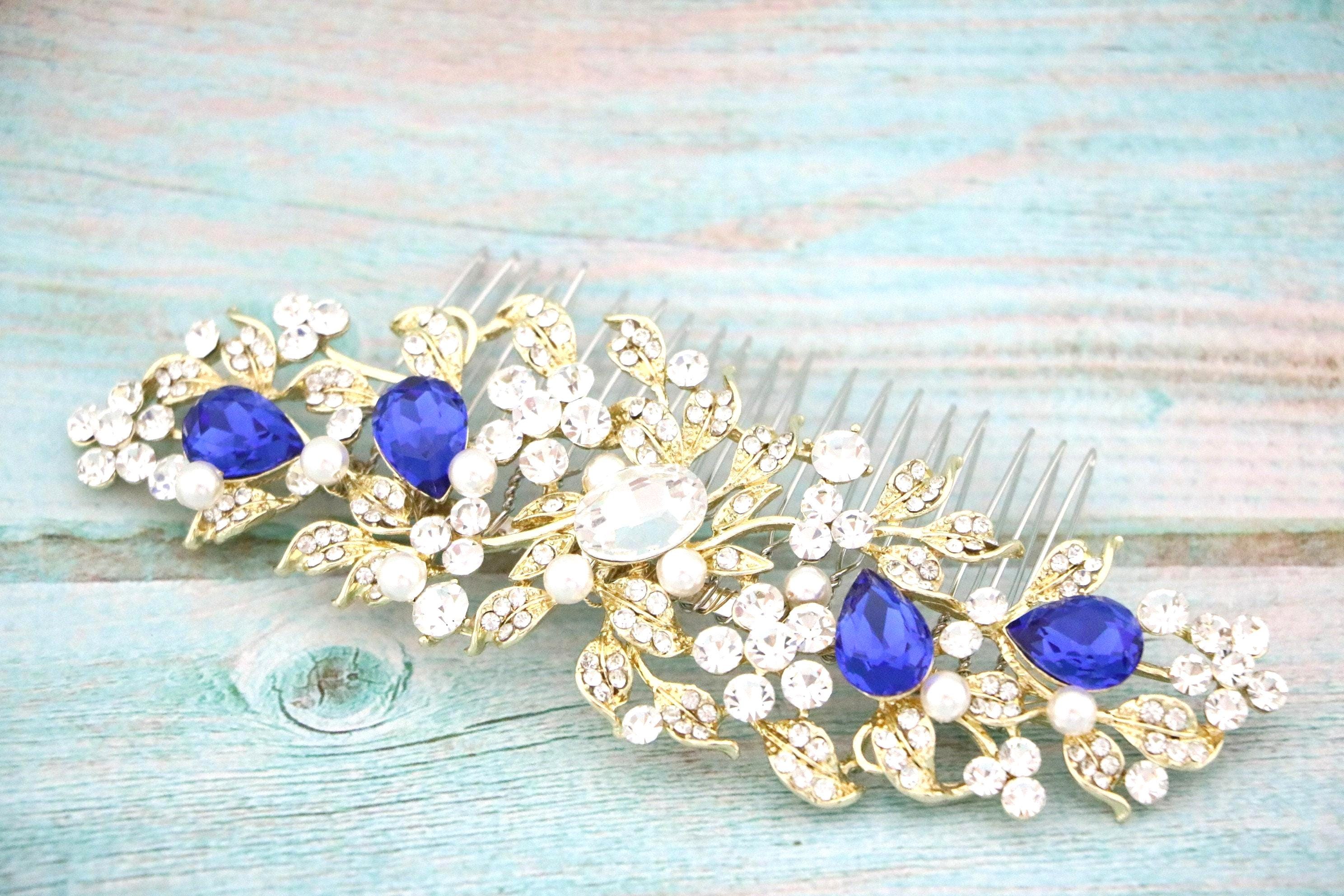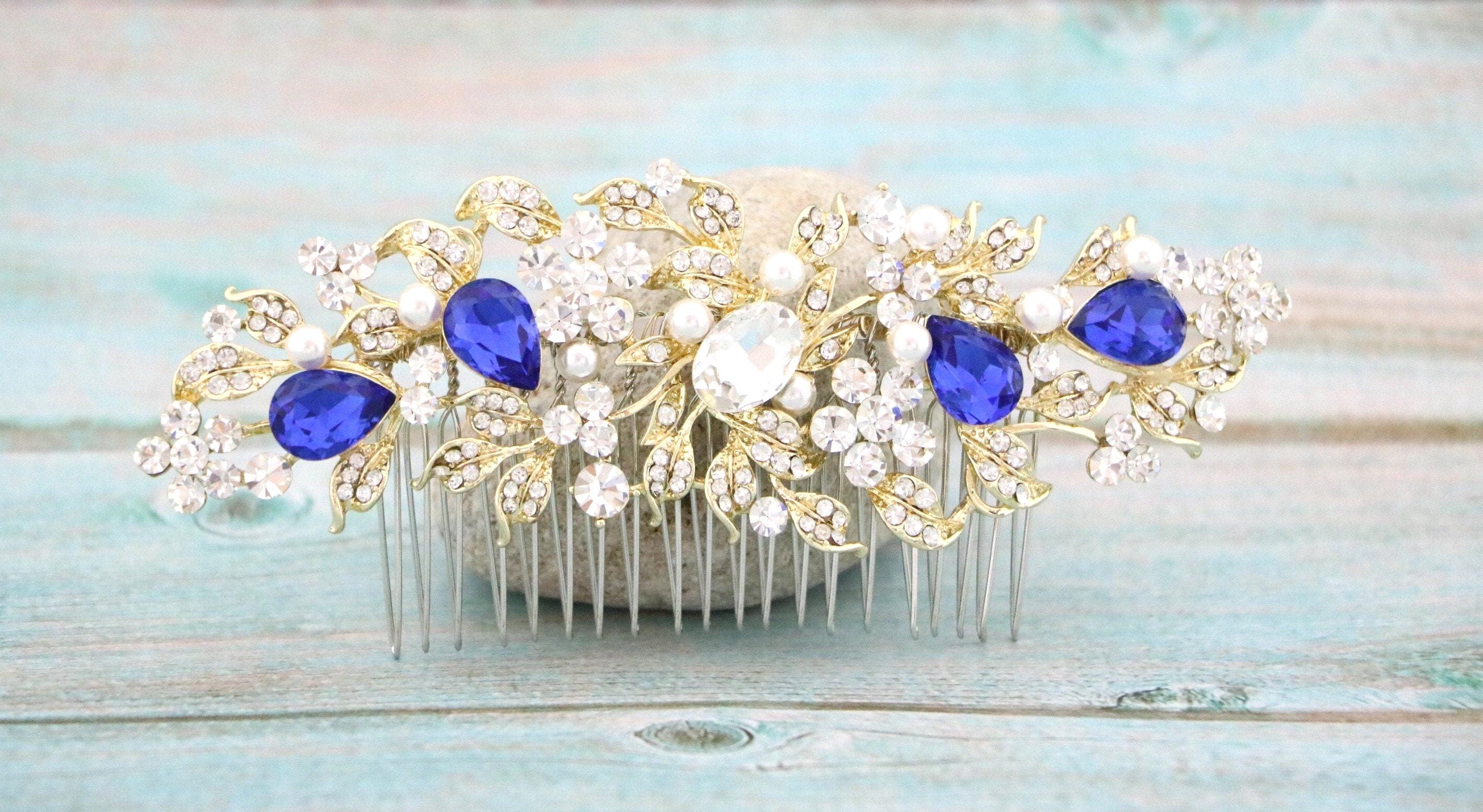 Wedding Hair Comb Blue Wedding Hair Accessories Something Blue Pearl Rhinestone Flowers Rhinestone Silver Floral Hair Piece