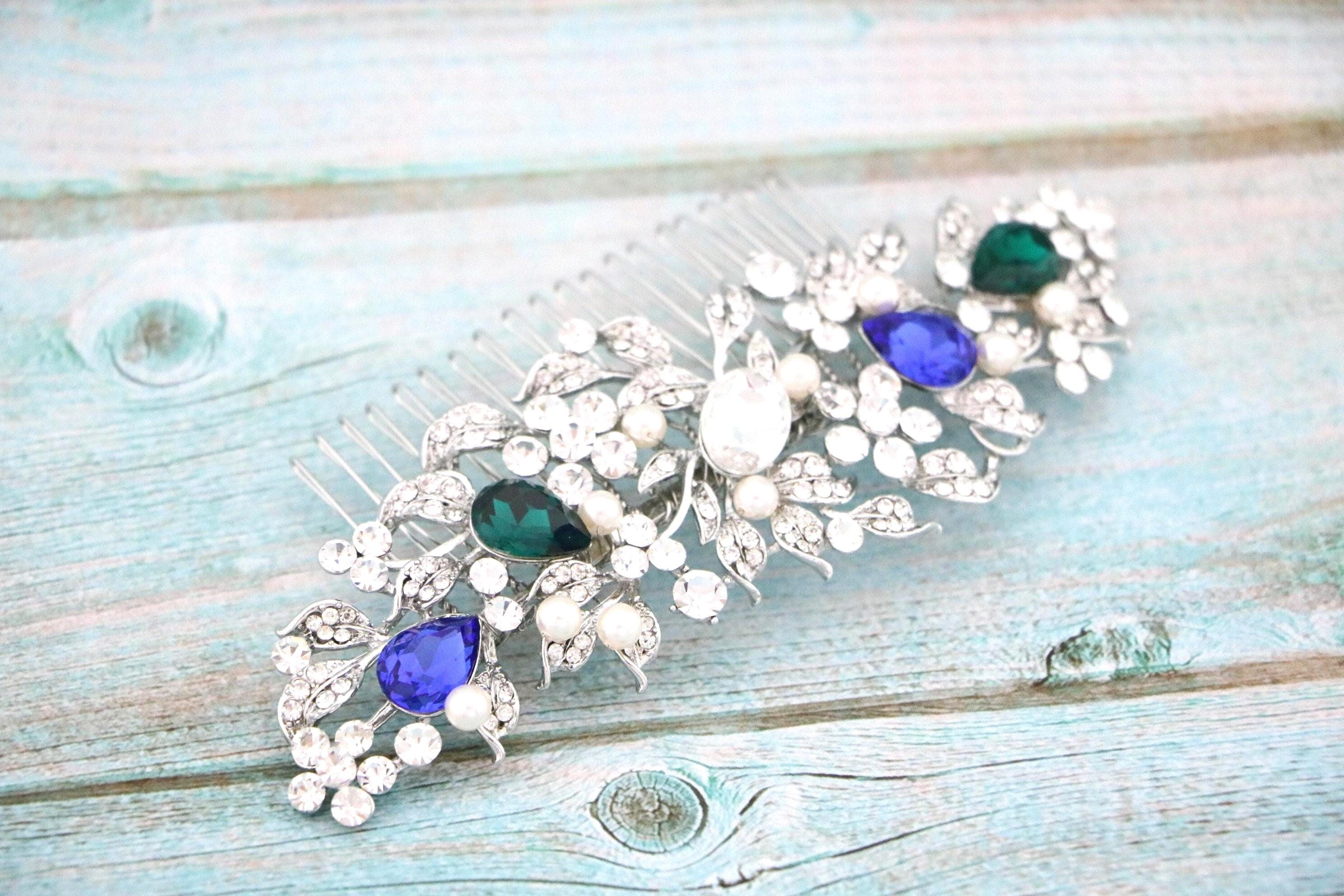 Blue bridal hair comb Something blue hair comb Sapphire blue Crystal hair comb Royal blue wedding Rhinestone hair comb Navy blue hair piece